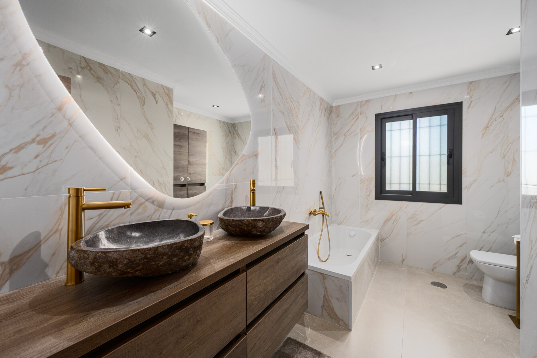 Sfeervolle en recent in 2025 gerenoveerde villa met zes slaapkamers , een tijdloos mediterraan toevluchtsoord, gelegen in Altos del Rodeo, een van de meest gewilde woonwijken van Nueva Andalucía. Slechts enkele minuten van Puerto Banús, combineert deze woning op meesterlijke wijze klassieke architectuur met moderne gemakken, en valt op door haar royale afmetingen, functionele indeling en buitenruimtes die perfect zijn om te genieten van het bevoorrechte klimaat van de Costa del Sol.