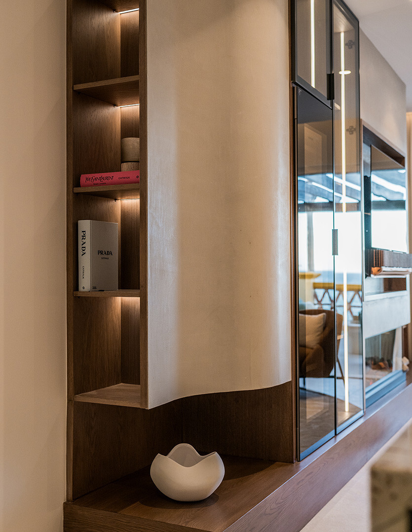 Met een bebouwde oppervlakte van ongeveer 155 m² is het interieur van de woning zorgvuldig ontworpen om luxe en comfort te combineren. Het beschikt over drie slaapkamers en twee badkamers, met een indeling die gericht is op dagelijks welzijn. Moderne afwerkingen en doordachte details zoals een elektrische open haard, een wijnkoelkast en een geïntegreerd B\&O-geluidssysteem tillen de woonervaring naar een hoger niveau.