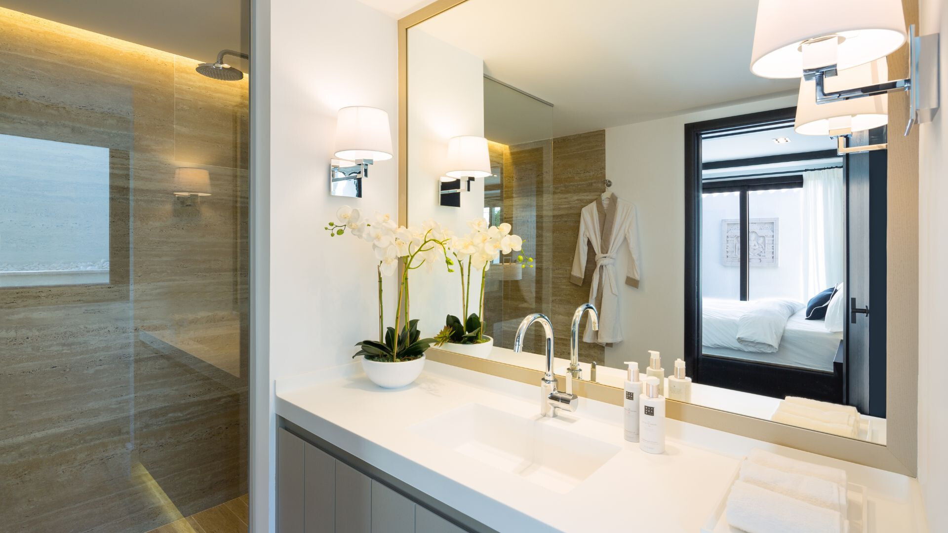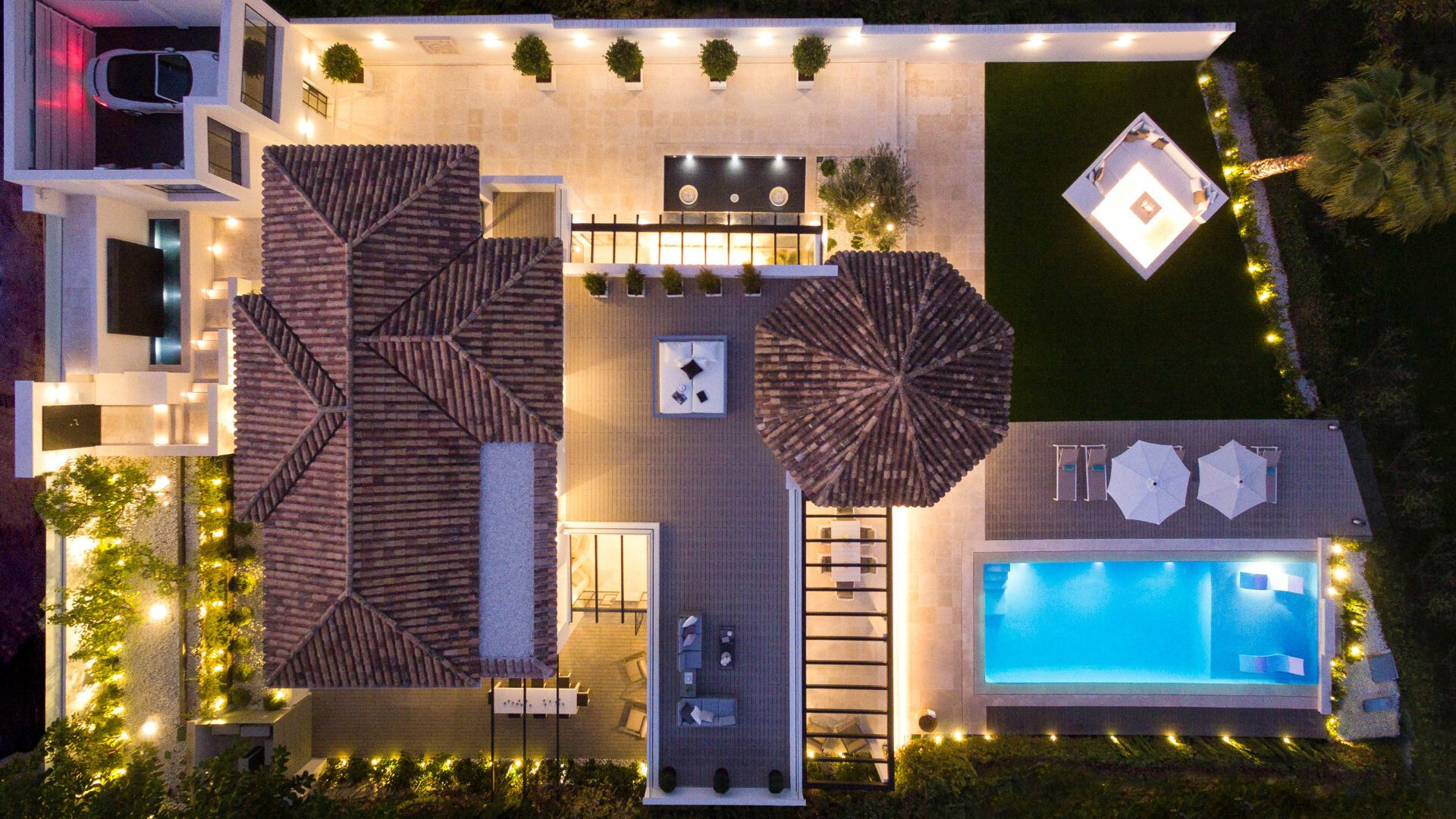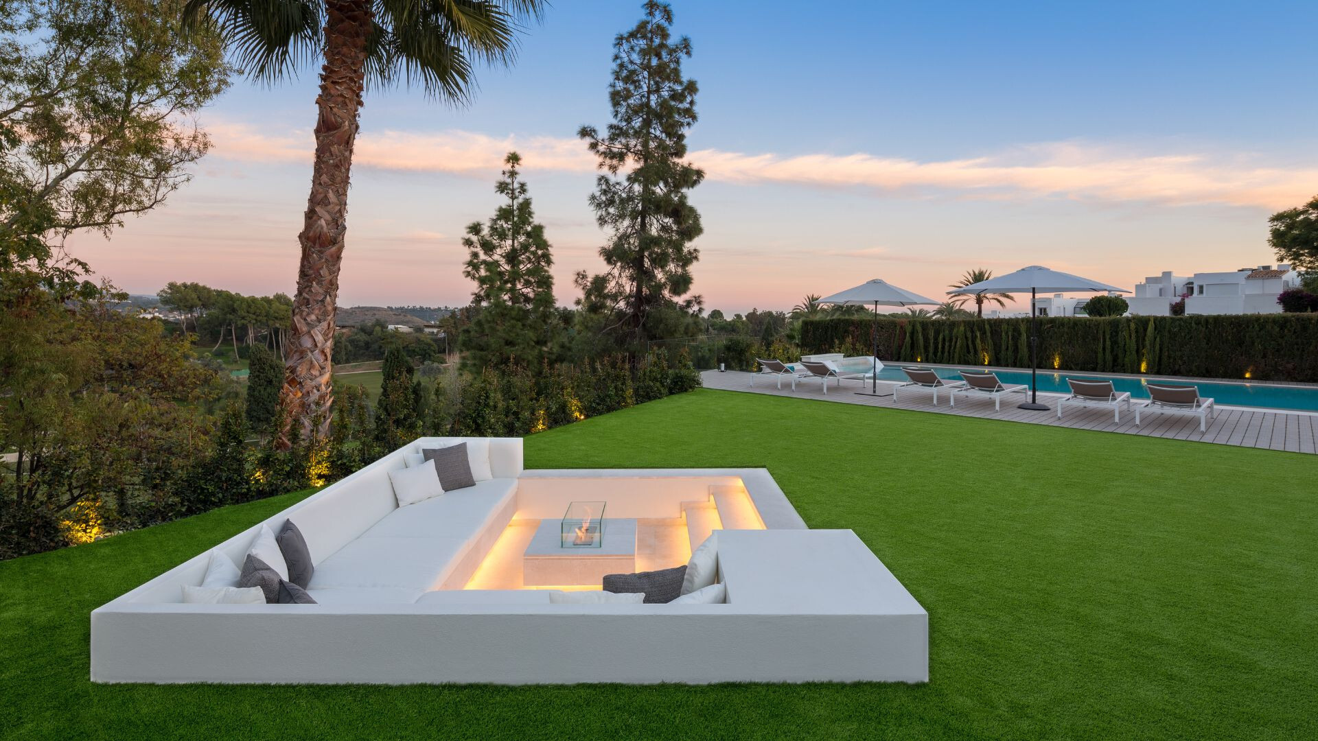 De buitenruimte geeft een nieuwe invulling aan het concept van buitenleven. De woning heeft een groot terras met een eethoek in de open lucht, ideaal voor feesten, een exclusieve chill-outruimte met een ingebouwde vuurplaats om te ontspannen bij zonsondergang, en een solarium dat perfect is om het hele jaar door van het mediterrane klimaat te genieten.