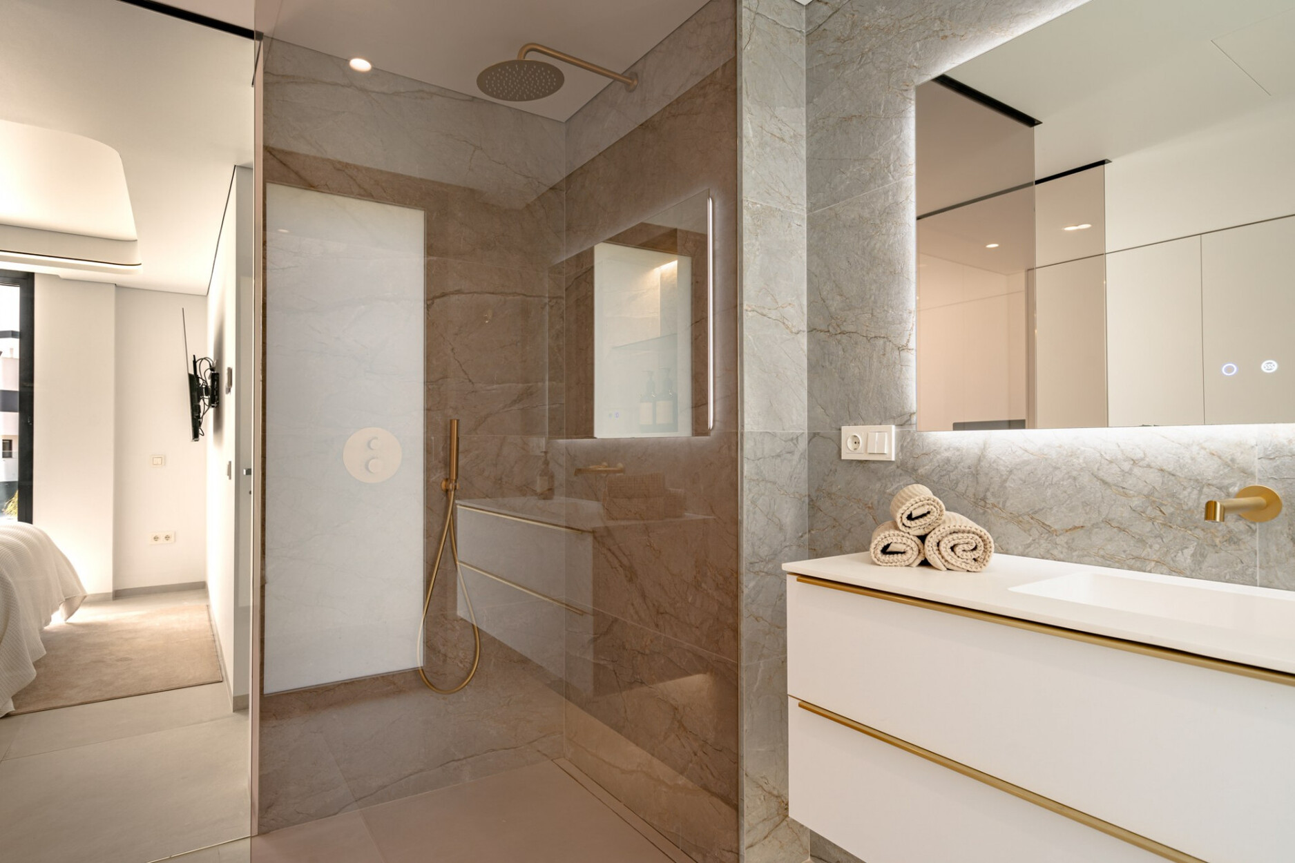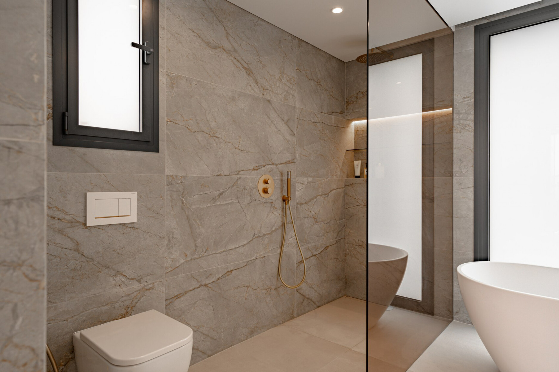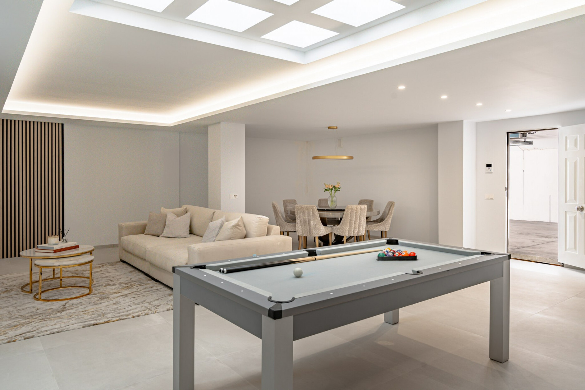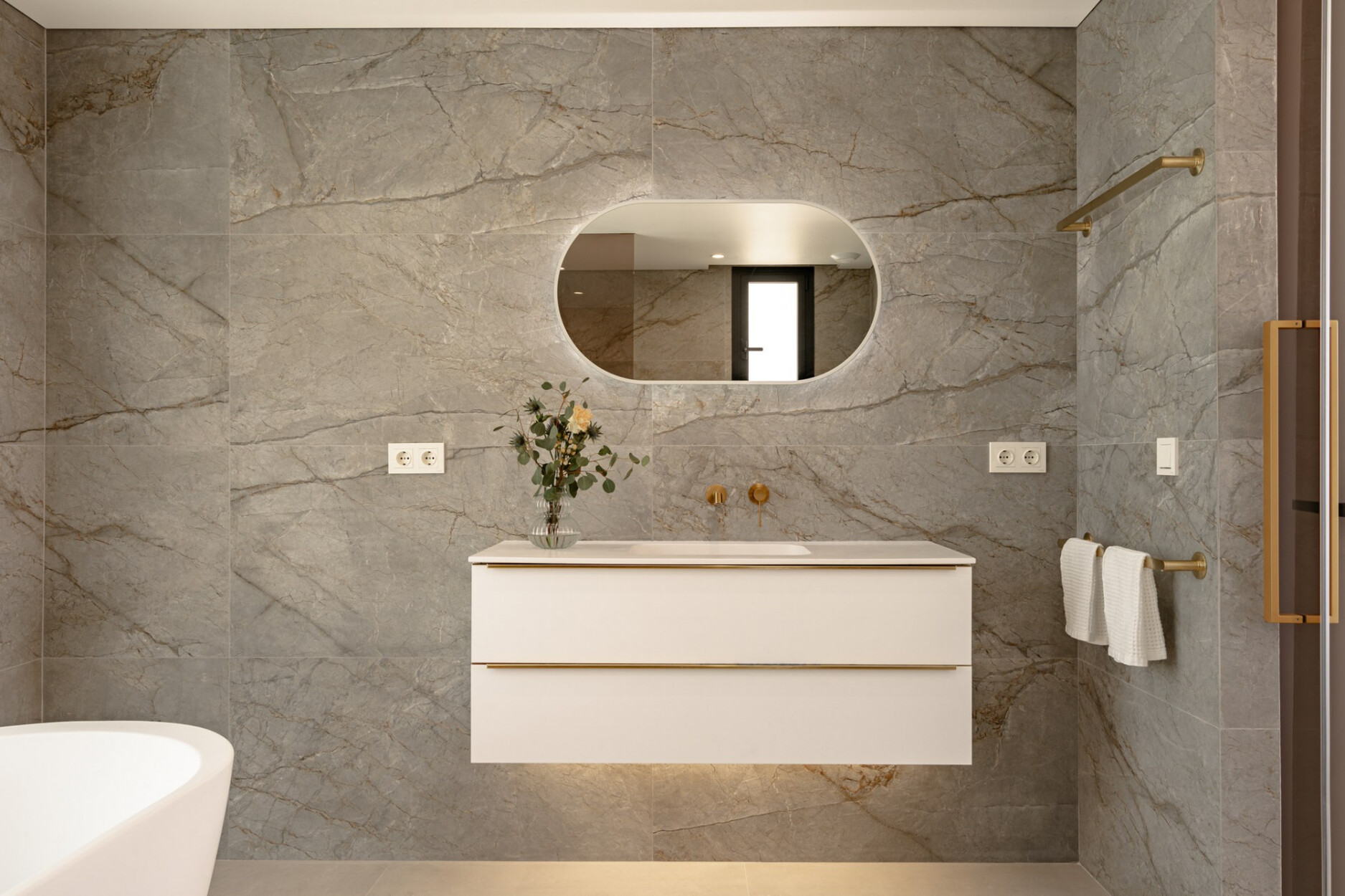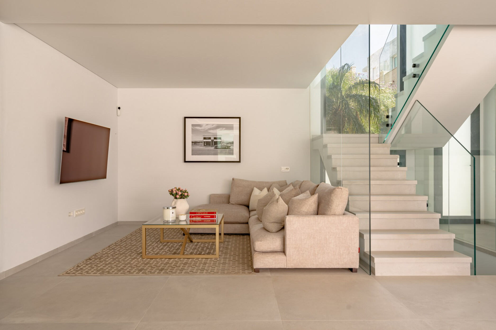Binnen biedt de villa een ruime open woon- en eetkamer met ramen van vloer tot plafond die het natuurlijke licht binnenlaten en een naadloze verbinding met buiten creëren. De keuken, uitgerust met SIEMENS-apparaten en een praktisch kookeiland, is perfect geschikt voor zowel dagelijks gebruik als voor gasten. De vier lichte en comfortabele slaapkamers omvatten een hoofdsuite met inloopkast, en-suite badkamer en toegang tot een privéterras.