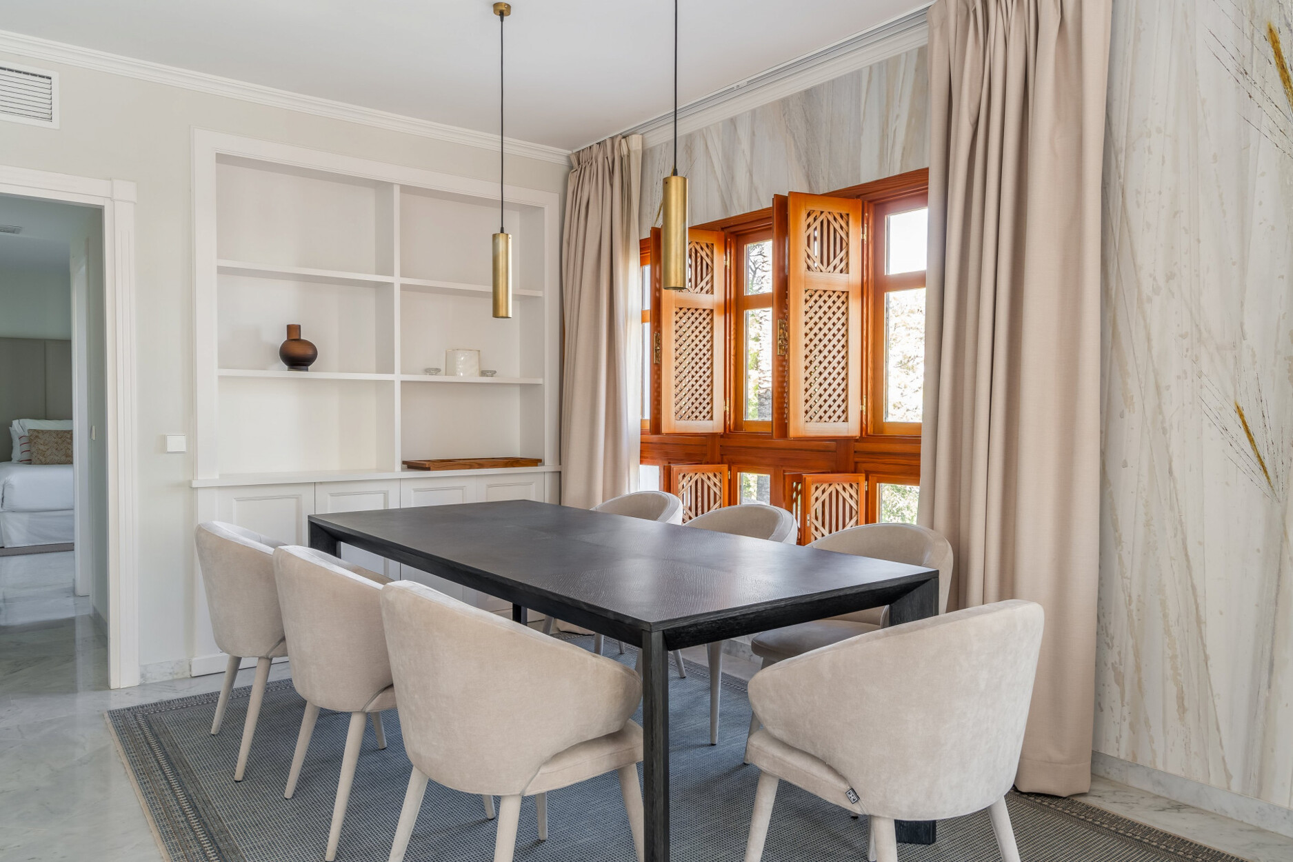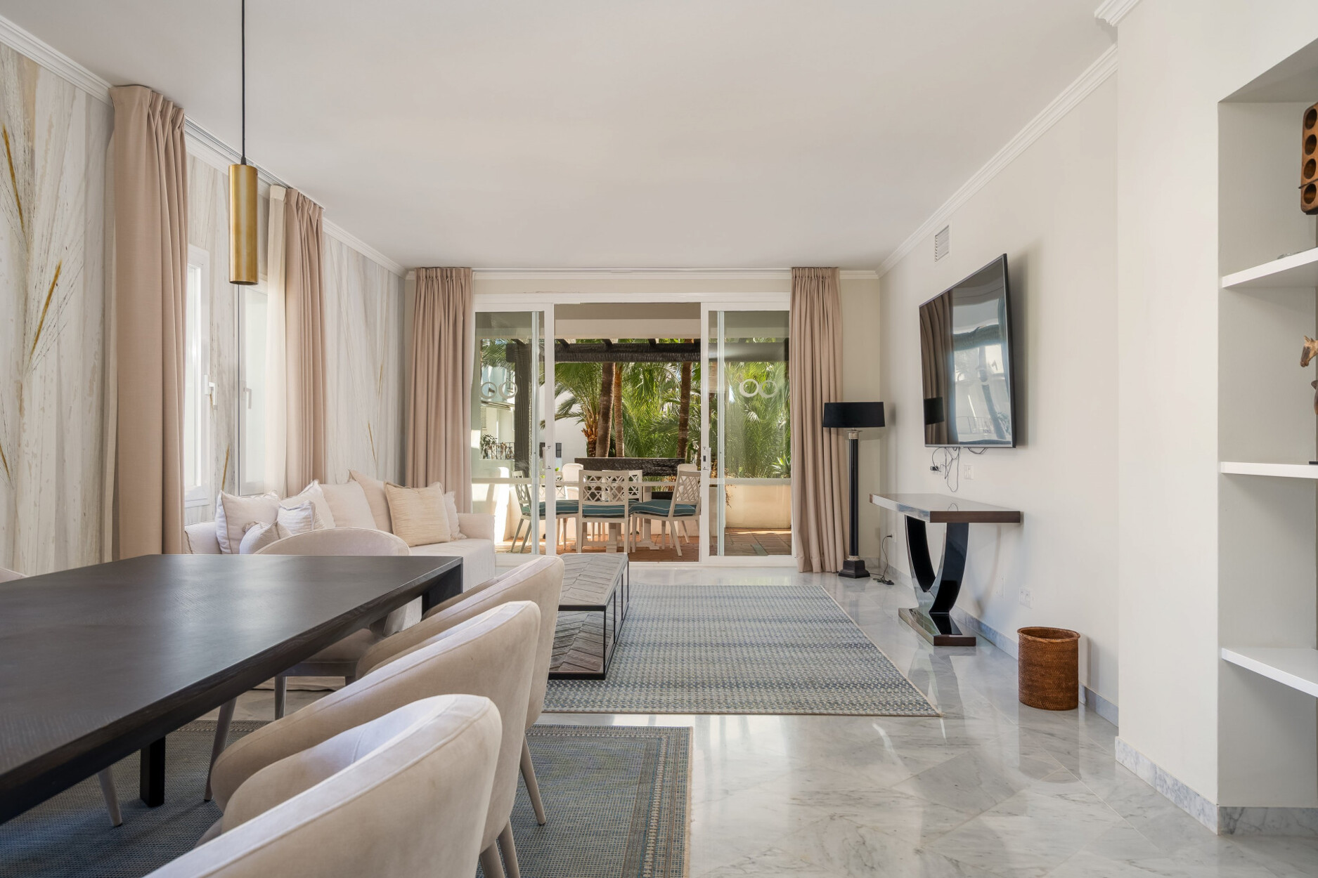 De residentie beschikt over meerdere terrassen op beide verdiepingen, biedt ruimtes om te eten, te ontspannen en te genieten van de zon van Marbella. De gemeenschap maakt deel uit van het wereldberoemde Puente Romano Resort, dat de bewoners voorziet van prachtig aangelegde tuinen, 24-uurs beveiliging, en toegang tot een uitzonderlijk scala aan faciliteiten, waaronder tennisbanen, een fitnesscentrum, spa, en een selectie van fijne eetrestaurants en strandclubs, allemaal op slechts een steenworp afstand van de zee.