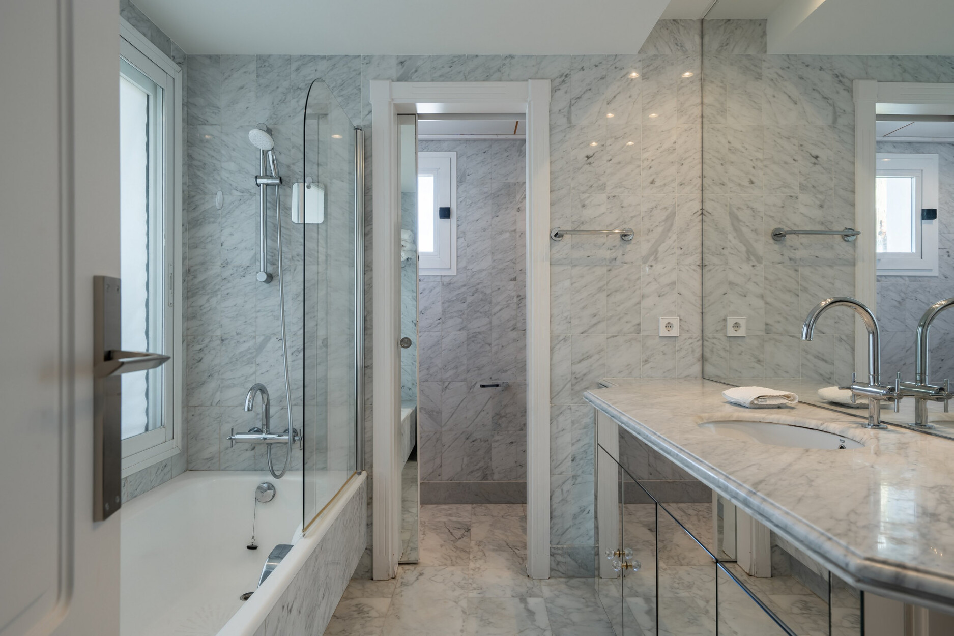 Het belangrijkste niveau beschikt over een royale open woon- en eetkamer met directe toegang tot een terras op het zuiden, een volledig uitgeruste keuken en twee comfortabele suites. De bovenverdieping bestaat uit de hoofdslaapkamer met eigen terras en een extra gasten slaapkamer. De interieurs zijn licht en luchtig, afgewerkt in een klassieke mediterrane stijl en onderhouden in goede staat, biedt een uitnodigende sfeer en ruime ruimte om bij te werken tot een eigentijdse luxe woning. Het appartement kan worden bijgewerkt voor de huidige normen, zodat het ook een geweldige renovatie project.