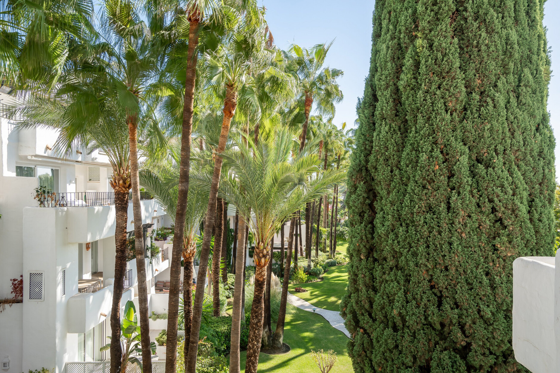 Dit elegante duplex penthouse heeft een bevoorrechte ligging in de weelderige tropische tuinen van het gebied Puente Romano. Verspreid over twee niveaus, biedt het pand vier en-suite slaapkamers en lichte, ruime woonruimtes verbonden met grote terrassen met open uitzicht op de tuinen en gedeeltelijk uitzicht op zee. Gepresenteerd in goede, goed onderhouden staat, het appartement biedt een comfortabele woonomgeving met mogelijkheden voor modernisering aan een nieuwe eigenaar smaak.