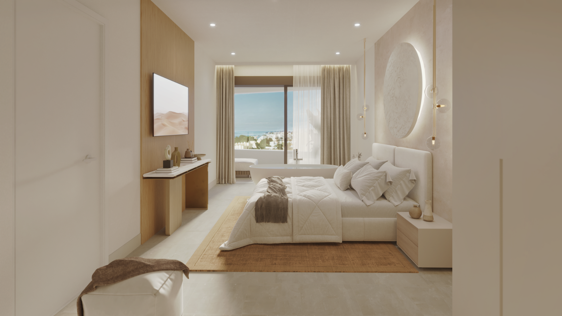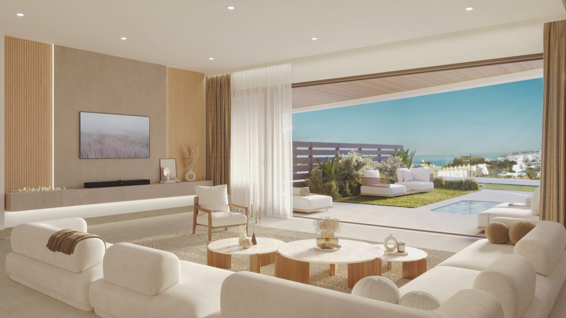 Het moderne en harmonieuze ontwerp van deze sky villa integreert naadloos met de omliggende natuur, waardoor een toevluchtsoord van rust en exclusiviteit ontstaat. Gebouwd op een terrasvormig perceel met vier niveaus, garandeert het unieke panoramische uitzichten vanuit elke hoek. De ruime, privé tuin—elegant en sereen—biedt de perfecte setting om buiten te genieten in een bevoorrechte en betoverende omgeving. De gemeenschap biedt een garage met twee parkeerplaatsen per woning en een lift om toegang te krijgen tot de verschillende niveaus van het complex.