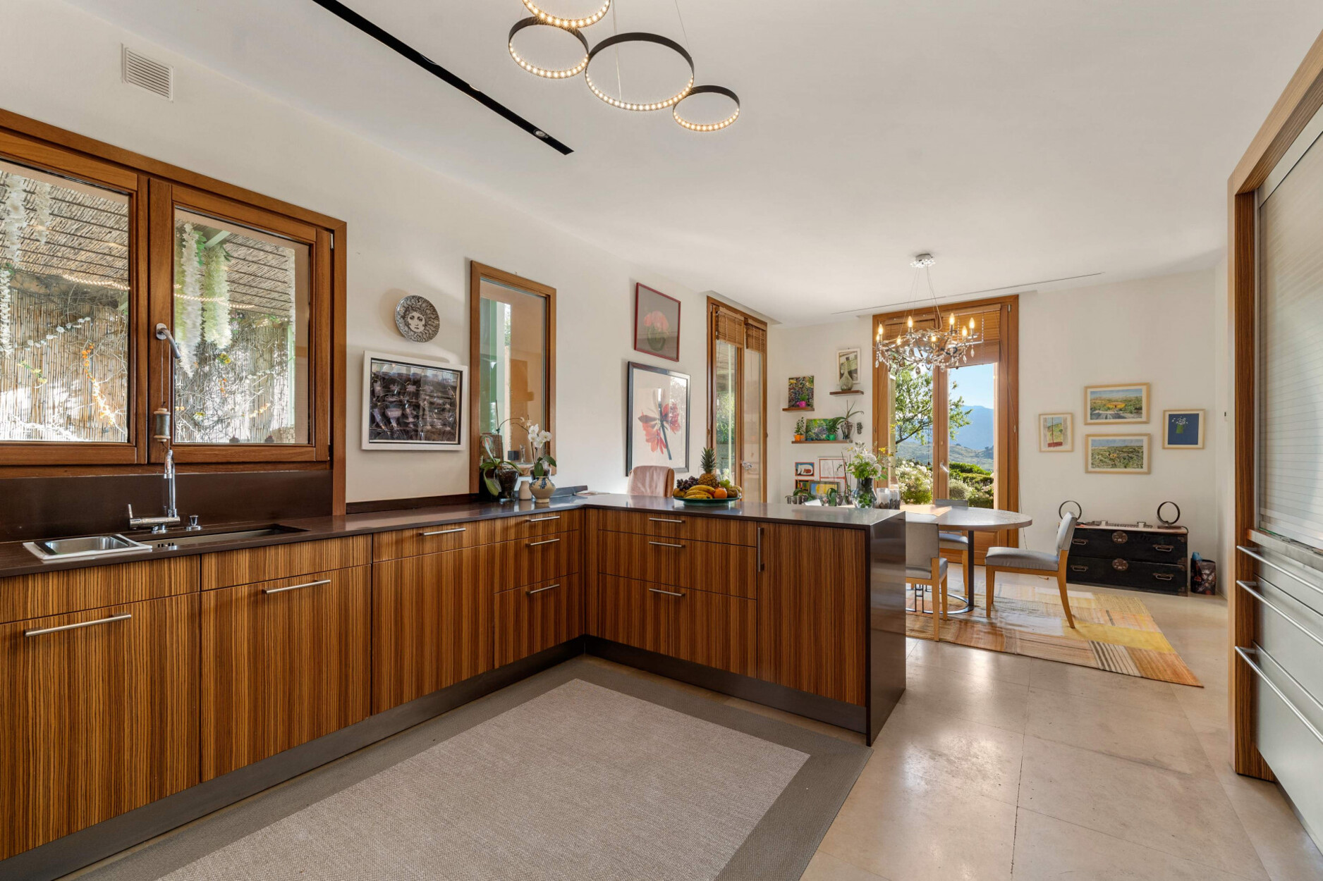 Op de begane grond wordt u verwelkomd door een hal met een spectaculair raam van zeven meter hoog dat het landschap omlijst alsof het een kunstwerk is. Op deze verdieping bevinden zich twee suites en een slaapkamer met en-suite badkamer, terwijl de hoofdverdieping is georganiseerd rond een indrukwekkende woonkamer met dubbele hoogte, bekroond door een driedimensionaal fresco van de Portugese kunstenaar Pedro Calapez en een sculpturale lamp van Frans ontwerp. De keuken en eetkamer, een gezellige bibliotheek, de familiekamer, een extra suite en een prachtige spa maken het interieur compleet, dat is ontworpen voor comfort en rust.