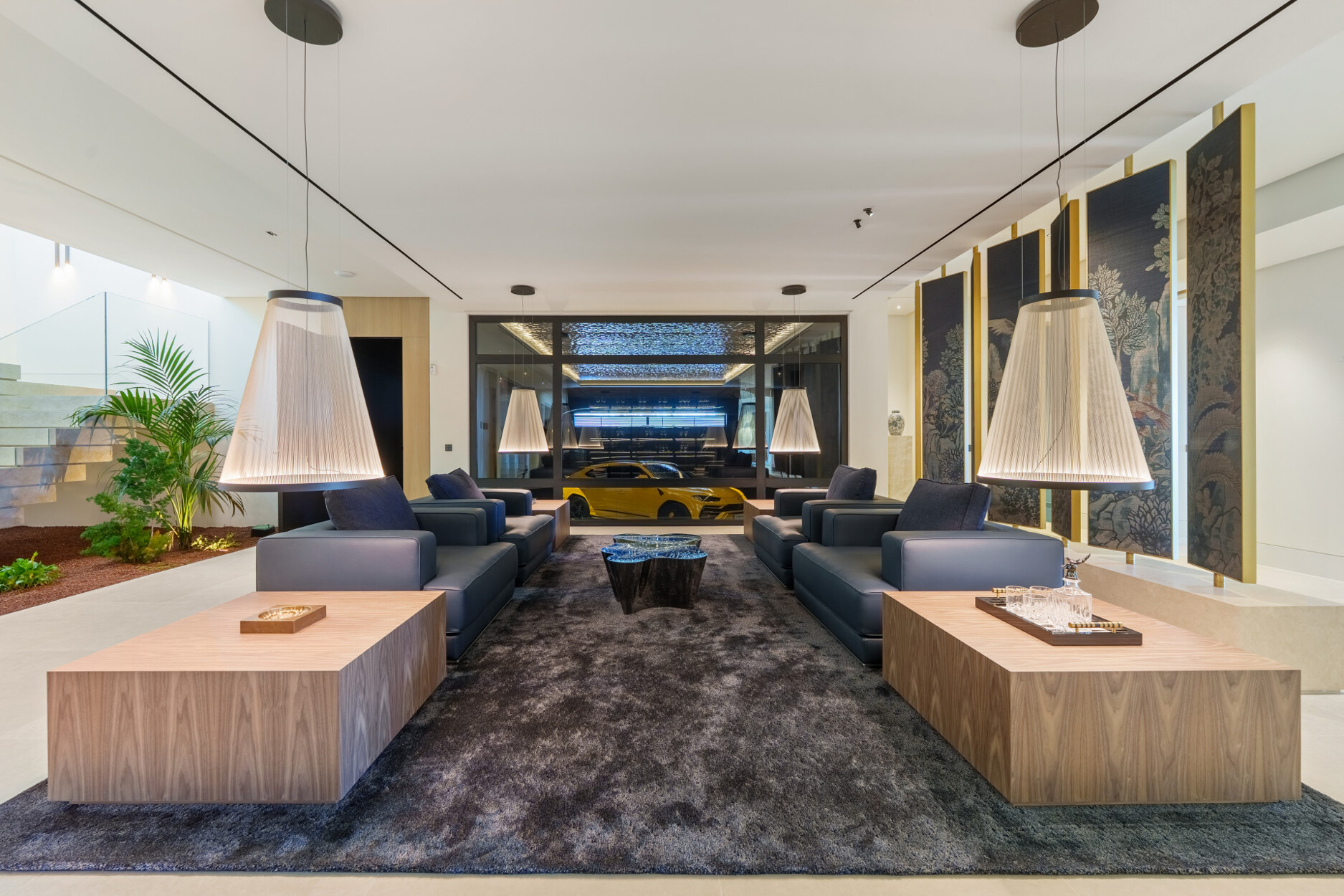 De onderverdieping, van bijna 800 m², is ontworpen om maximaal natuurlijk licht binnen te laten. Hier vindt u meerdere lounges om te ontspannen of gasten te ontvangen, een speelkamer, privébioscoop, volledig uitgeruste fitnessruimte en een binnen-spa met zwembad en jacuzzi.