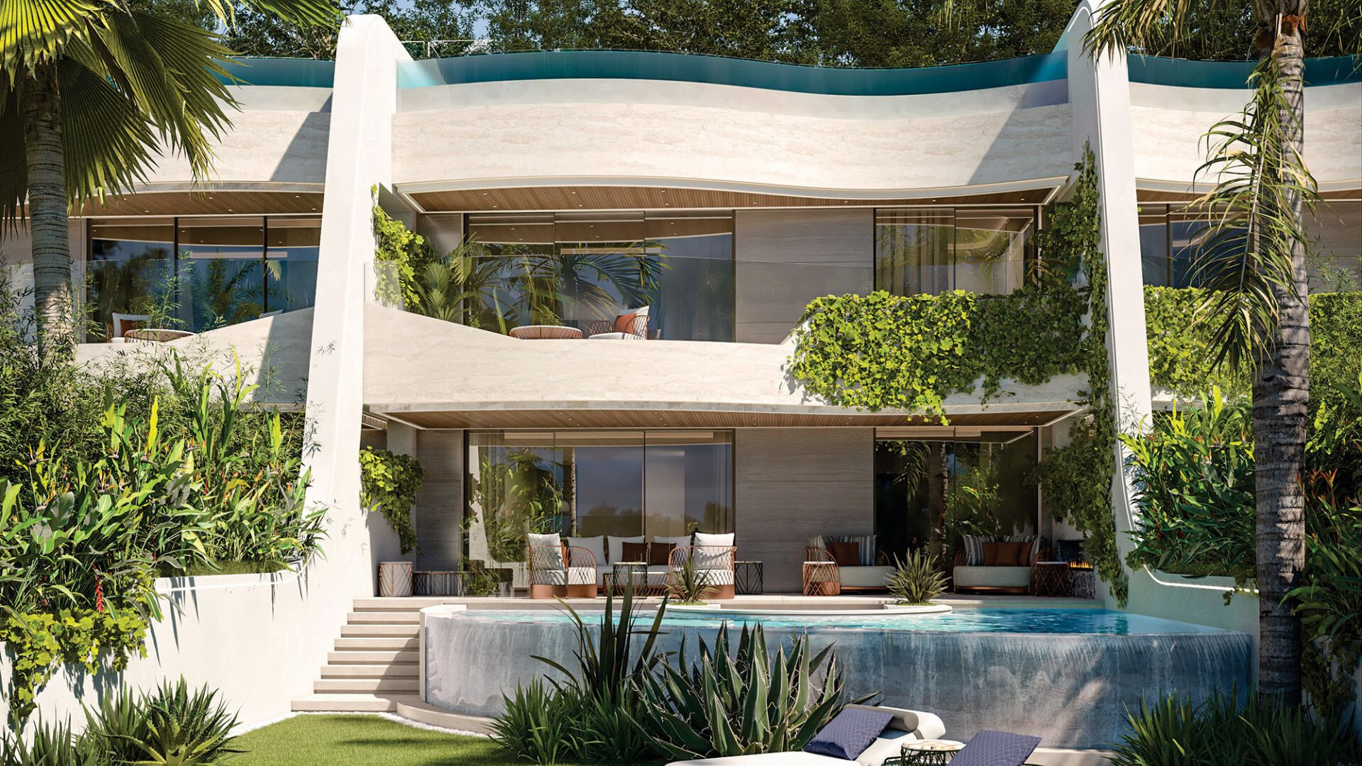 Het interieur van de woning is ontworpen met een uiterst zorgvuldige aandacht voor detail. Open leefruimtes verbinden de woonkamers, slaapkamers en terrassen op vloeiende wijze, waardoor natuurlijk licht elke ruimte vult. De woning beschikt over drie slaapkamers met en-suite badkamers en drie badkamers, evenals een gastentoilet. Twee slaapkamers bevinden zich op de eerste verdieping en de derde op het solariumniveau, vanwaar men kan genieten van indrukwekkende uitzichten op het zwembad.