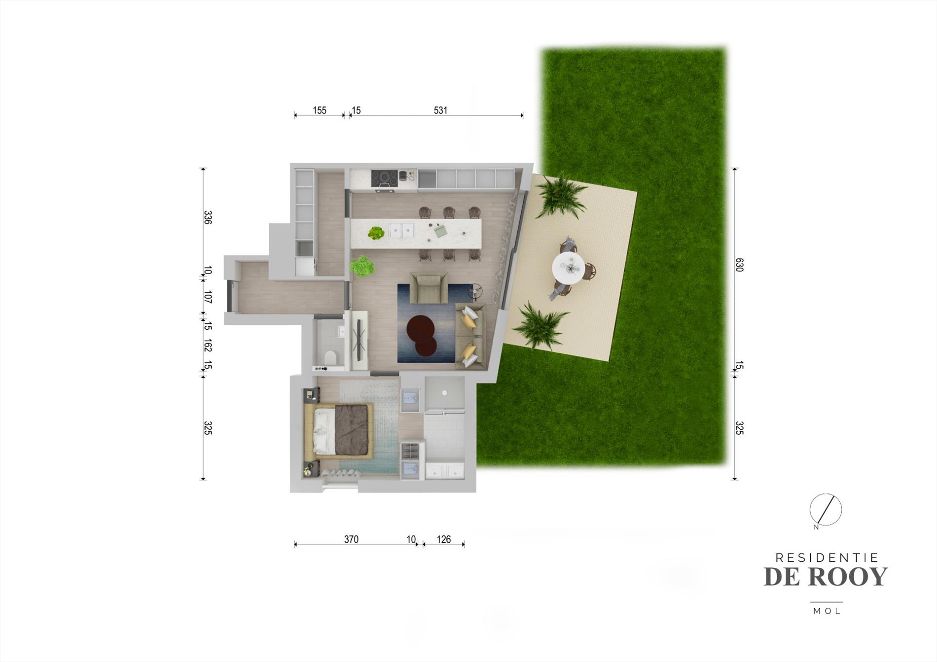 Residentie De Rooy omvat 5 luxe nieuwbouwappartementen met 1, 2 of 3 slaapkamers in een klassiek maar toch heel moderne bouwstijl. De oppervlaktes variëren van 70m² tot 224 m² en het gebouw voldoet aan alle hedendaagse normen qua ventilatie en energiezuinigheid. De appartementen zijn zuid georiënteerd met telkens mooie, grote terrassen en/of tuin. Er is achteraan het gebouw een mooie, grote gemeenschappelijke tuin welke volledig zal aangelegd worden met bomen, groeninplanting en een wandelpad doorheen de tuin dat op een zithoek met banken uitkomt. Kortom, rust en privacy wordt zeer hoog in het vaandel gedragen in Residentie De Rooy.