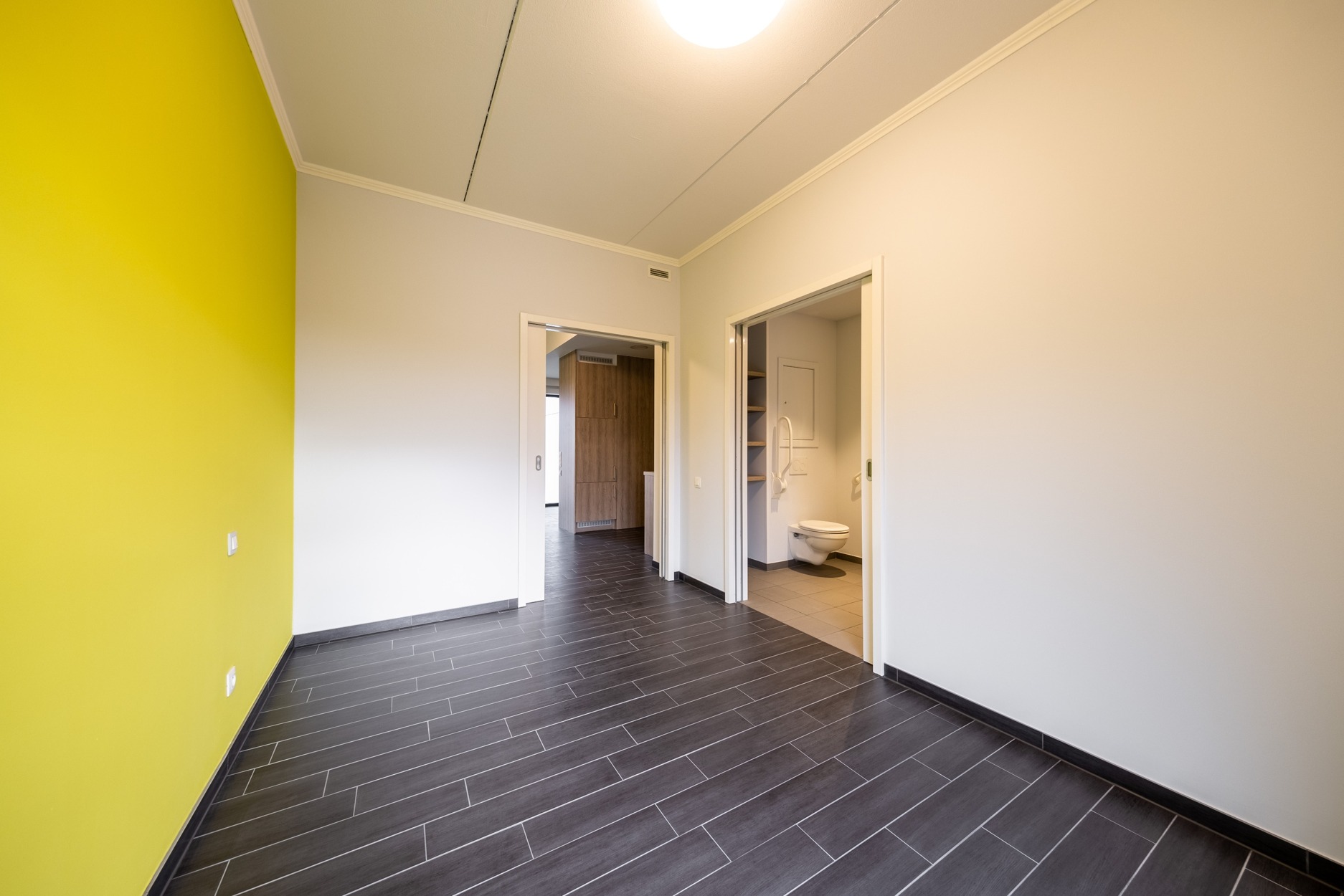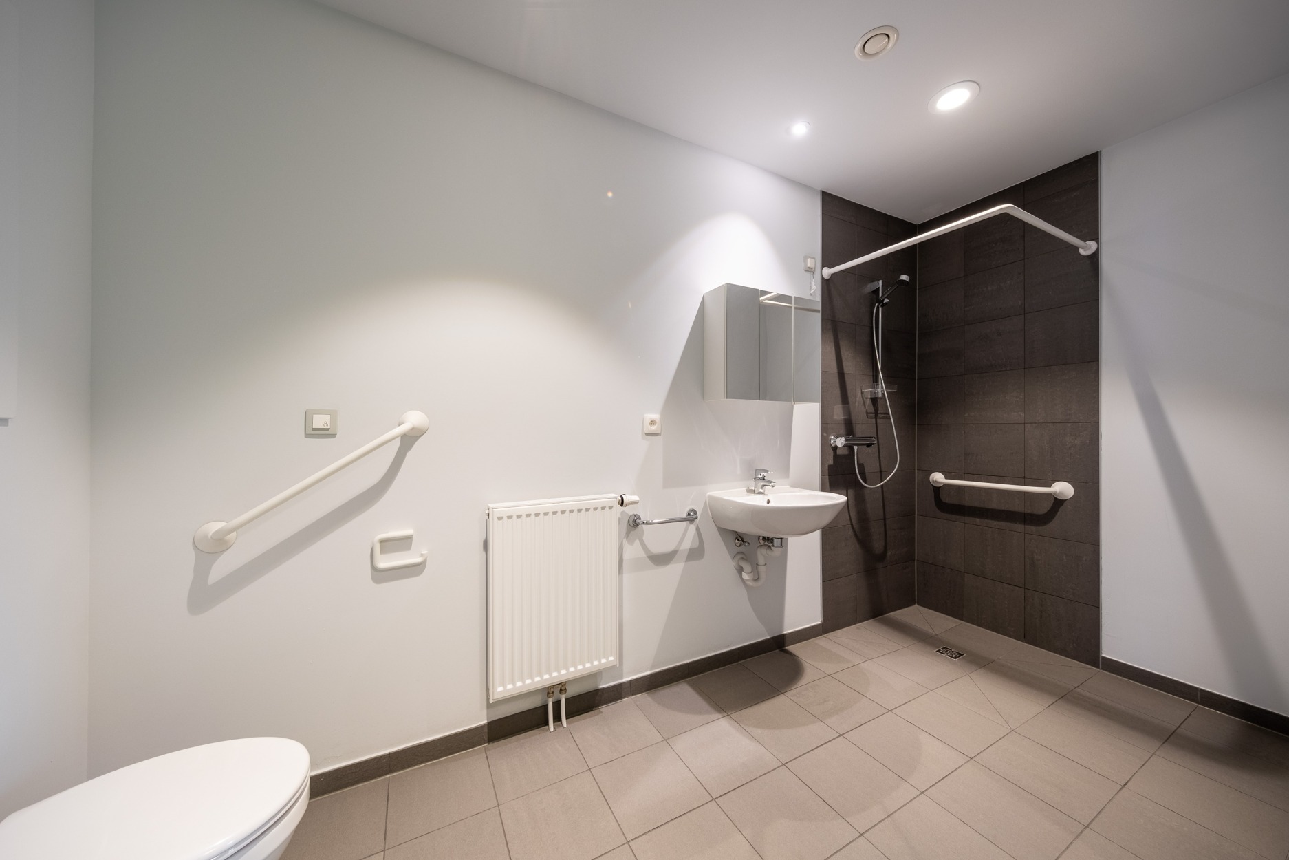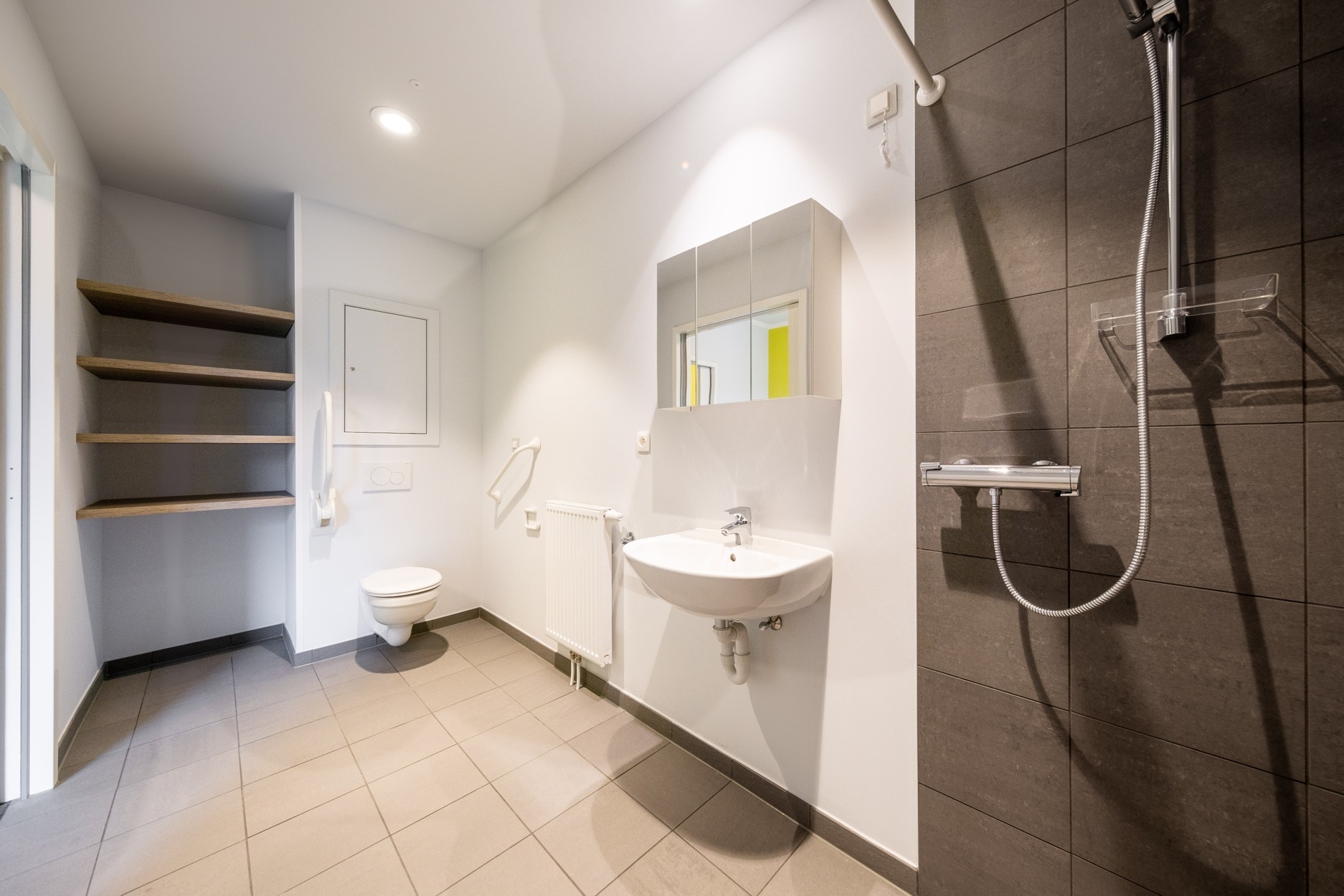Indeling: Deze flat, van 52m², is gelegen op de eerste verdieping, met een mooi uitzicht over de binnentuin. De flat is onderverdeeld in een leefruimte met open keuken, een badkamer en slaapkamer. De woonst is, net zoals de gemeenschappelijke ruimtes, toegankelijk voor rolstoelgebruikers. Iedere bewoner kan gebruik maken van de gemeenschappelijke voorzieningen. In het gebouw bevindt er zich een kapsalon en het appartement met bureau van de conciërge. Er zijn tevens een gemeenschappelijke wasruimte met wasmachines en droogkasten, werkruimte, afvalberging en technische ruimte aanwezig in het gebouw. Het parkeren zal bovengronds gebeuren. Beneden kan men terecht in de gezellige polyvalente ruimte, een mooie plazza met een geïntegreerde cafetaria, het bioscoopzaaltje en de wellness ruimte. Relevante info voor beleggers: Omwille van de toenemende vergrijzing en het beperkte aanbod is een belegging in erkende assistentiewoningen een goede keuze. U kan genieten van een aantal fiscale voordelen zoals een vrijstelling van onroerende voorheffing (indien u de assistentiewoning ter beschikking stelt van de uitbater om te verhuren).
