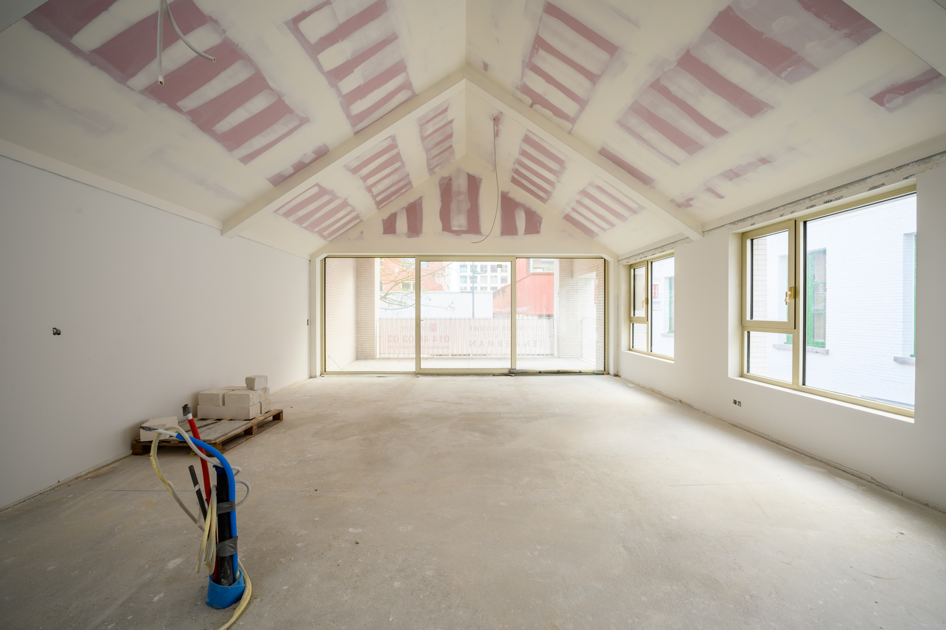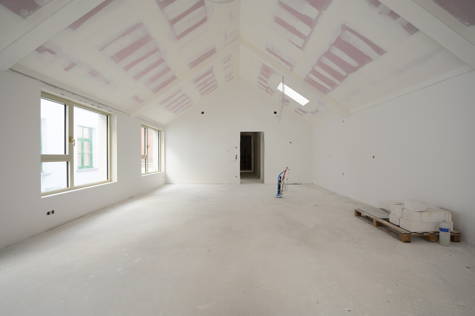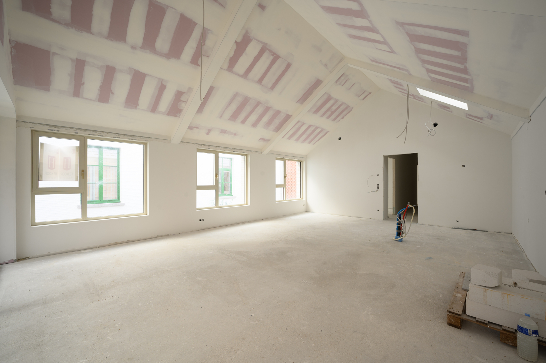 De loft zelf is momenteel in een "casco" toestand, dit geeft de mogelijkheid om deze nog volledig af te werken naar wens in samenspraak met de bouwheer. De budgetten voor de gewenste afwerking zijn reeds inclusief in de prijs, De totale oppervlakte van deze loft is ca. 154m² met een terras van ca. 19m² en geeft ruimte aan 2 mooie slaapkamers, bergingen, badkamer, apart toilet en natuurlijk de uitzonderlijke leefruimte met open keuken. De grootste troef? Natuurlijk de open ruimte met een plafondhoogte van 4m die het loftgevoel compleet maakt!