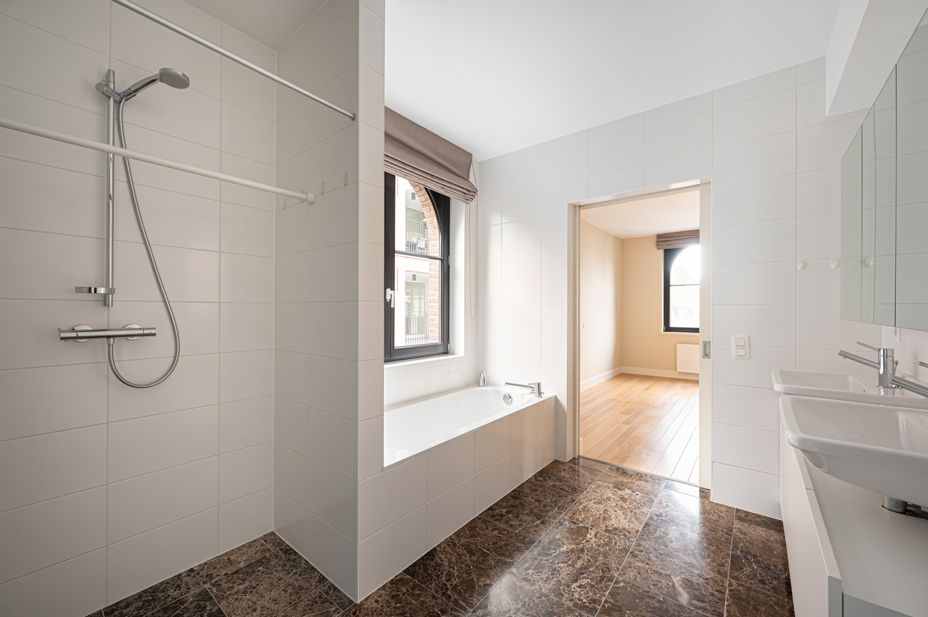 - Hoge afwerkingsgraad: parket & natuurstenen vloeren, ingemaakte kasten,...