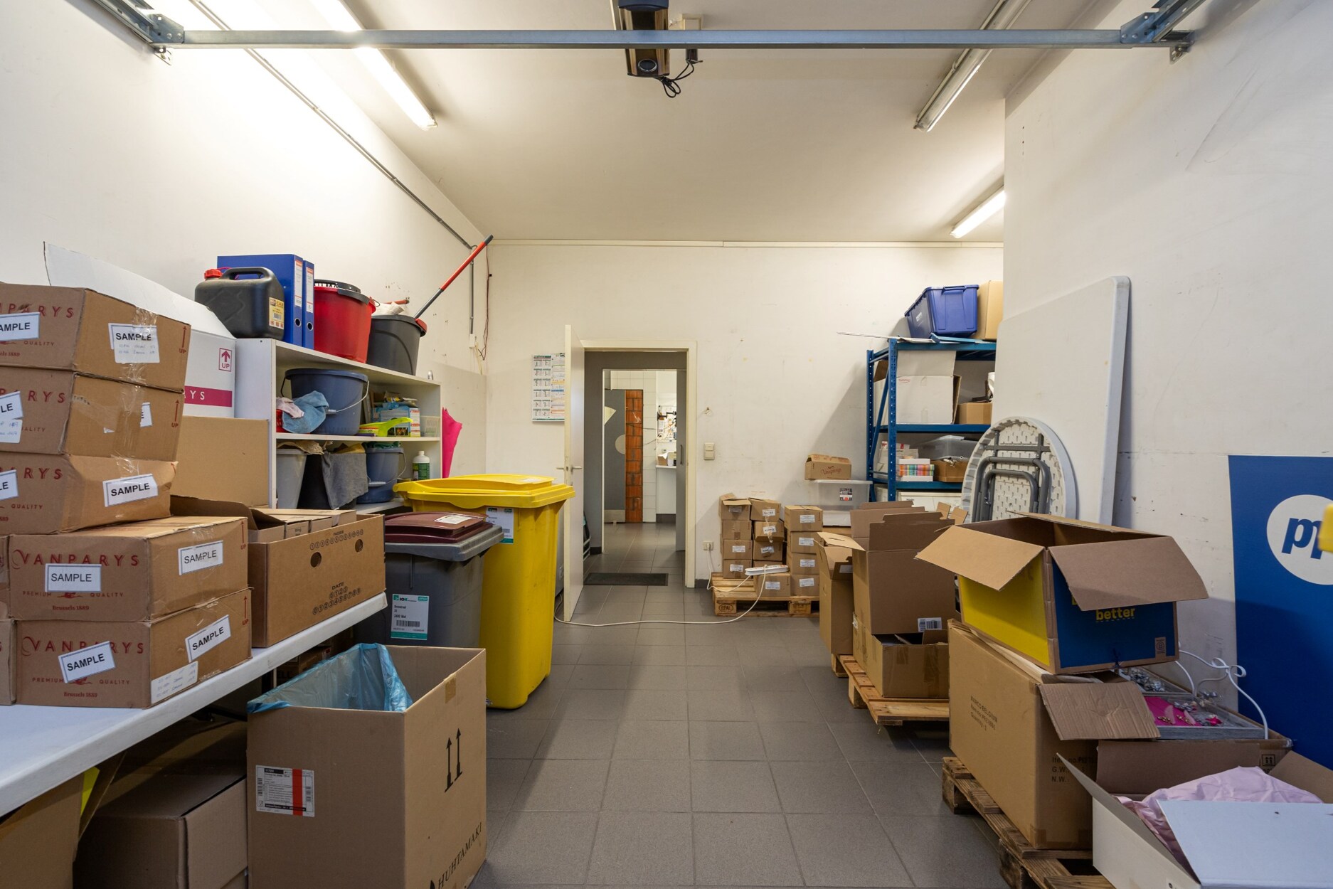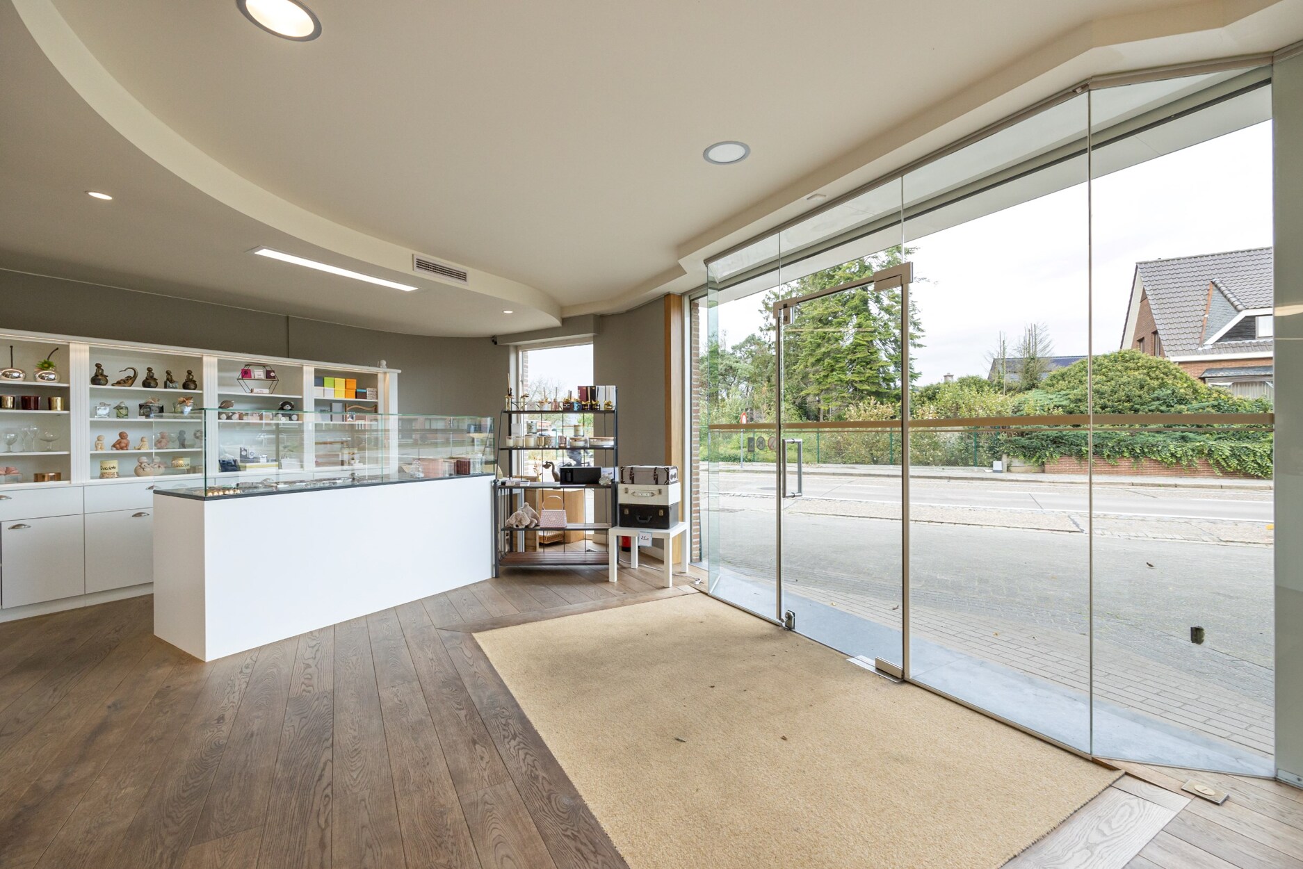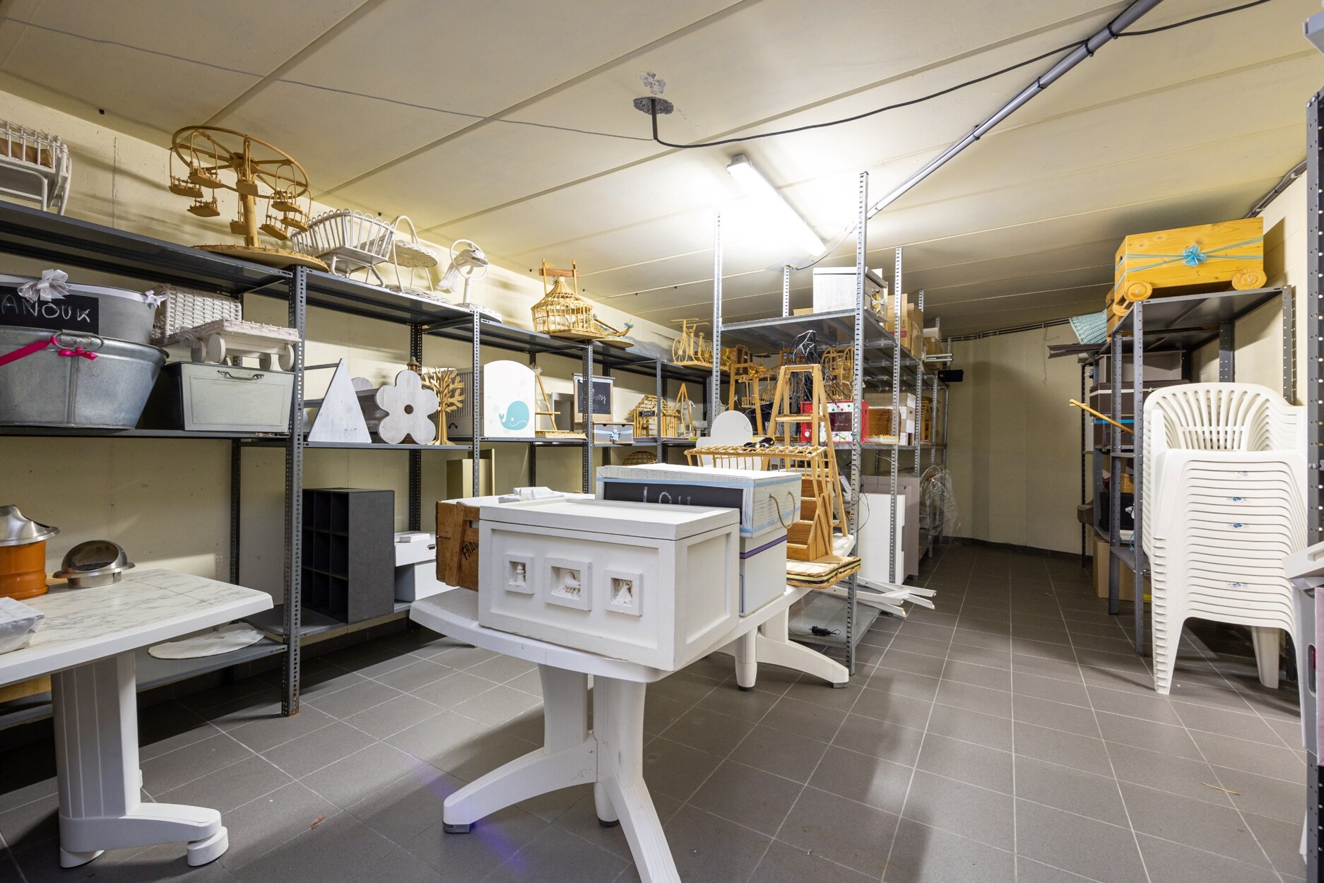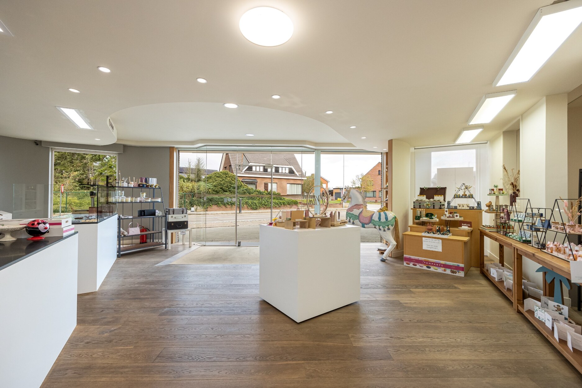 De handelszaak zelf geniet een oppervlakte van 100 m². Daarnaast is er een ruime keuken, 2 toiletten, inpandige garage en een ruime opbergkleder van ca. 150 m² dewelke bereikbaar is met een vaste trap en tevens beschikt over een goederenlift.