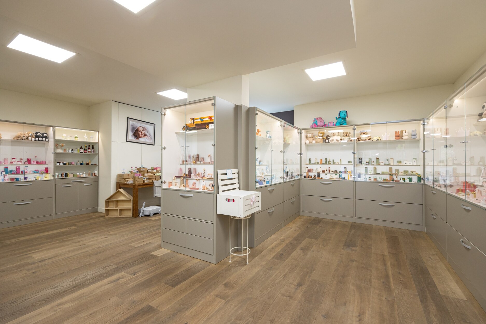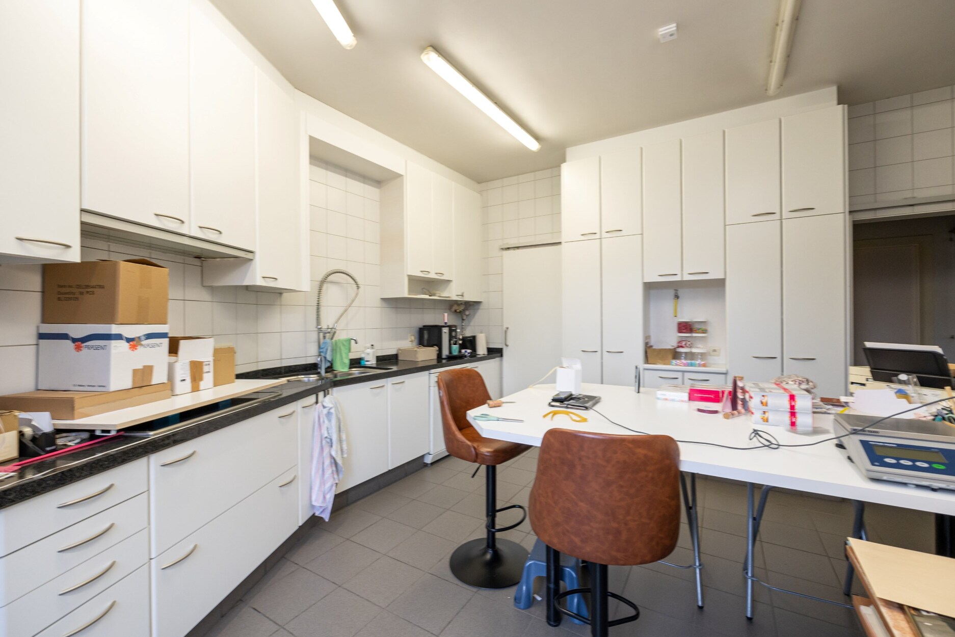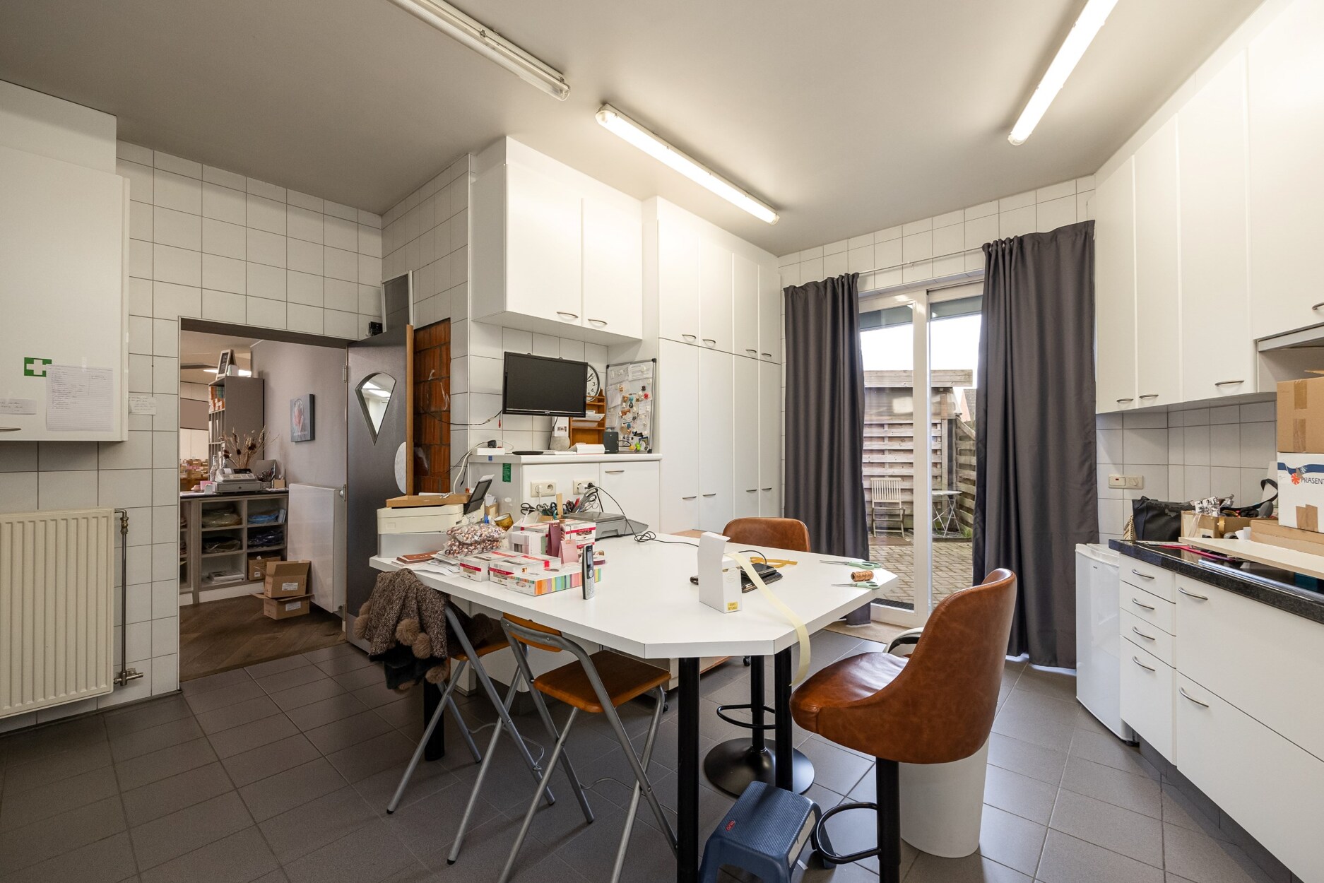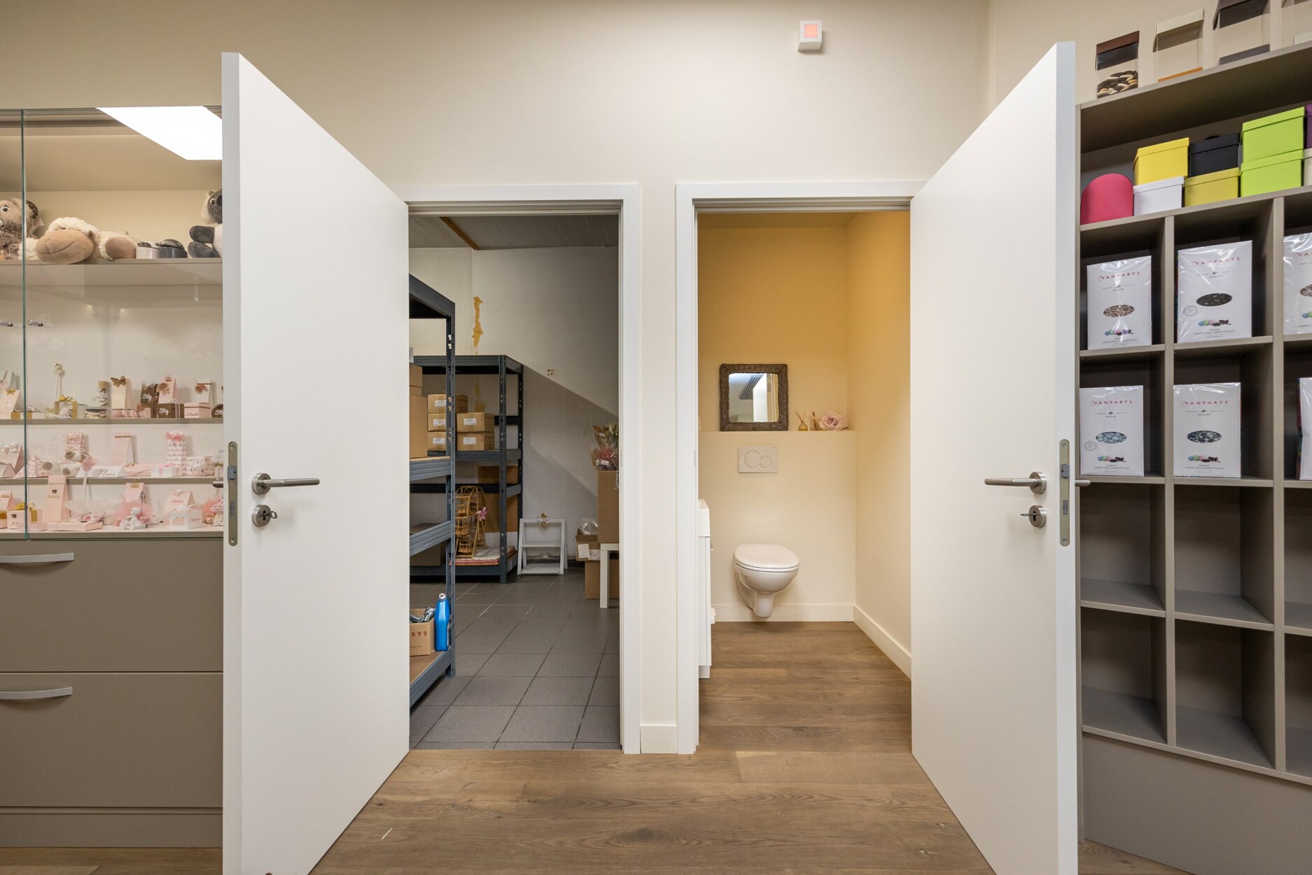 De handelszaak zelf geniet een oppervlakte van 100 m². Daarnaast is er een ruime keuken, 2 toiletten, inpandige garage en een ruime opbergkleder van ca. 150 m² dewelke bereikbaar is met een vaste trap en tevens beschikt over een goederenlift.