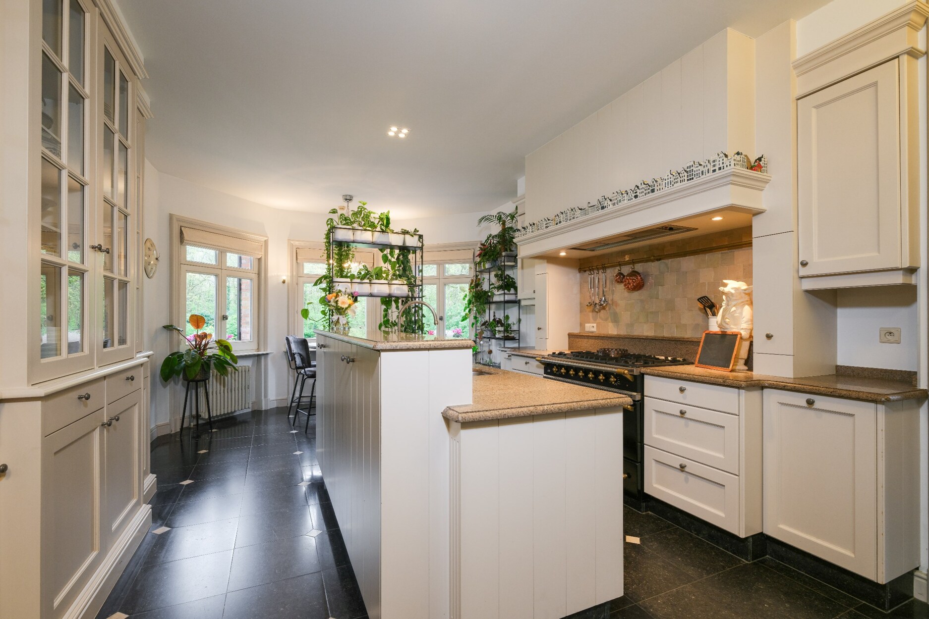 Indeling: ruime inkomhal, royale woonkamer bestaande uit zitkamer en eetkamer, prachtige gemoderniseerde leefkeuken met ontbijt/eethoek en een werk/tuinkamer op het gelijkvloers. Op de verdiepingen bevinden zich 8 zeer ruime slaapkamers en 4 ingerichte badkamers.