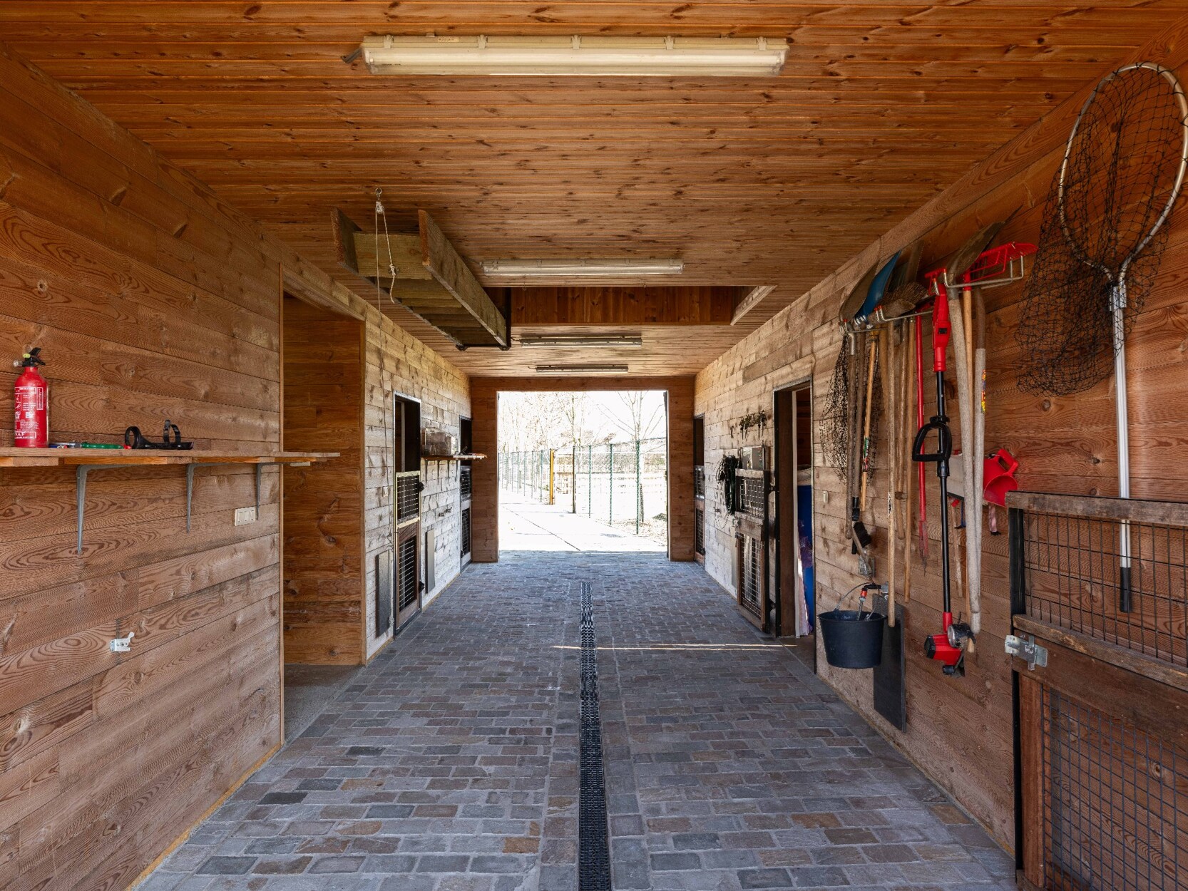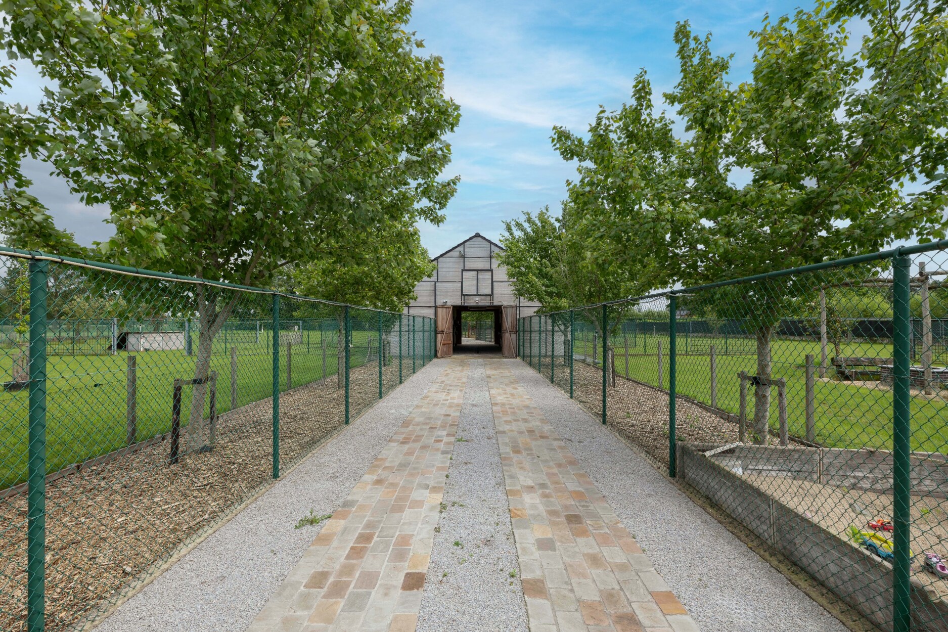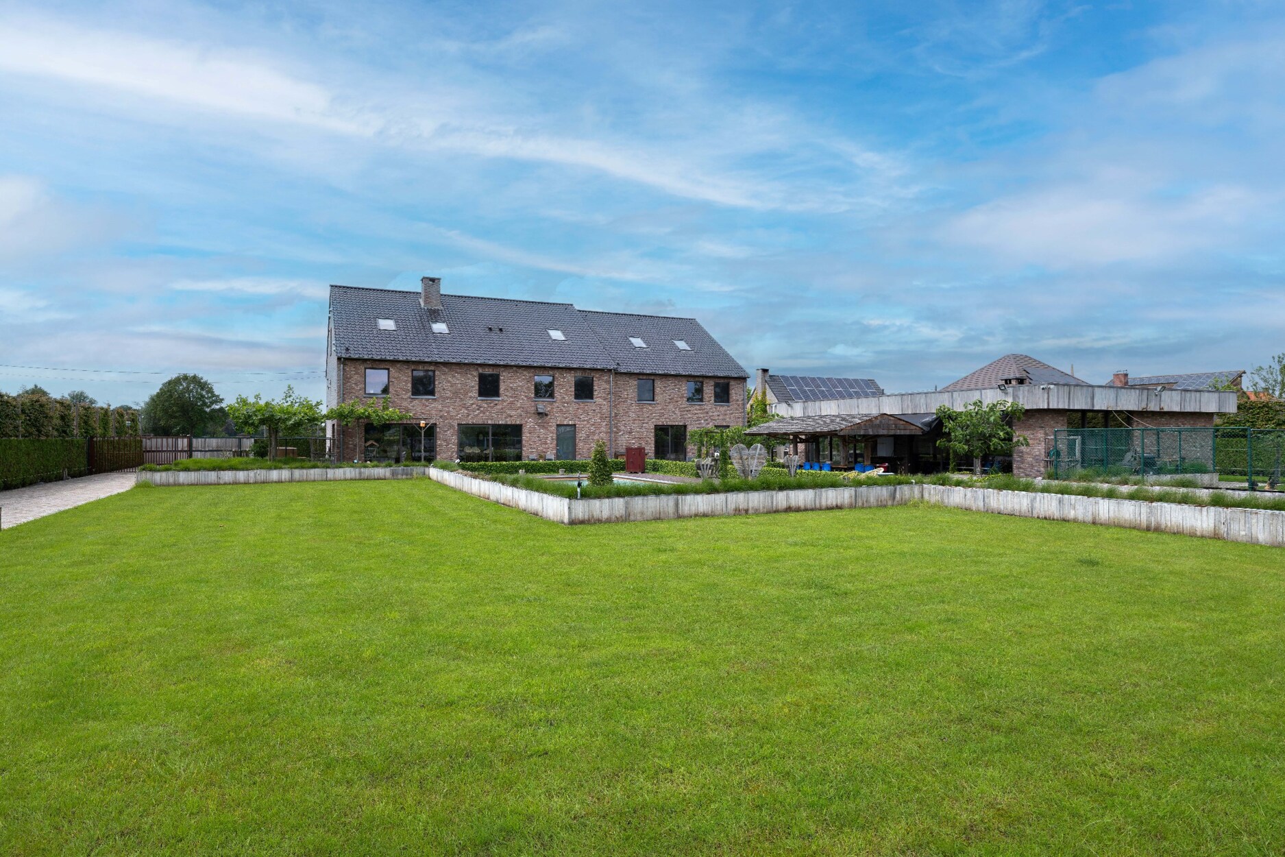 De zuidelijk gelegen tuin is een oase van ontspanning, compleet met een geautomatiseerd sproeisysteem, een verwarmd zwembad en een riant poolhouse van maar liefst 144m² (volledig onderkelderd). Voor dierenliefhebbers is er een schuur van 120m² met 5 paardenstallen en keurig omheinde weides achter de woning.