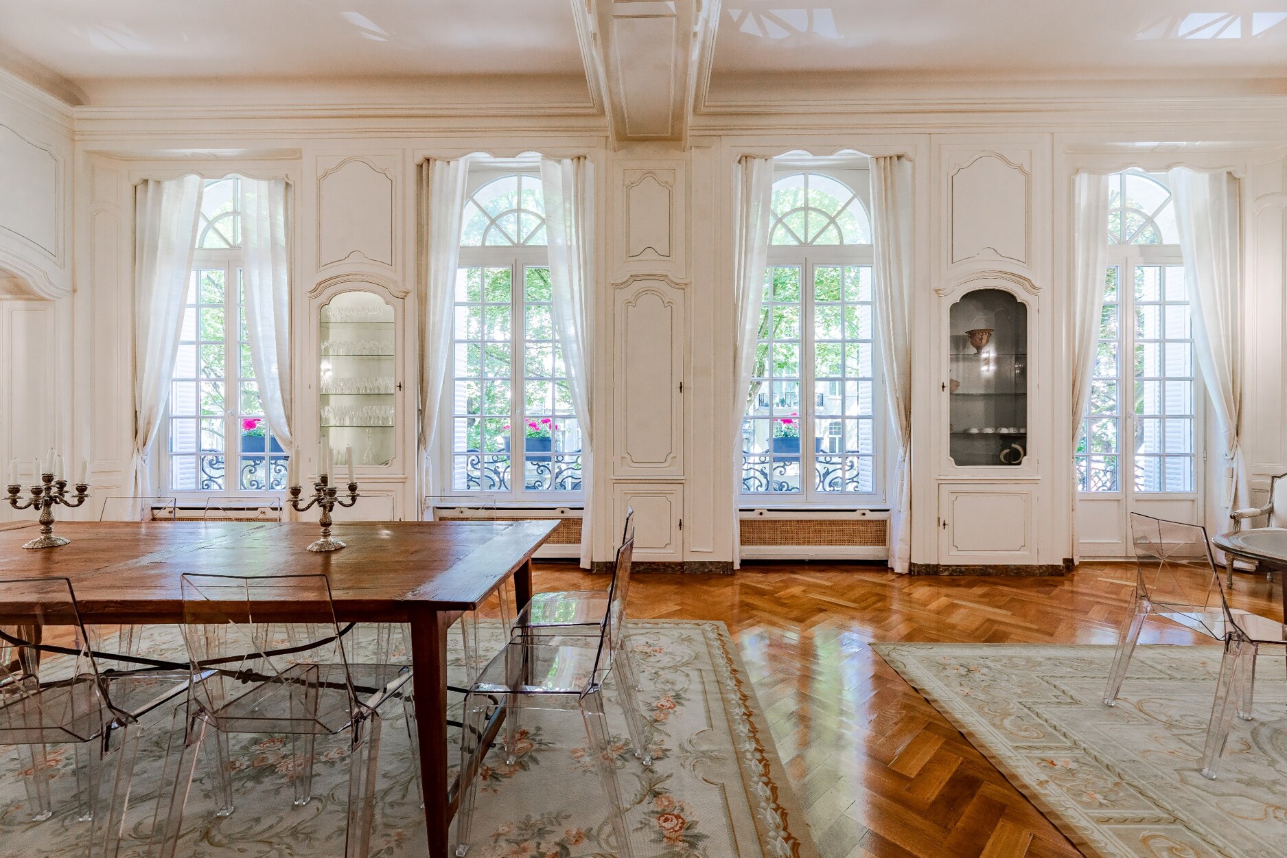 De eerste verdieping herbergt een receptie-eetkamer, een grote keuken met aangrenzende eetkamer, en een met zijde versierde salon. Een tweede trap leidt naar de tweede verdieping met de master suite en een extra slaapkamer.