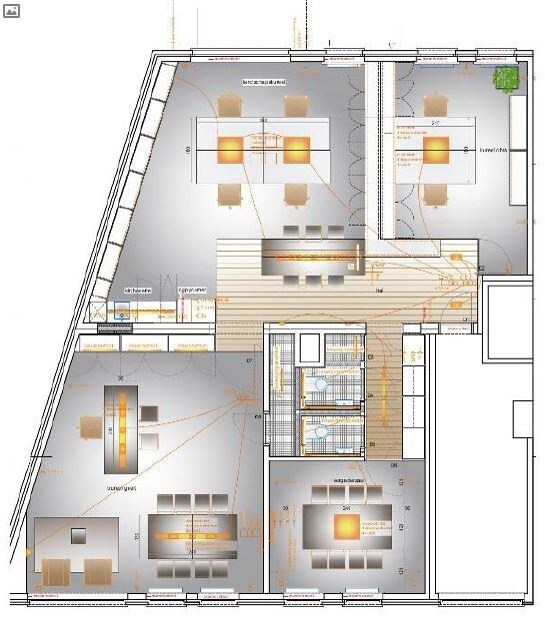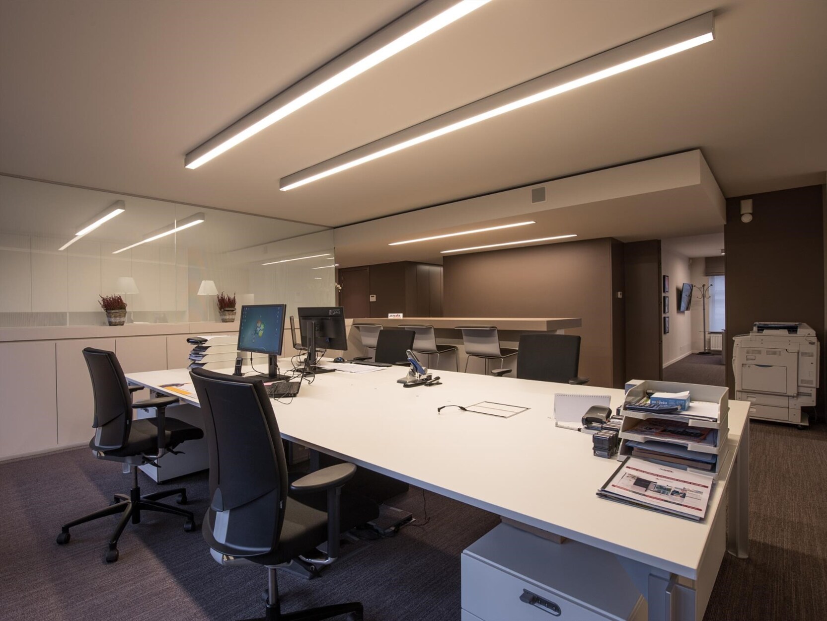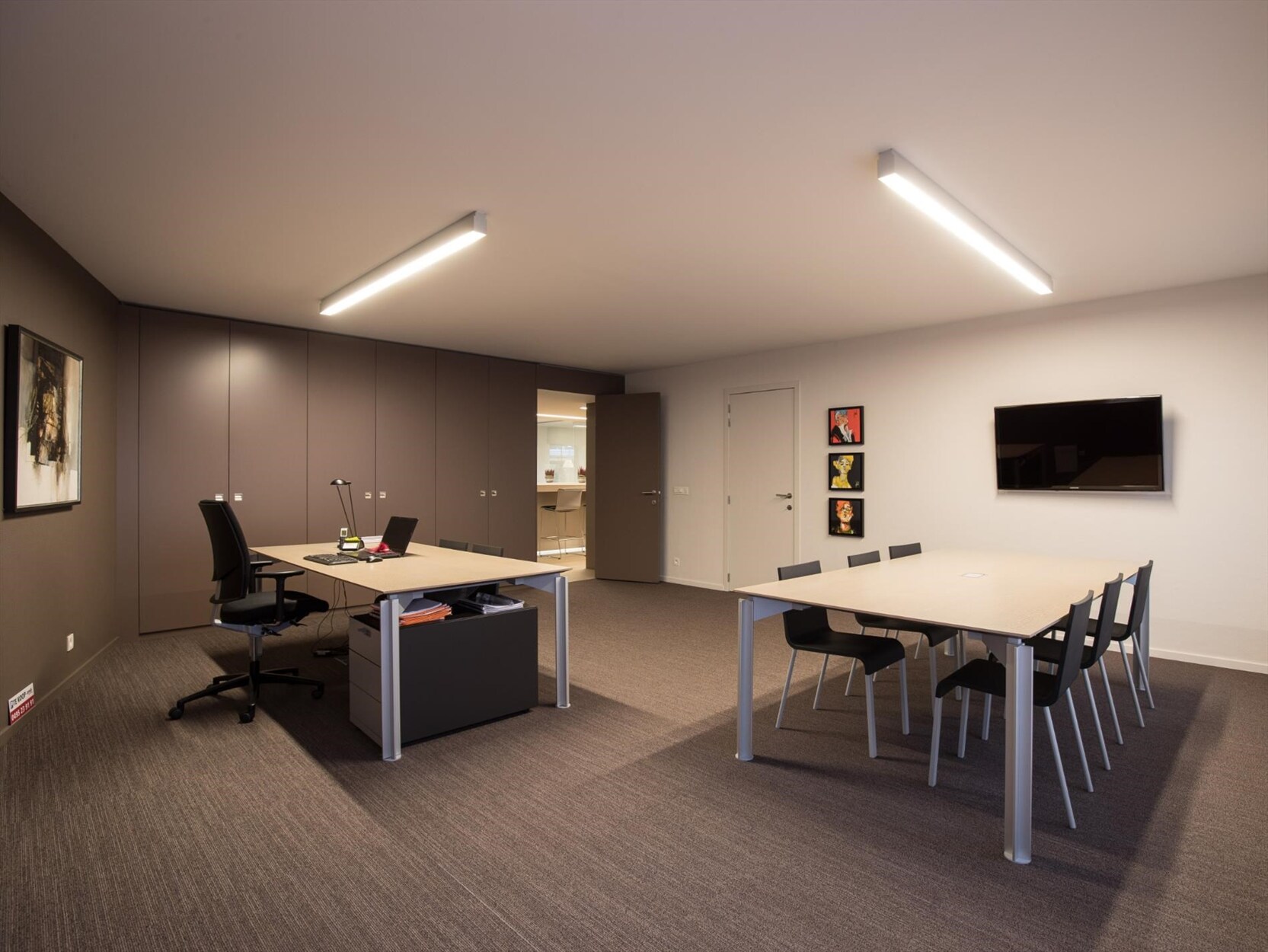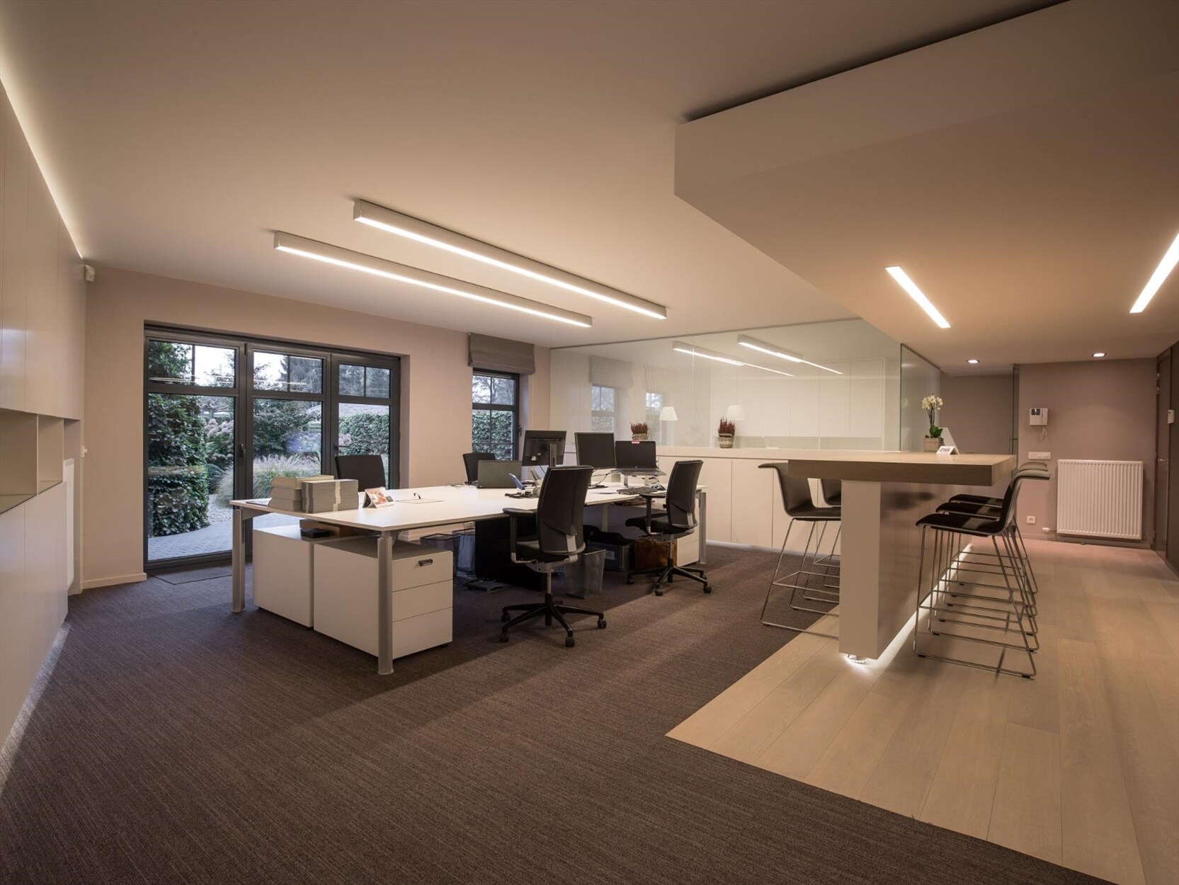 Het kantoor van 166m² + inkomhal is gelegen op het gelijkvloers en bevindt zich in een uitstekende staat. Het complex is gebouwd in 2011. De ruimte biedt plaats aan 7 à 8 medewerkers.