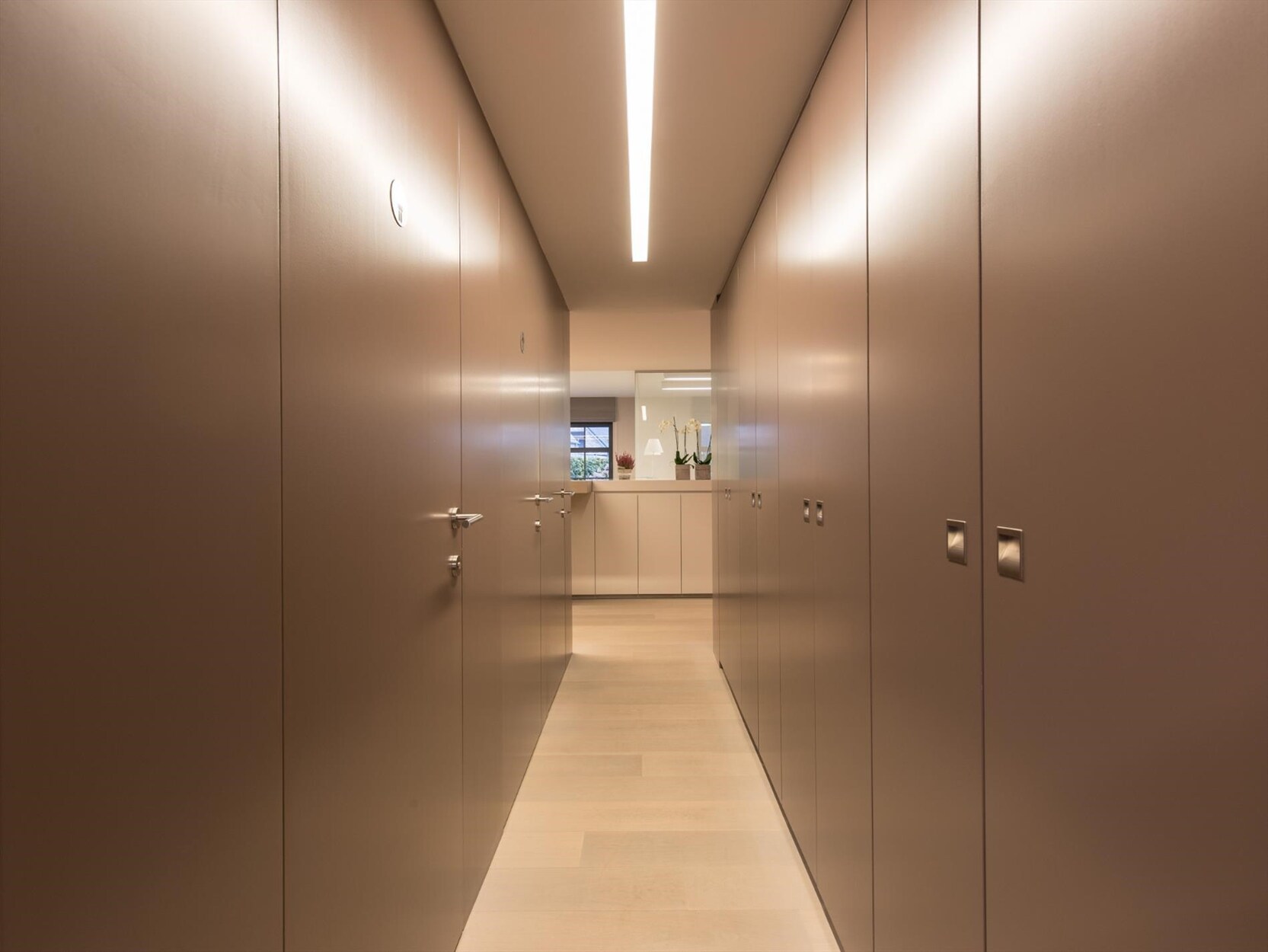Achteraan is er een private parking met 3 plaatsen + één afgesloten garage, die rechtstreeks aansluiten op de tuin. In de kelder zijn er 2 bergingen (4,41m² en 4,83m²) welke dienst doen als archief -en serverruimte. U kan zowel met de lift als de trap naar de kelder.