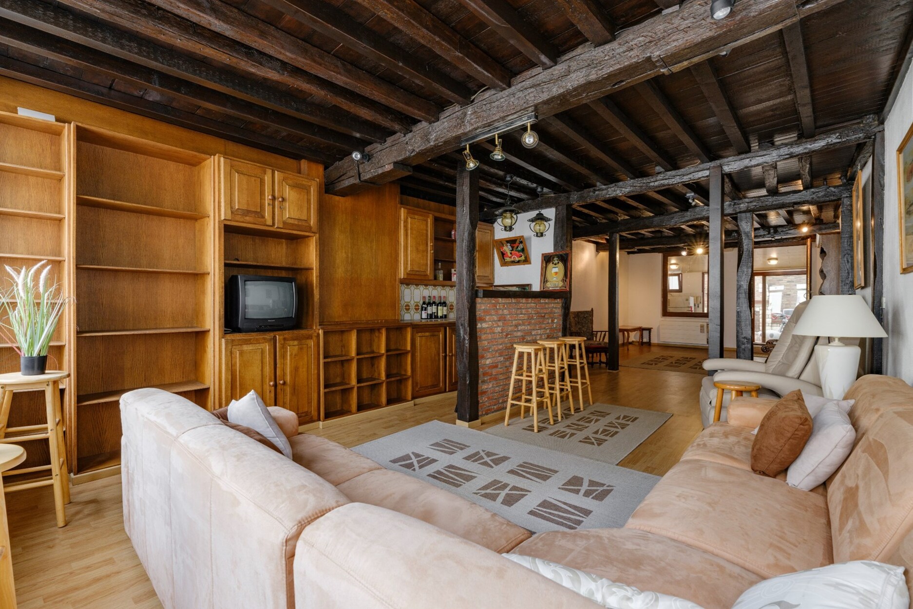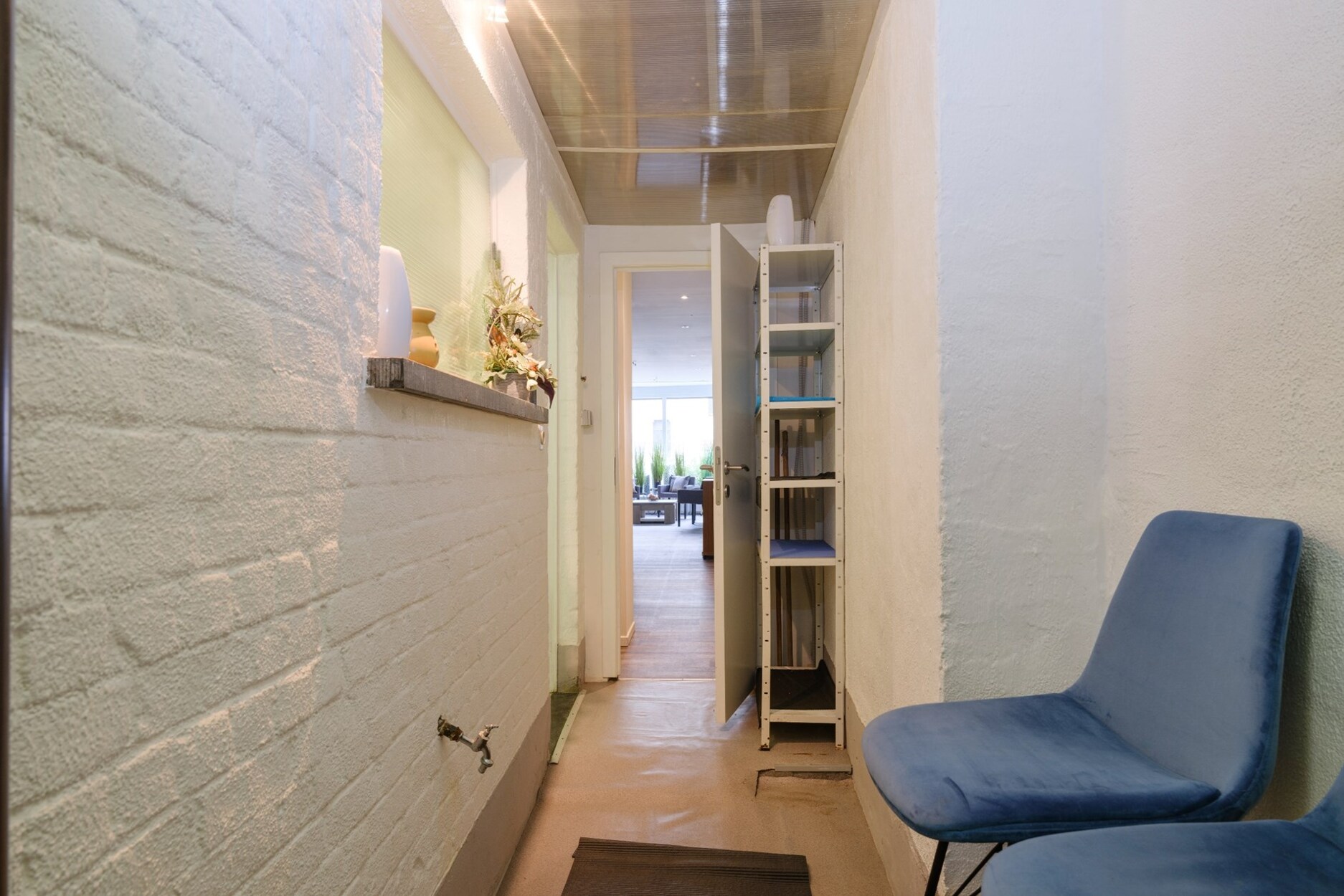Het bovenliggende appartement is bereikbaar via de commerciële ruimte of via een aparte ingang, wat optimale privacy garandeert. Het appartement beschikt over een lichte veranda, een lichtrijke keuken, een gezellige leefruimte met een bar en een ruime slaapkamer.