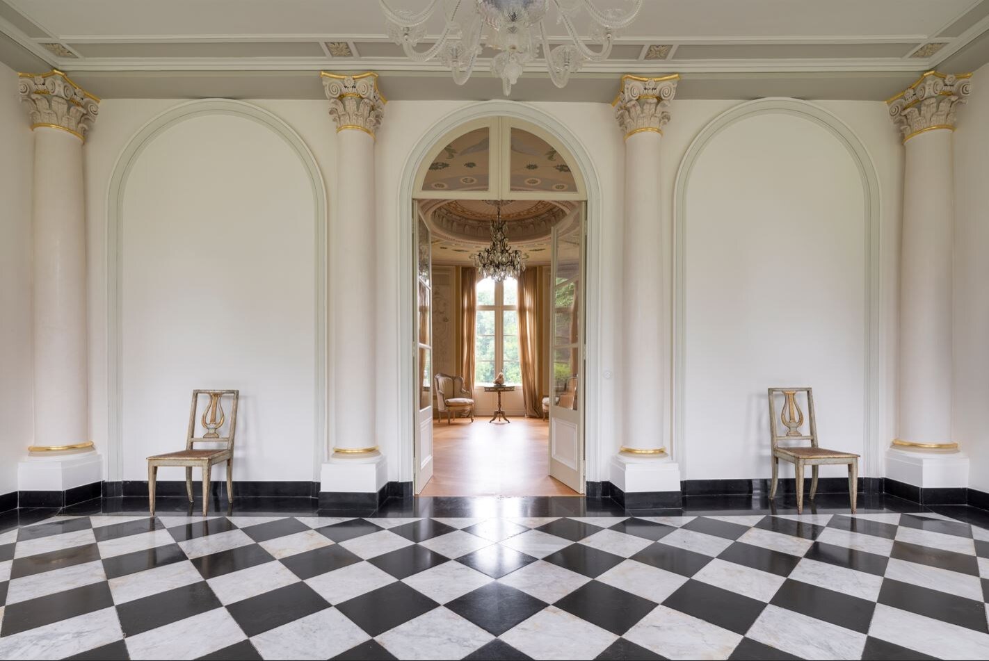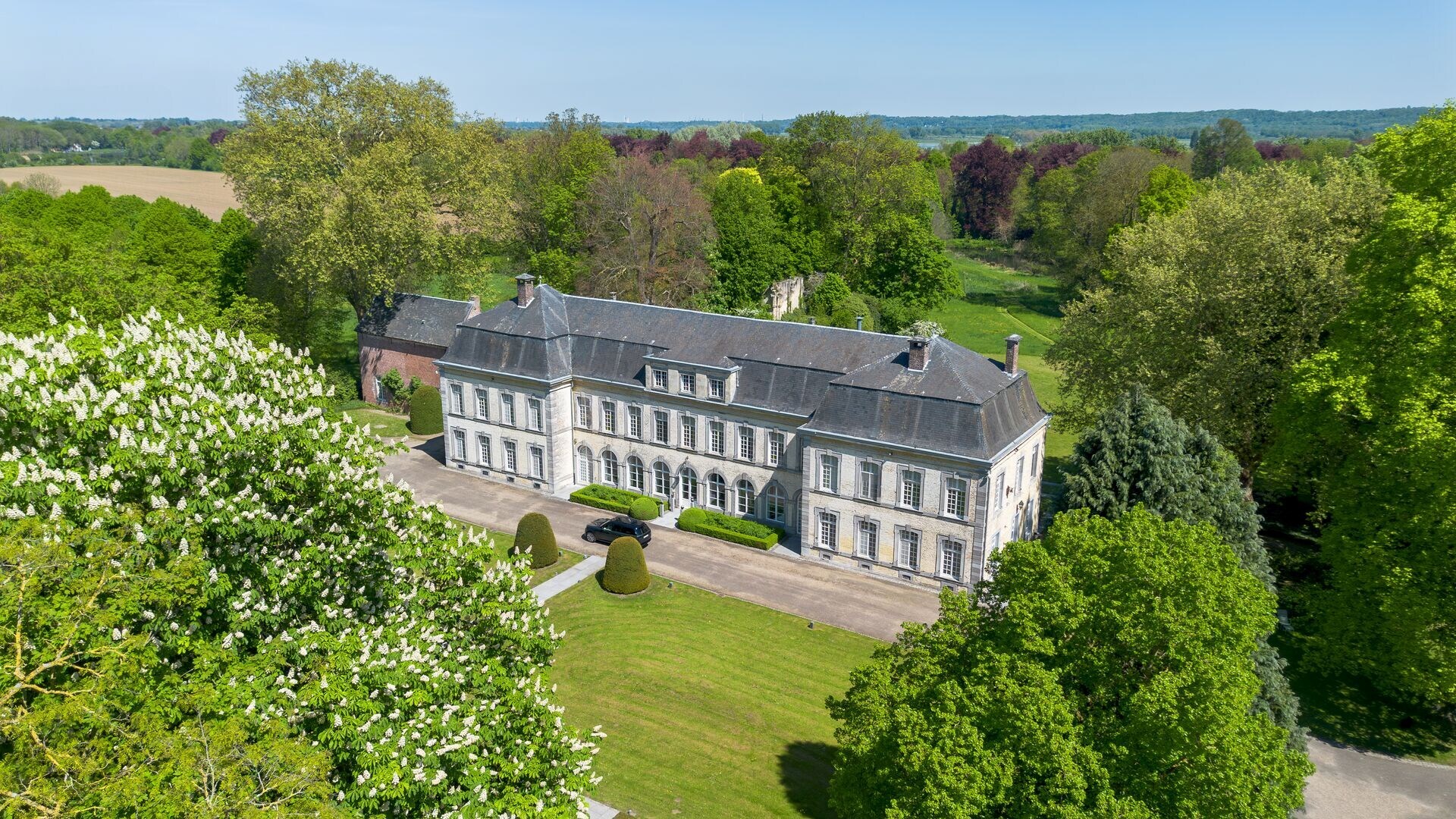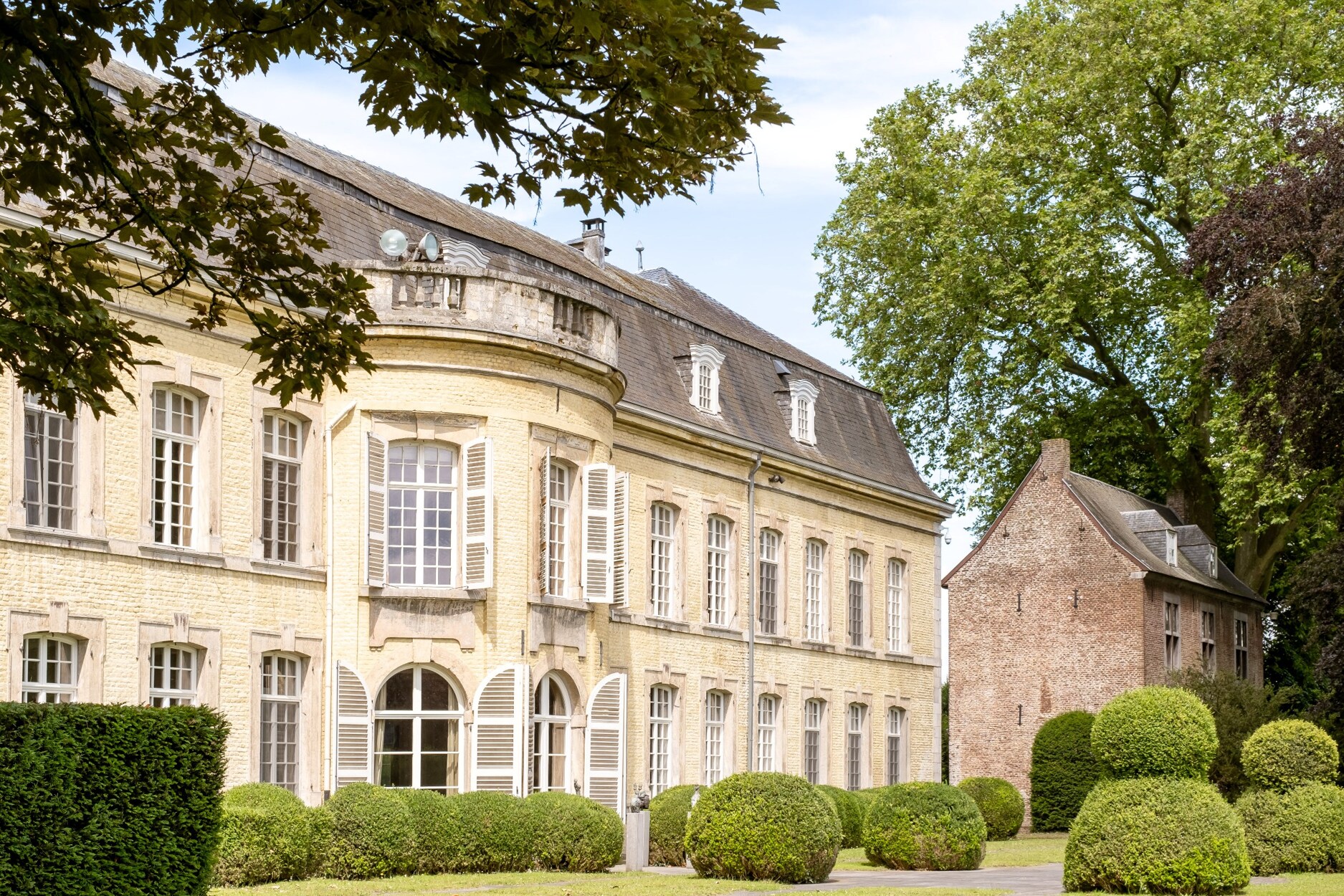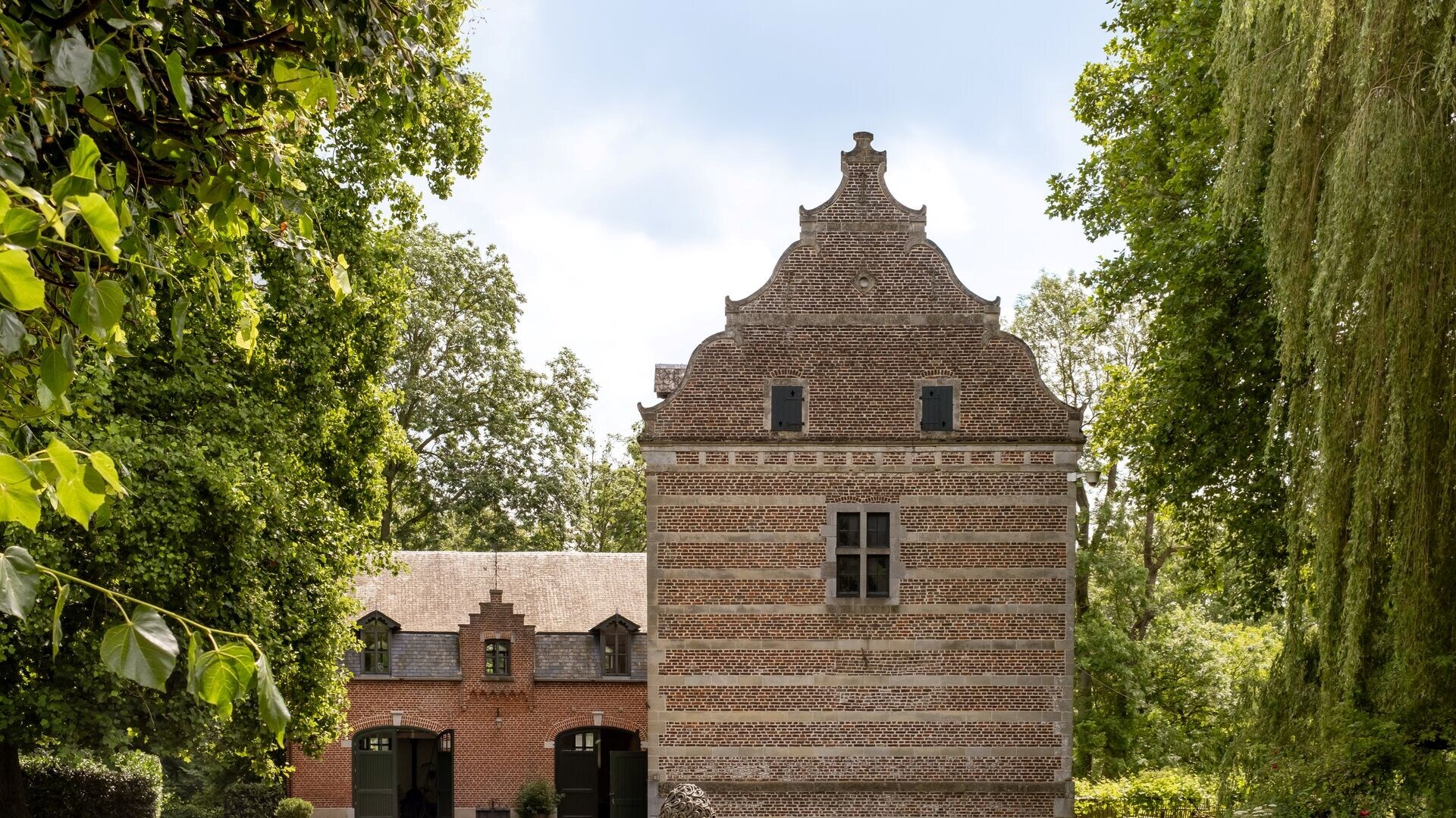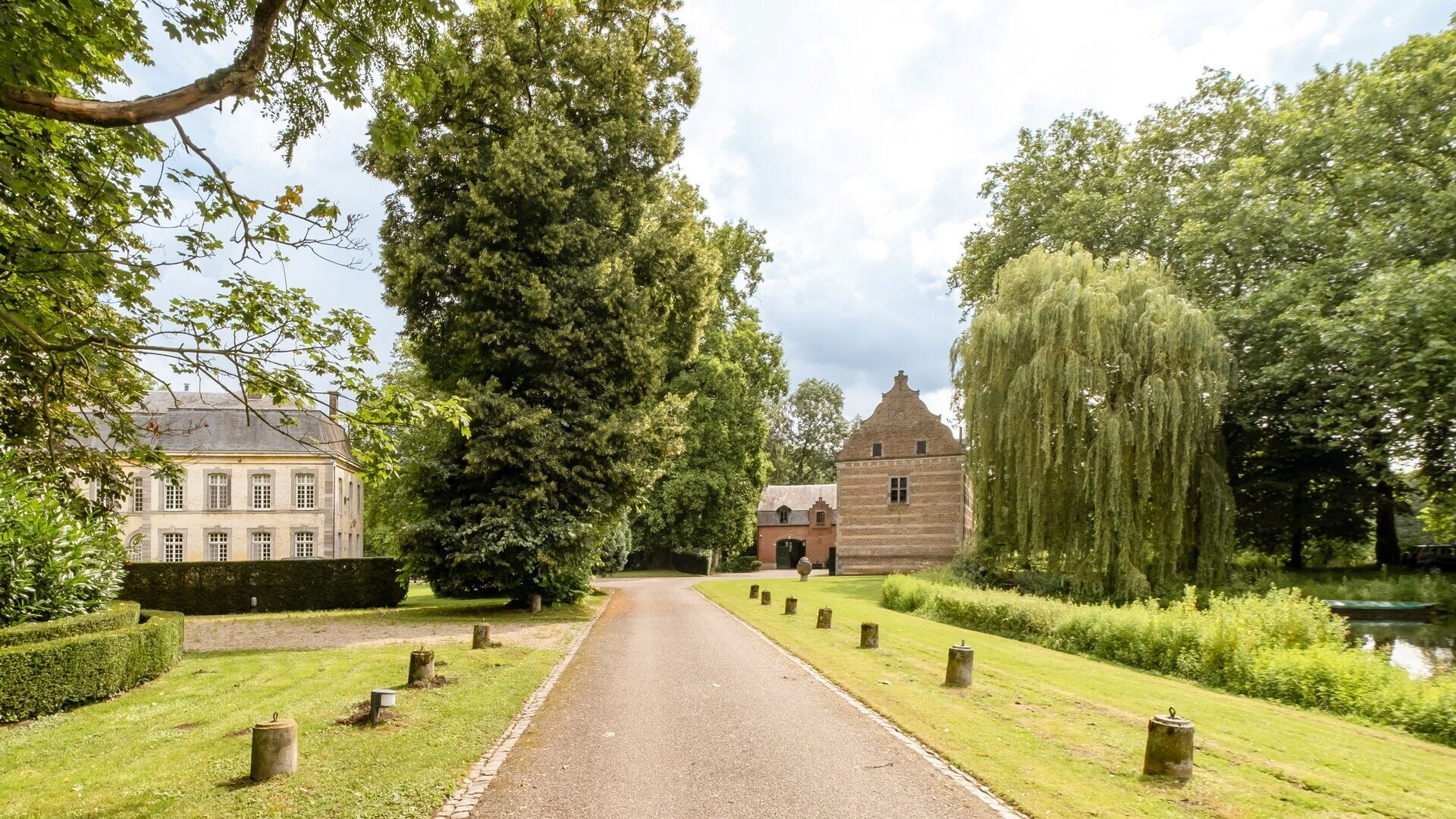 Een mooie dreef leidt ons naar het 18de eeuwse kasteel in classicistische stijl. Een kasteel met poortgebouw, koetshuis en pastoriewoning, een uitzonderlijk kasteeldomein dat het beste van beide werelden biedt. Dit monumentale landgoed strekt zich uit over een indrukwekkende oppervlakte van ruim 10 hectare – een privéparadijs waar verleden en heden samenkomen.