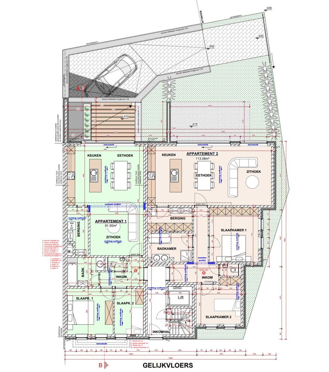 App. 2 : 113,08m² met 2 slpkms en terras