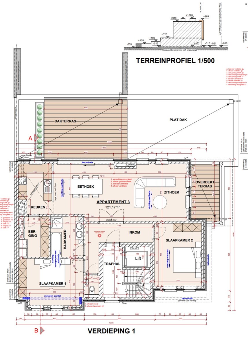 App. 3 : 121,17m² met 2 slpkms en terras + overdekt terras