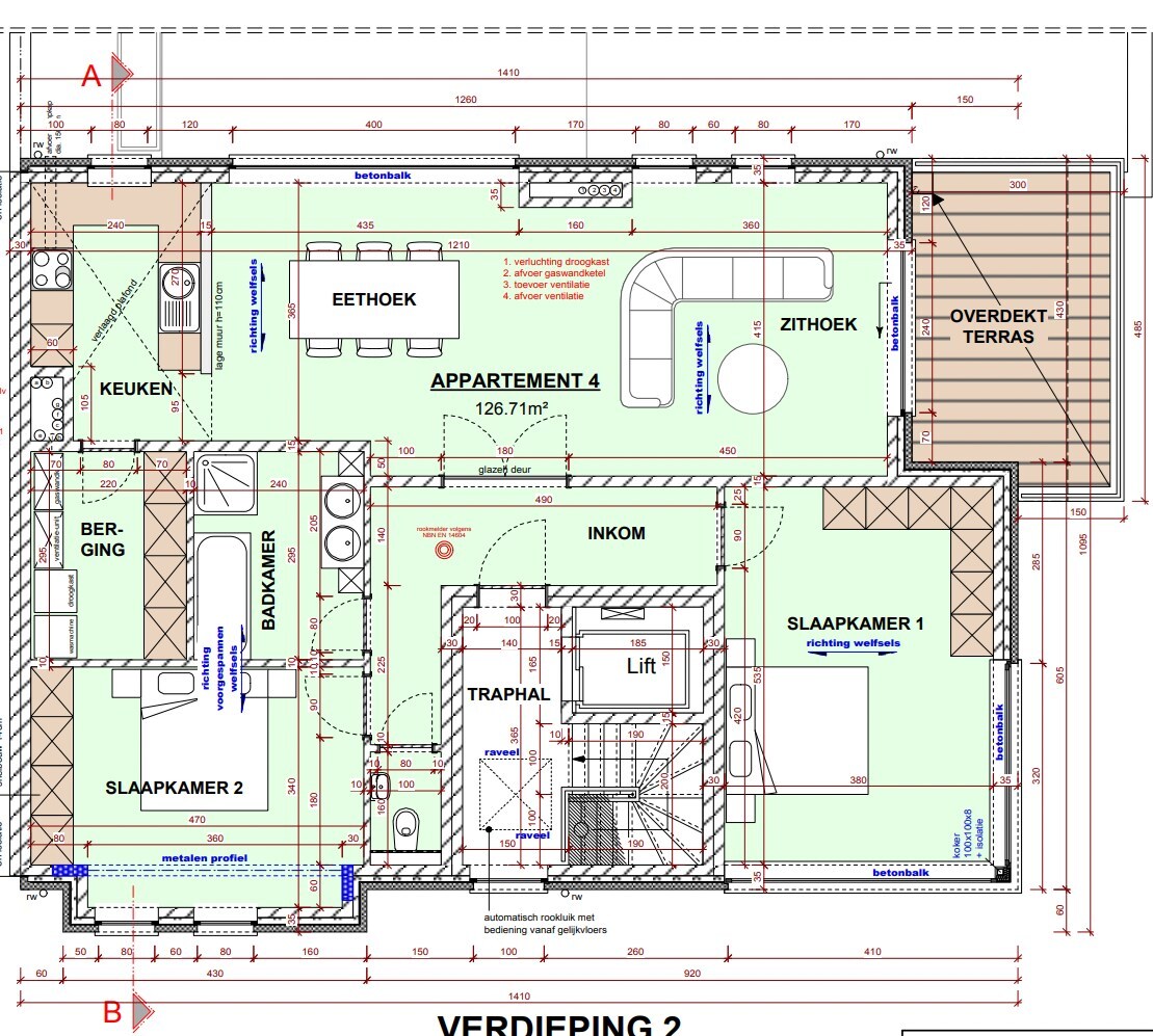 App. 4 : 126,71m² met 2 slpkms en overdekt terras