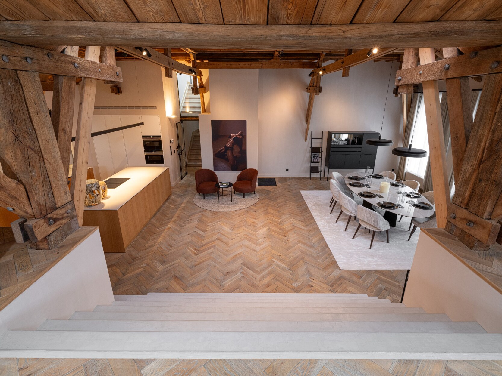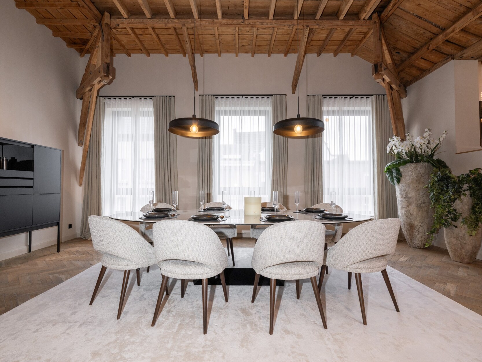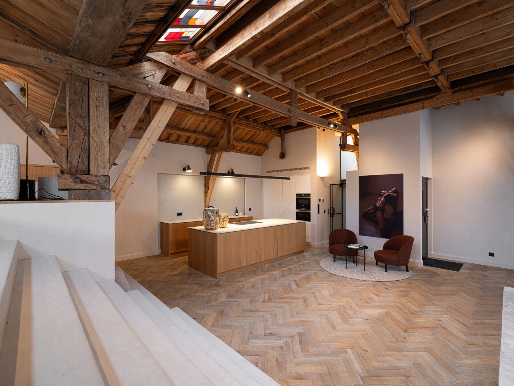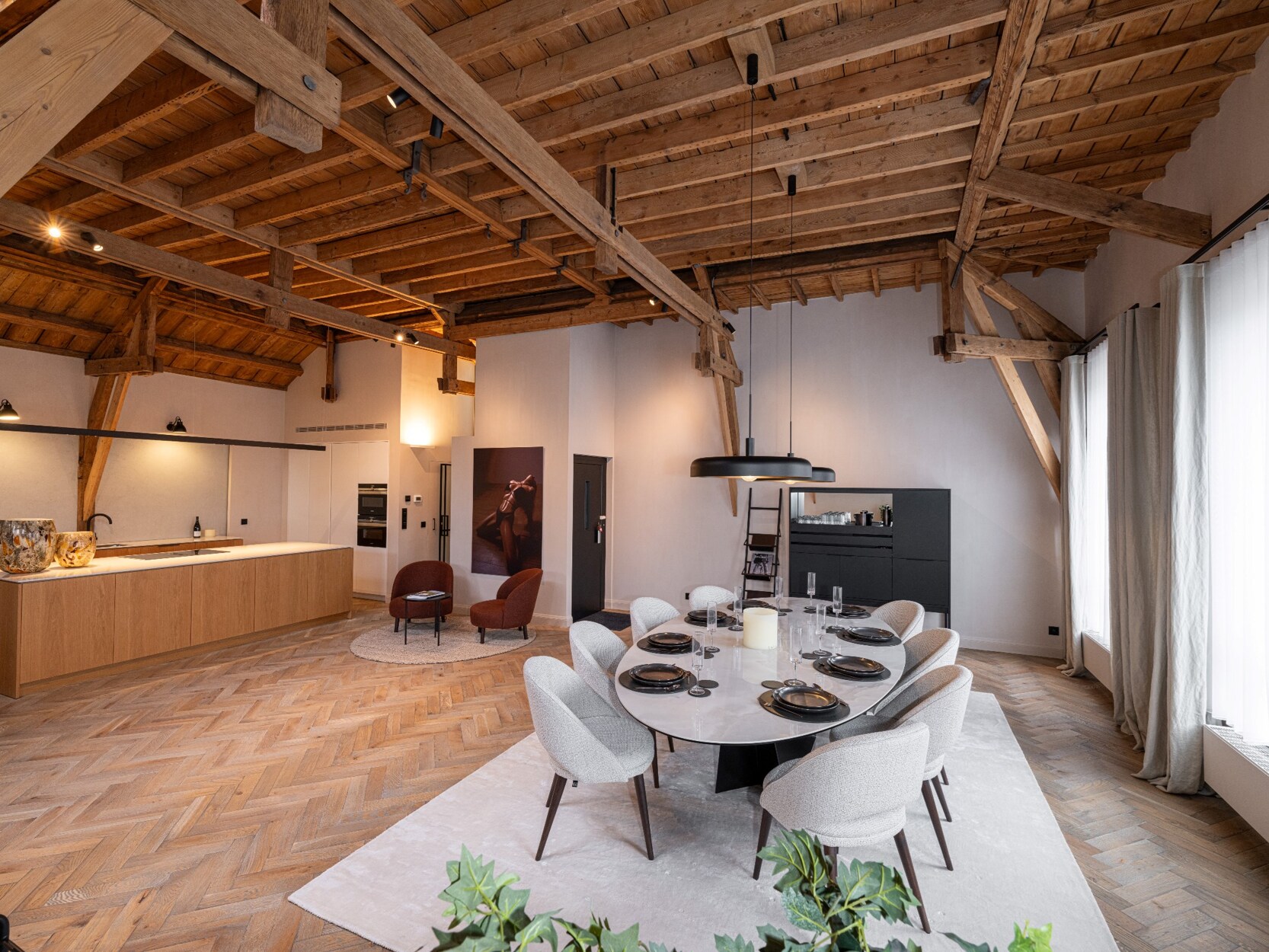 Energiezuinige loft van maar liefst 338 m² bewoonbare oppervlakte met 3 slaapkamers en evenveel badkamers maakt deel uit van een kleinschalig gebouw in neo-renaissancestijl op de hoek van de Mutsaardstraat/ Lange Noordstraat en straalt klasse en monumentaliteit uit. De loft werd in 2022 volledig vernieuwd en strekt zich uit over de tweede en derde verdieping van het gebouw Nottebohm.