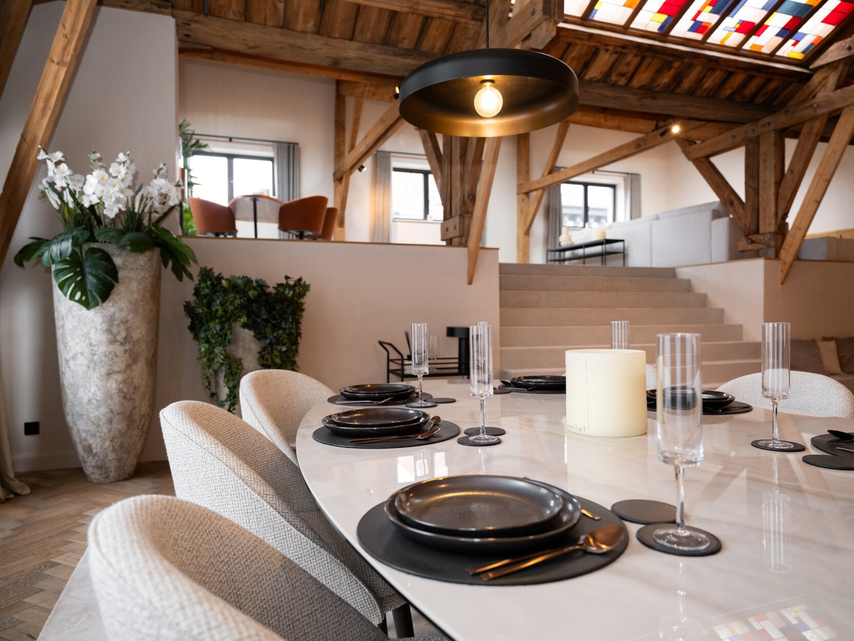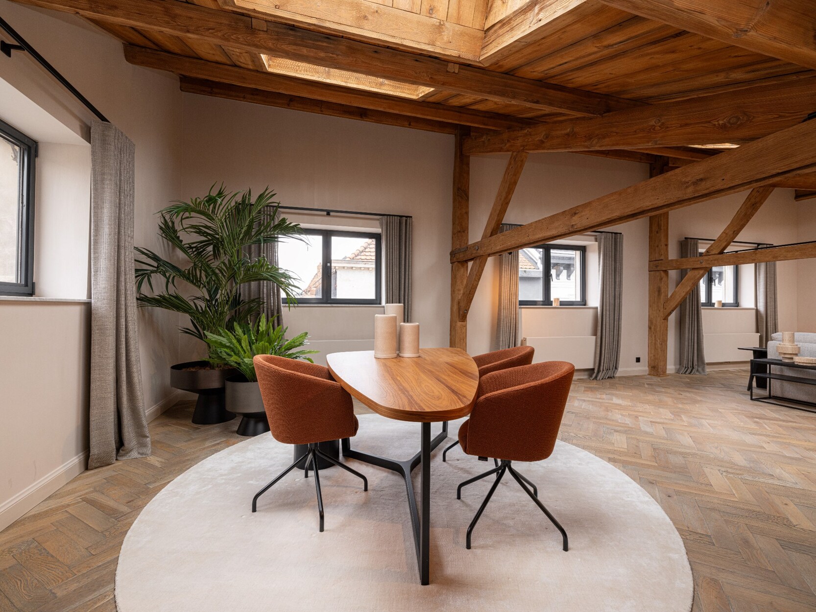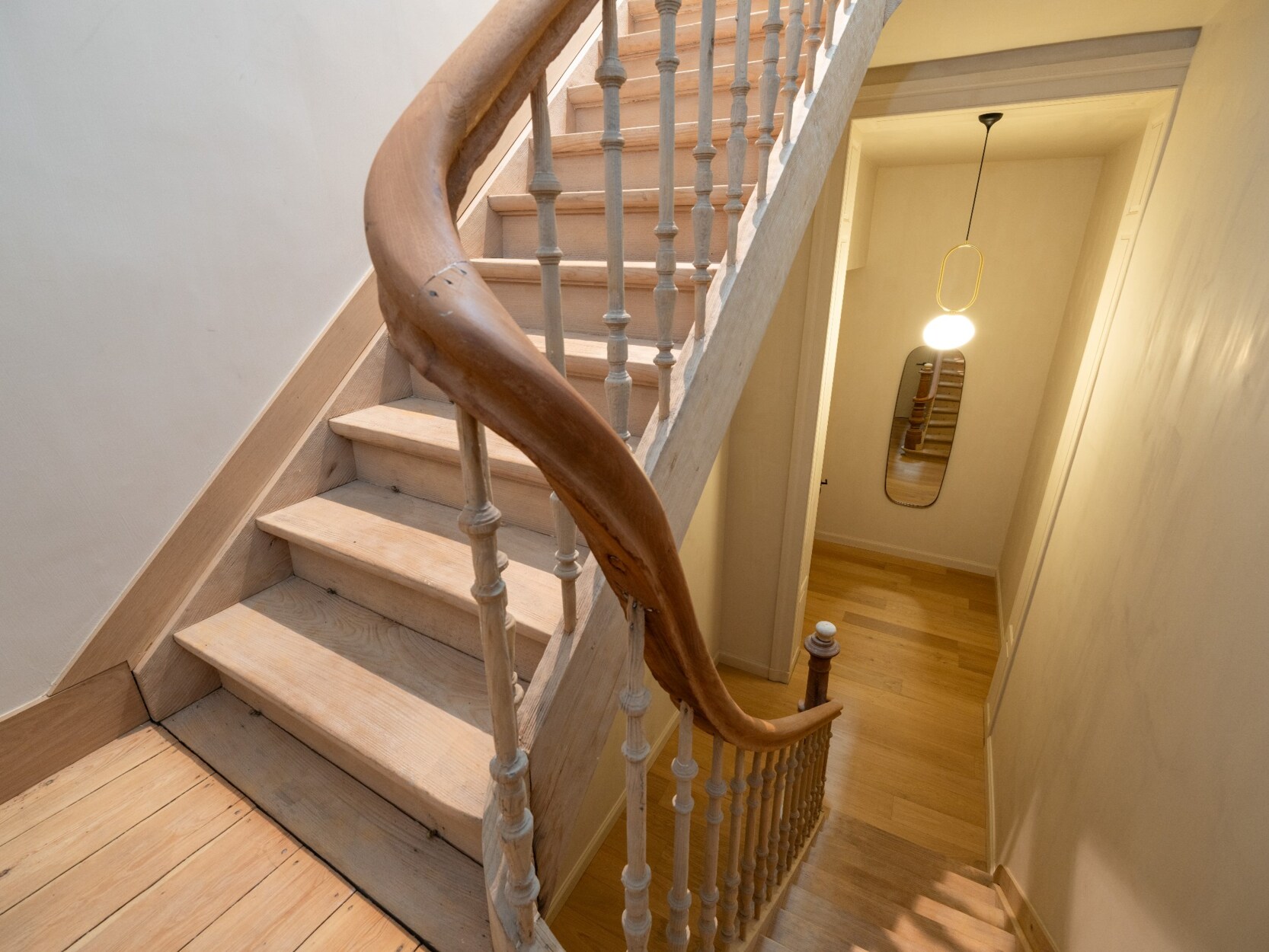 Energiezuinige loft van maar liefst 338 m² bewoonbare oppervlakte met 3 slaapkamers en evenveel badkamers maakt deel uit van een kleinschalig gebouw in neo-renaissancestijl op de hoek van de Mutsaardstraat/ Lange Noordstraat en straalt klasse en monumentaliteit uit. De loft werd in 2022 volledig vernieuwd en strekt zich uit over de tweede en derde verdieping van het gebouw Nottebohm.
