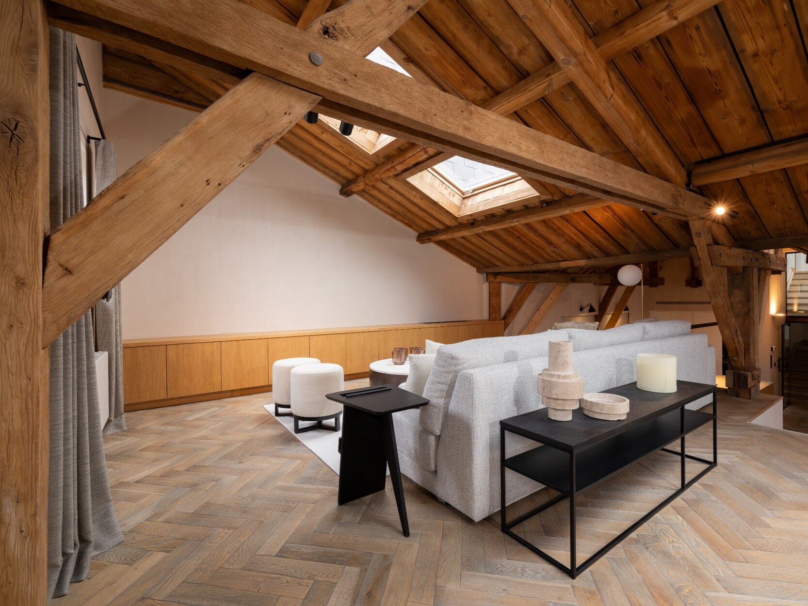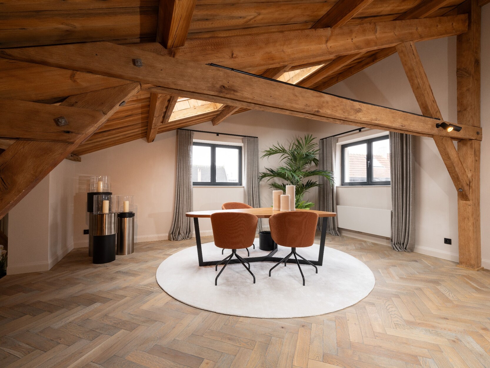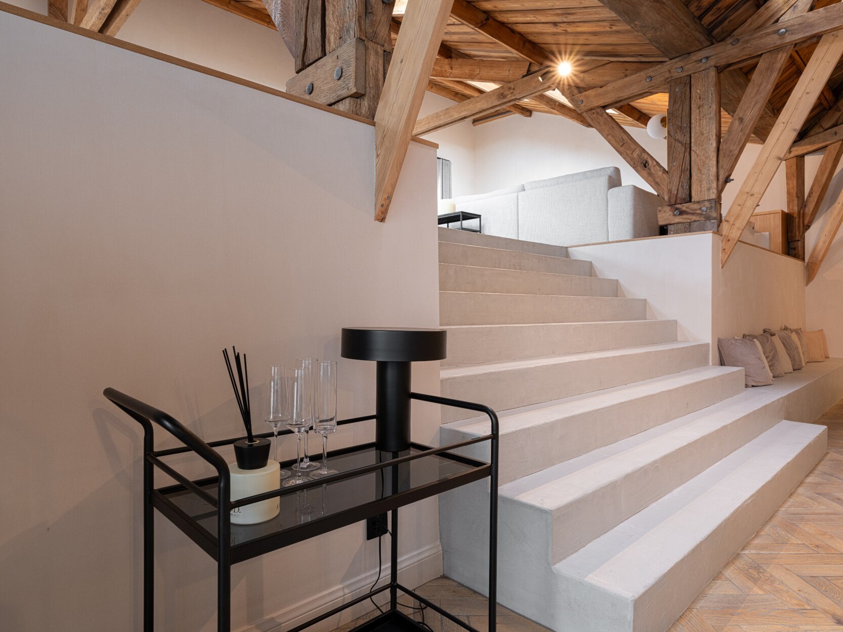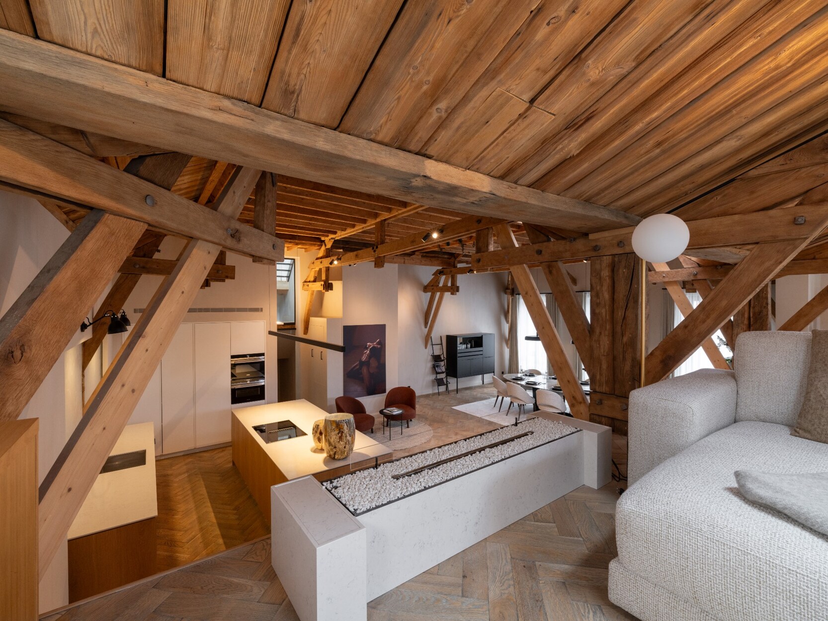 Energiezuinige loft van maar liefst 338 m² bewoonbare oppervlakte met 3 slaapkamers en evenveel badkamers maakt deel uit van een kleinschalig gebouw in neo-renaissancestijl op de hoek van de Mutsaardstraat/ Lange Noordstraat en straalt klasse en monumentaliteit uit. De loft werd in 2022 volledig vernieuwd en strekt zich uit over de tweede en derde verdieping van het gebouw Nottebohm.
