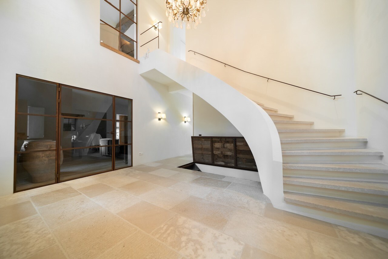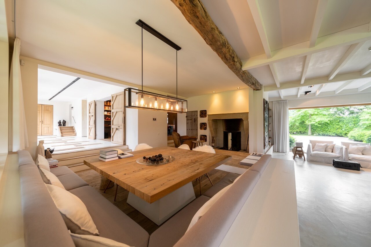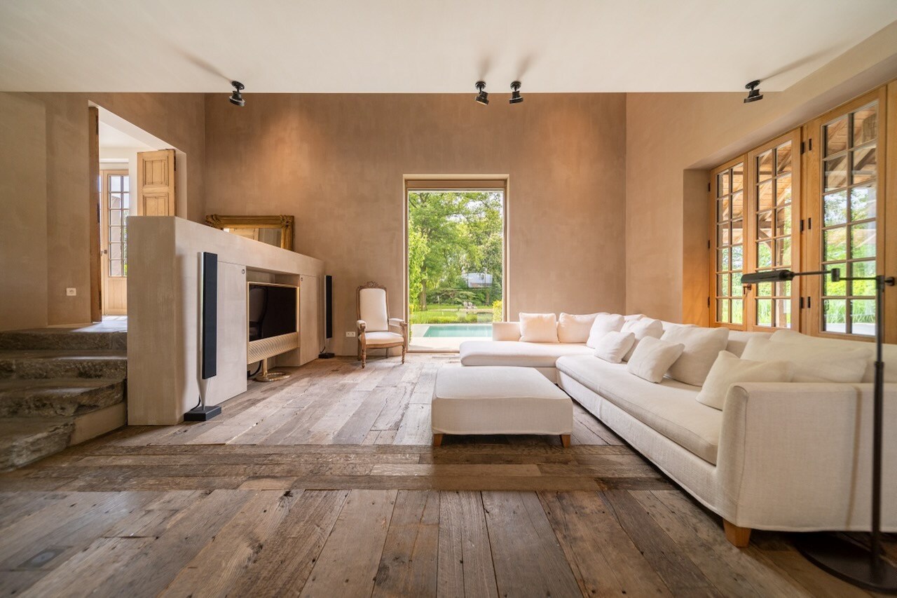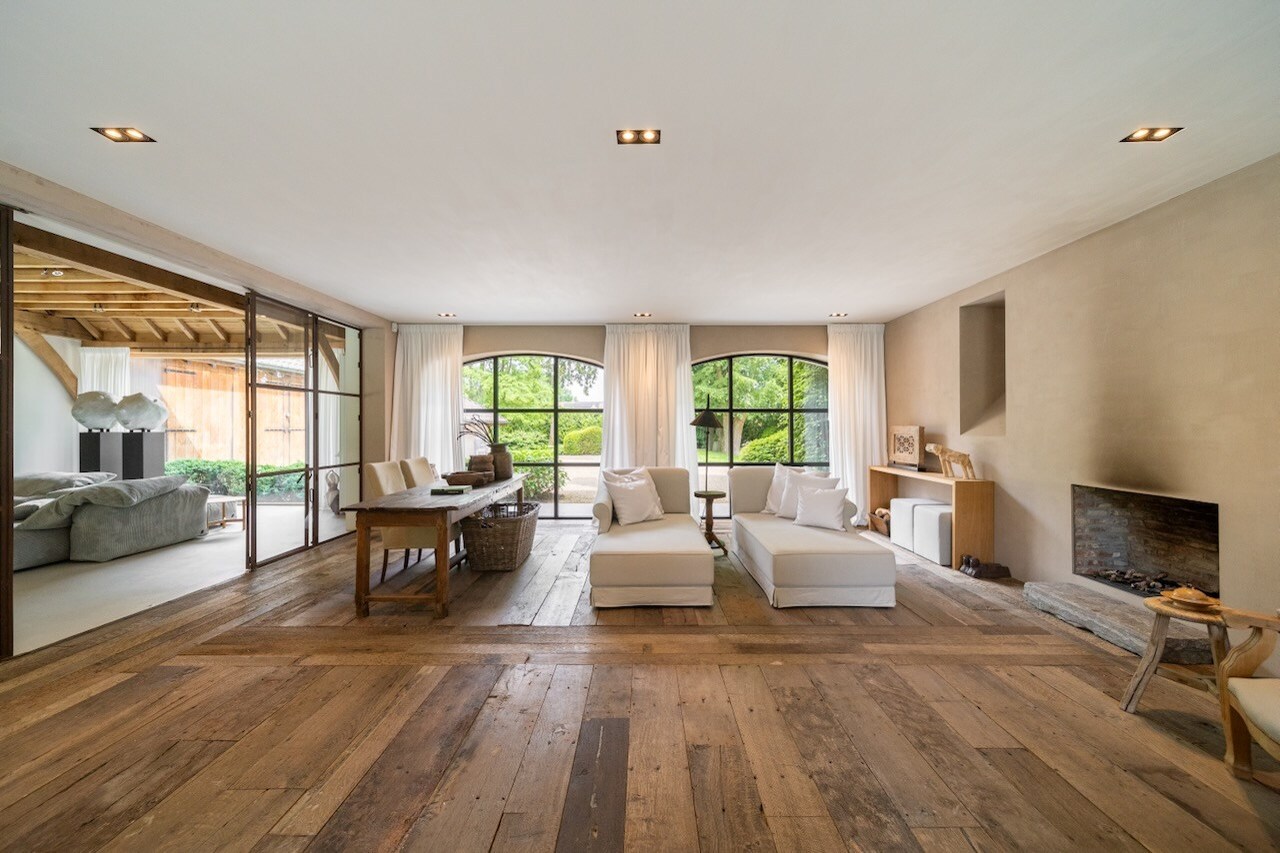 De prachtige voortuin leidt naar de hoofdentree van de villa, waar de hal met vide zich uitnodigend voor u uitstrekt. Hier bevindt zich de toegang tot de wijnkelder. De hal is voorzien van Franse witte steen, ook de gewelfde traptreden zijn hiermee bekleed. De sfeervolle woonkamer, voorzien van oude eiken parket biedt een schitterend uitzicht op het terras en de tuin, waarbij de gashaard bijdraagt aan een extra gezellige sfeer. De woning biedt niet alleen een perfecte ruimte om te ontspannen, maar is ook uitstekend geschikt voor thuiswerken. Via de woonkamer heeft u toegang tot de lounge/kantoorruimte. Voor de kinderen is er op de eerste verdieping een speelhoek/yogaruimte. Zowel de woonkamer als de lounge hebben directe toegang tot het terras.