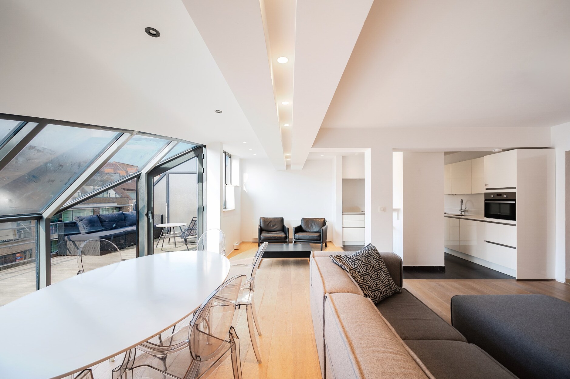 Instapklare duplex penthouse, ideaal gelegen met een zonnig zuidwestgericht terras en parking.