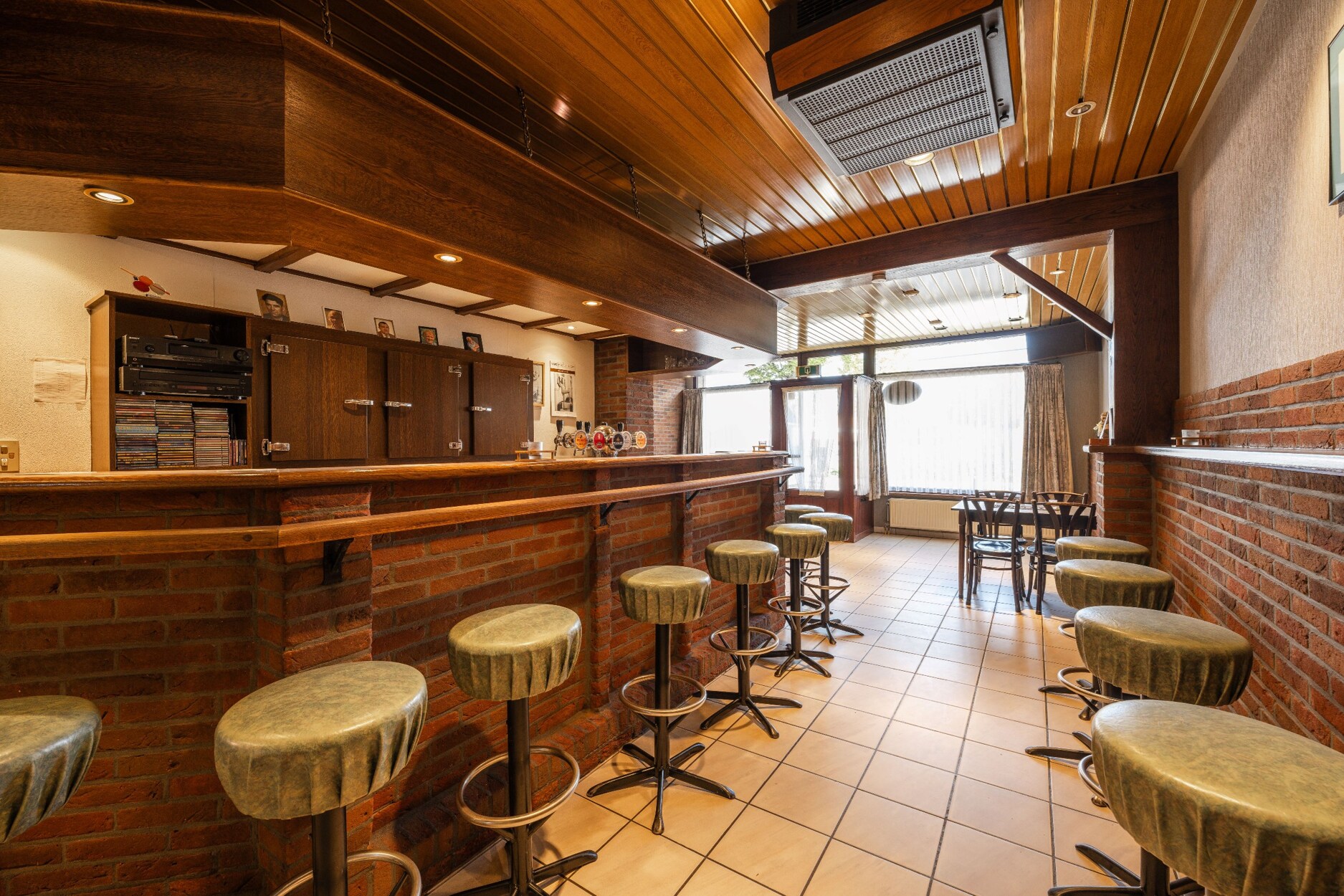 Op het gelijkvloers het café gelegen met hal aan de zijkant die toegang verleent tot de verdieping. Op de verdieping zijn er twee slaapkamers en een extra kamer te vinden. De zolderverdieping biedt nog een extra grote ruimte welke ingericht kan worden.