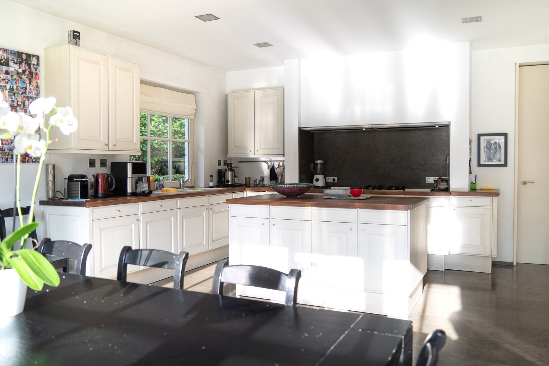 Vanaf de ingang zet een lichtrijke hal met elegante lijnen de toon. De benedenverdieping bestaat uit een dubbele ontvangstruimte, ideaal voor ontvangsten, compleet met een bar, evenals een volledig uitgeruste keuken met een gezellige eethoek en directe toegang tot de tuin. Er is ook een dienst-keuken met wasruimte, een aparte eetkamer, een vergaderruimte en een groot kantoor, die naar behoefte kunnen worden omgebouwd tot slaapkamers.