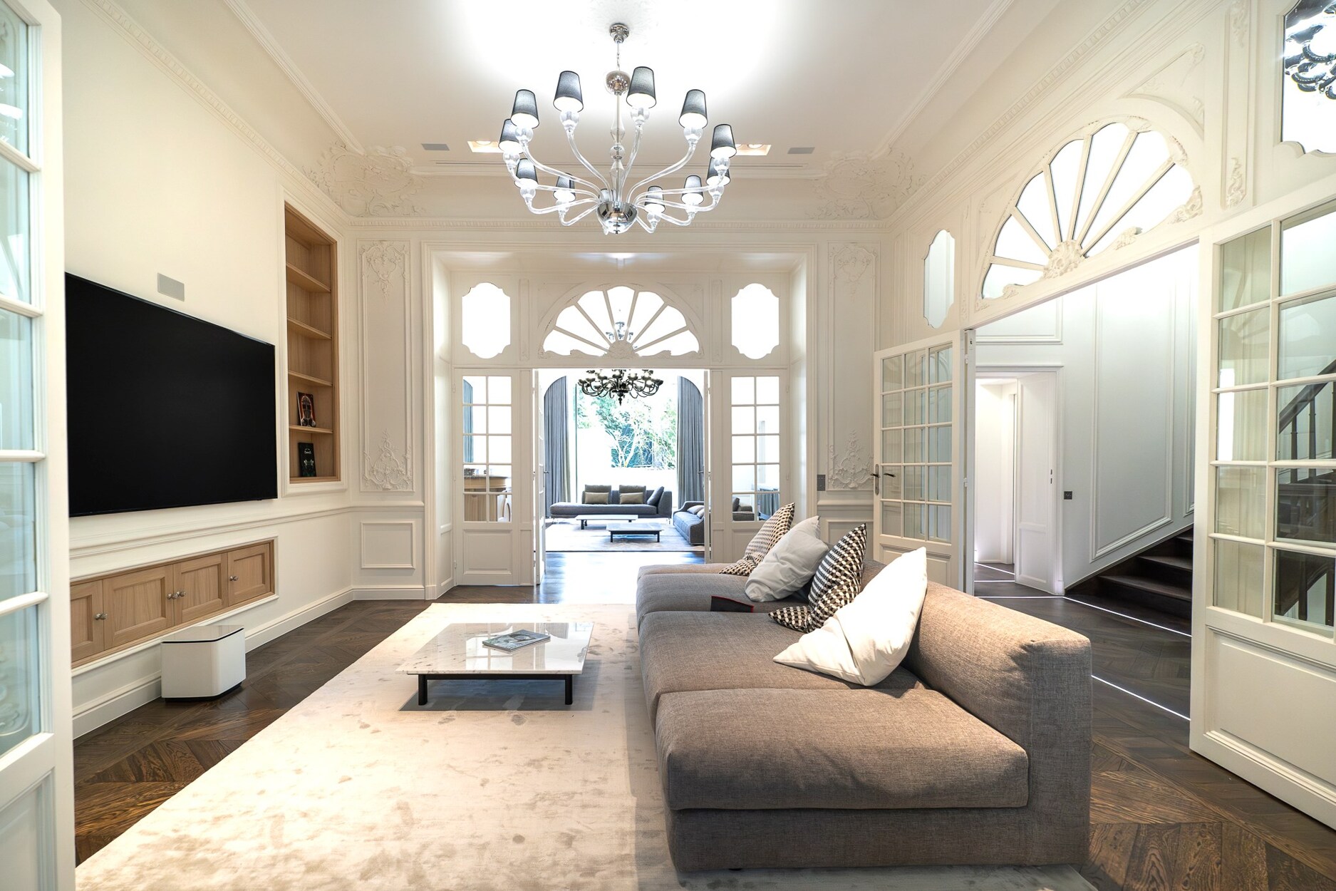 Gebouwd door architect Ernest Delune in 1910, biedt dit herenhuis in Beaux-Arts stijl 1000 m² woonoppervlakte achter zijn perfect geïsoleerde 10 meter brede witstenen gevel. Ideaal gelegen nabij de Vijvers van Elsene, telt het 6 slaapkamers, elk met een badkamer en inloopkast.