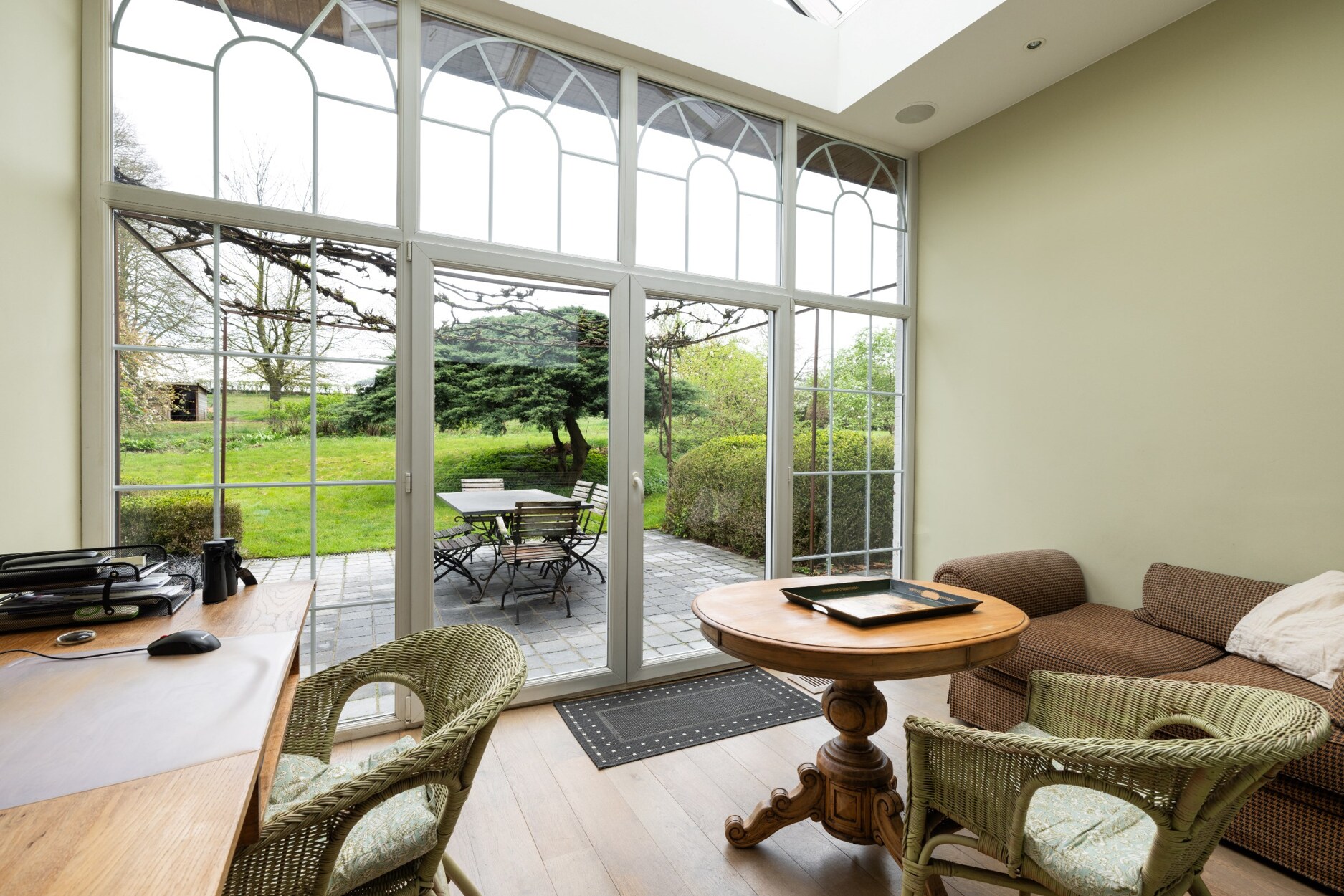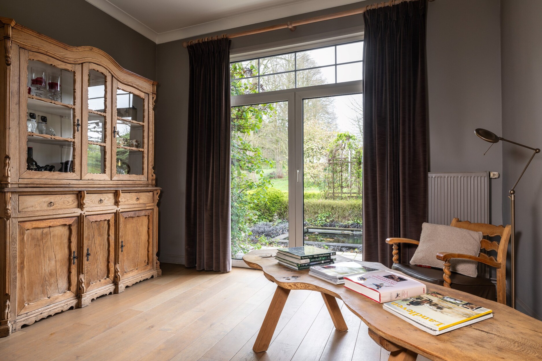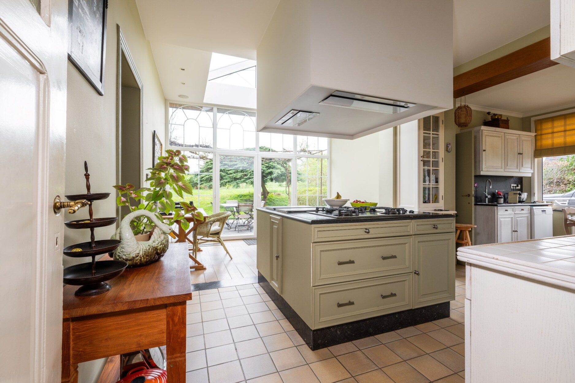 Deze stijlvolle ingerichte woning is omgeven door een volgroeide tuin en bomen.
