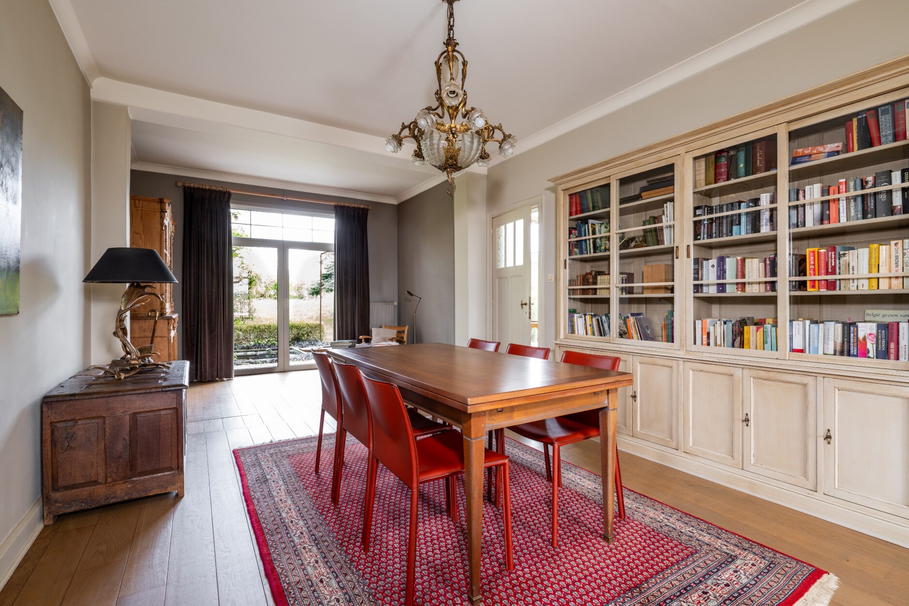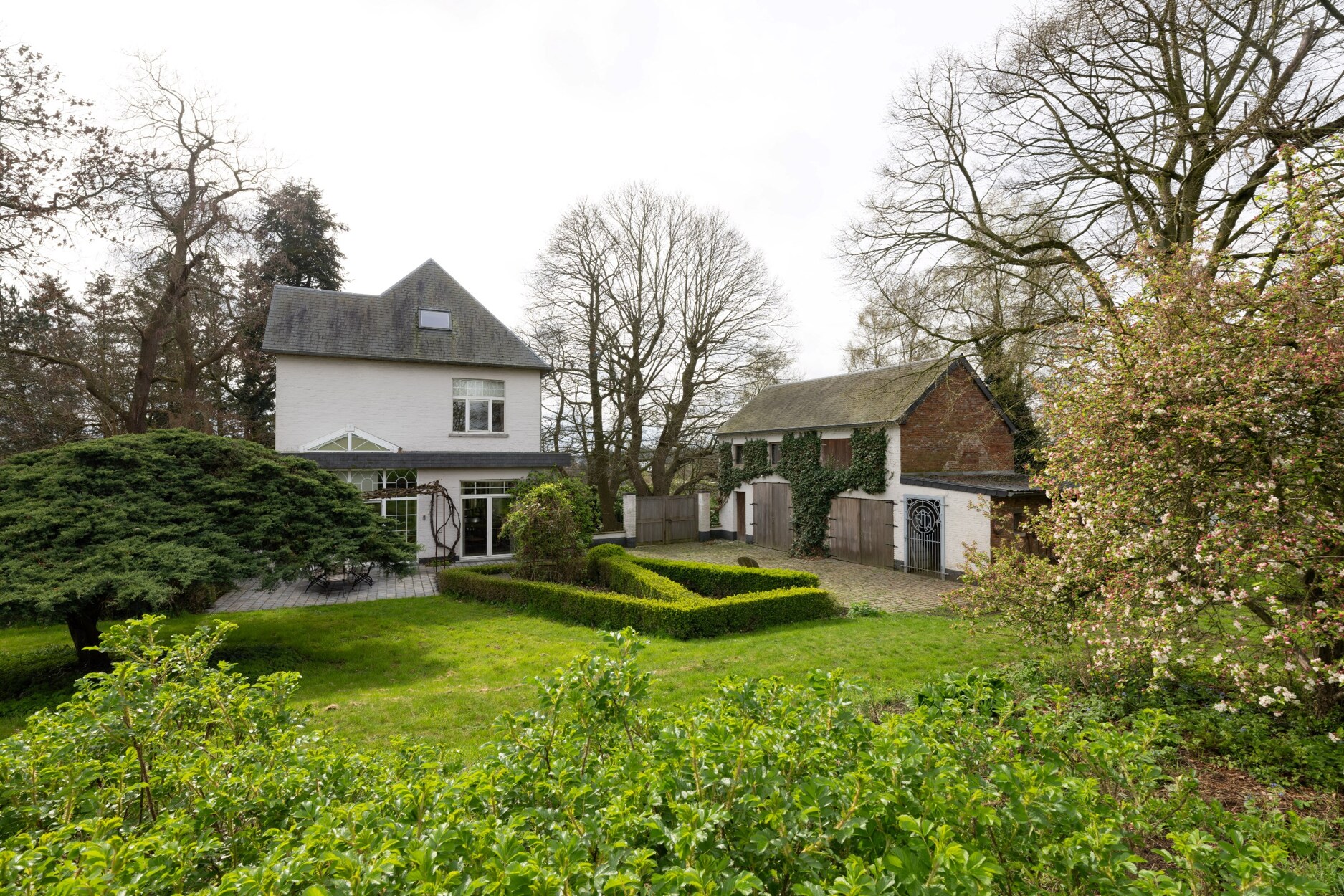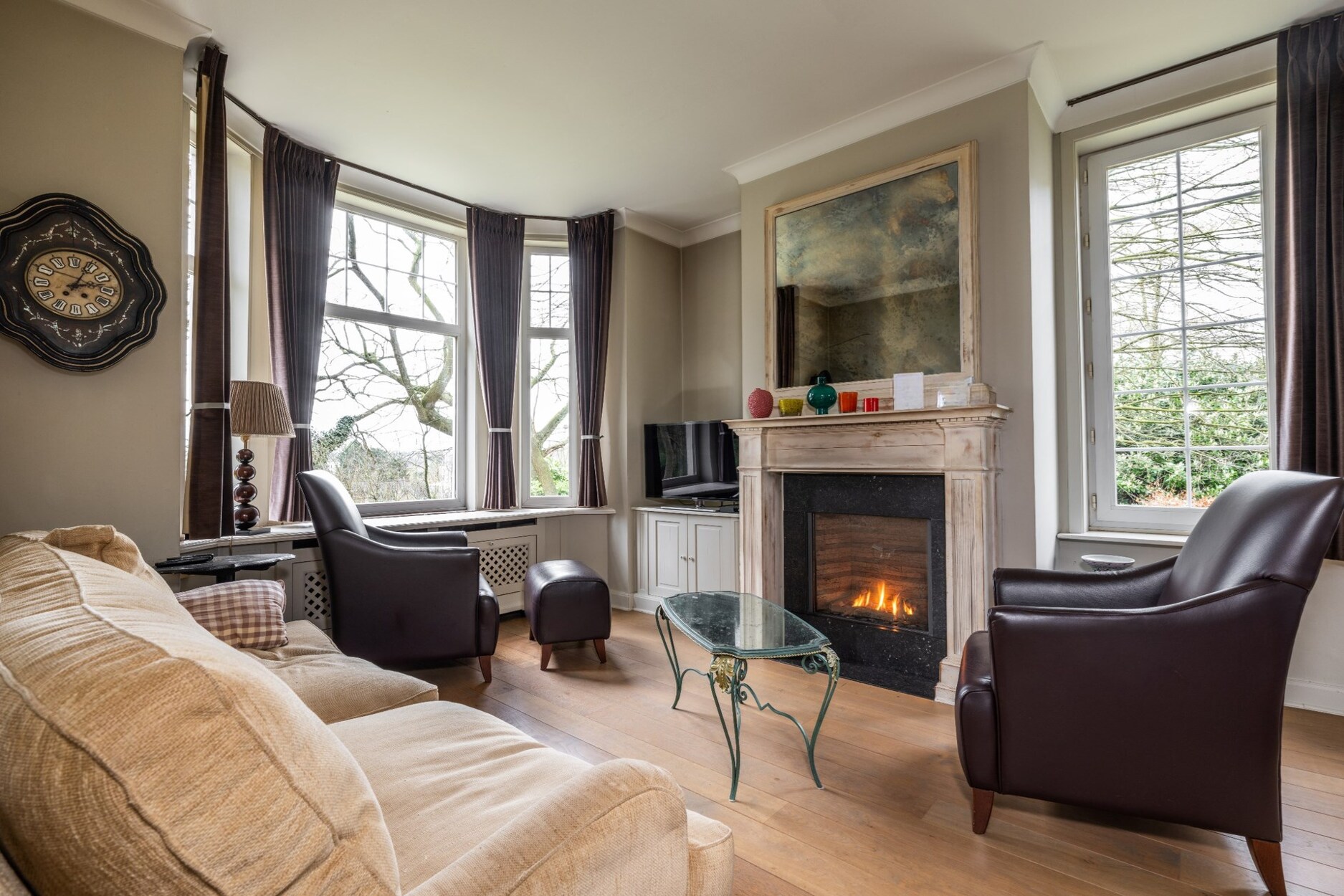 Deze stijlvolle ingerichte woning is omgeven door een volgroeide tuin en bomen.