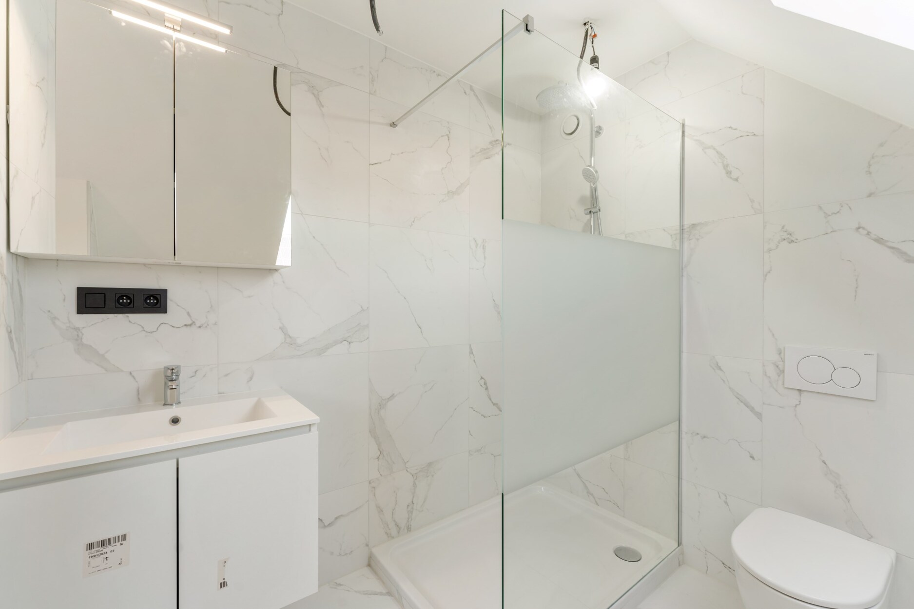 Via de vaste trap bereik je de eerste verdieping, waar drie ruime slaapkamers en een badkamer met ligbad, dubbele wastafel en apart toilet te vinden zijn. De master slaapkamer geniet van een eigen badkamer met inloopdouche, wastafel en toilet.