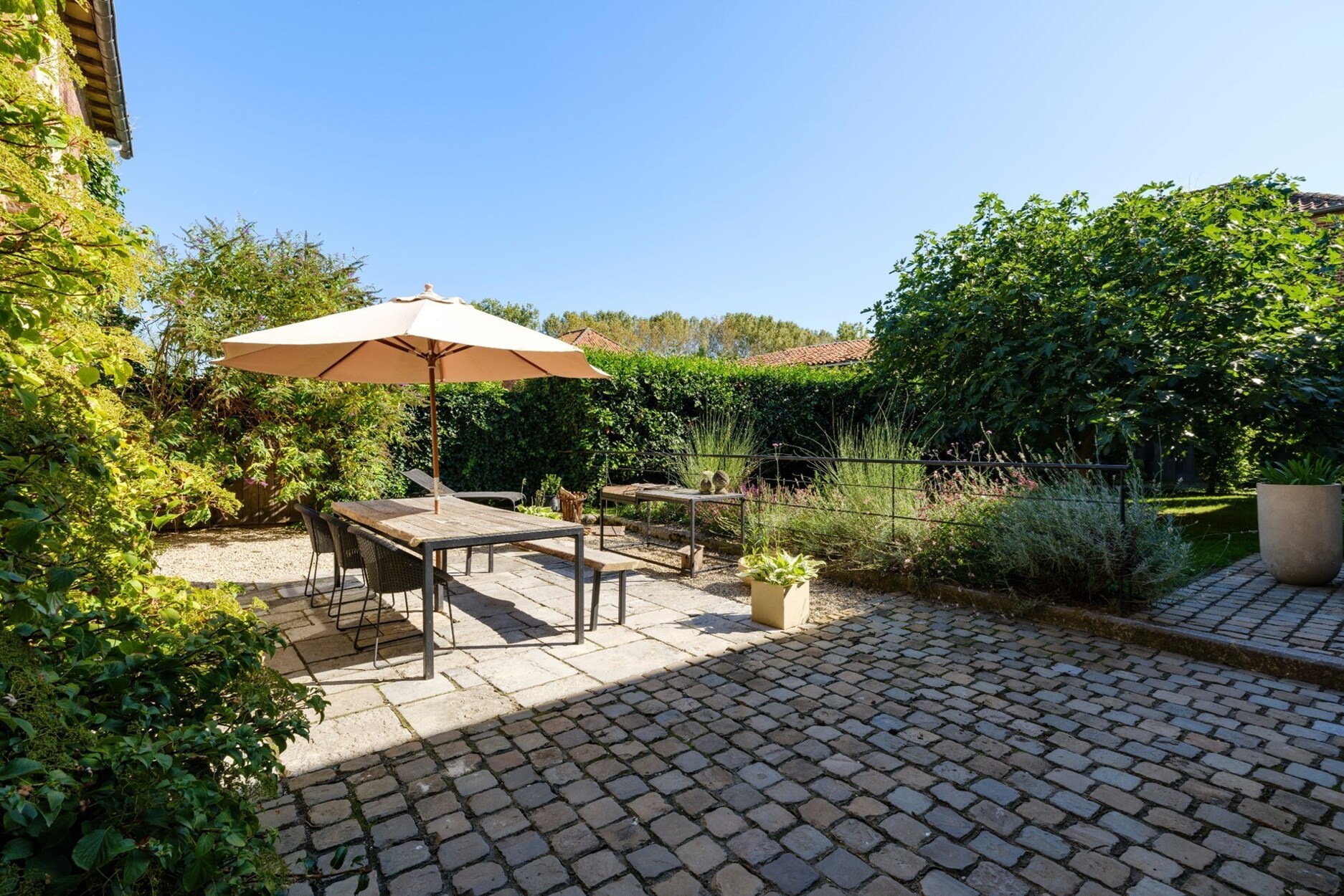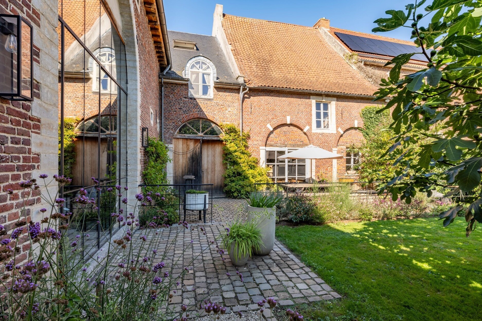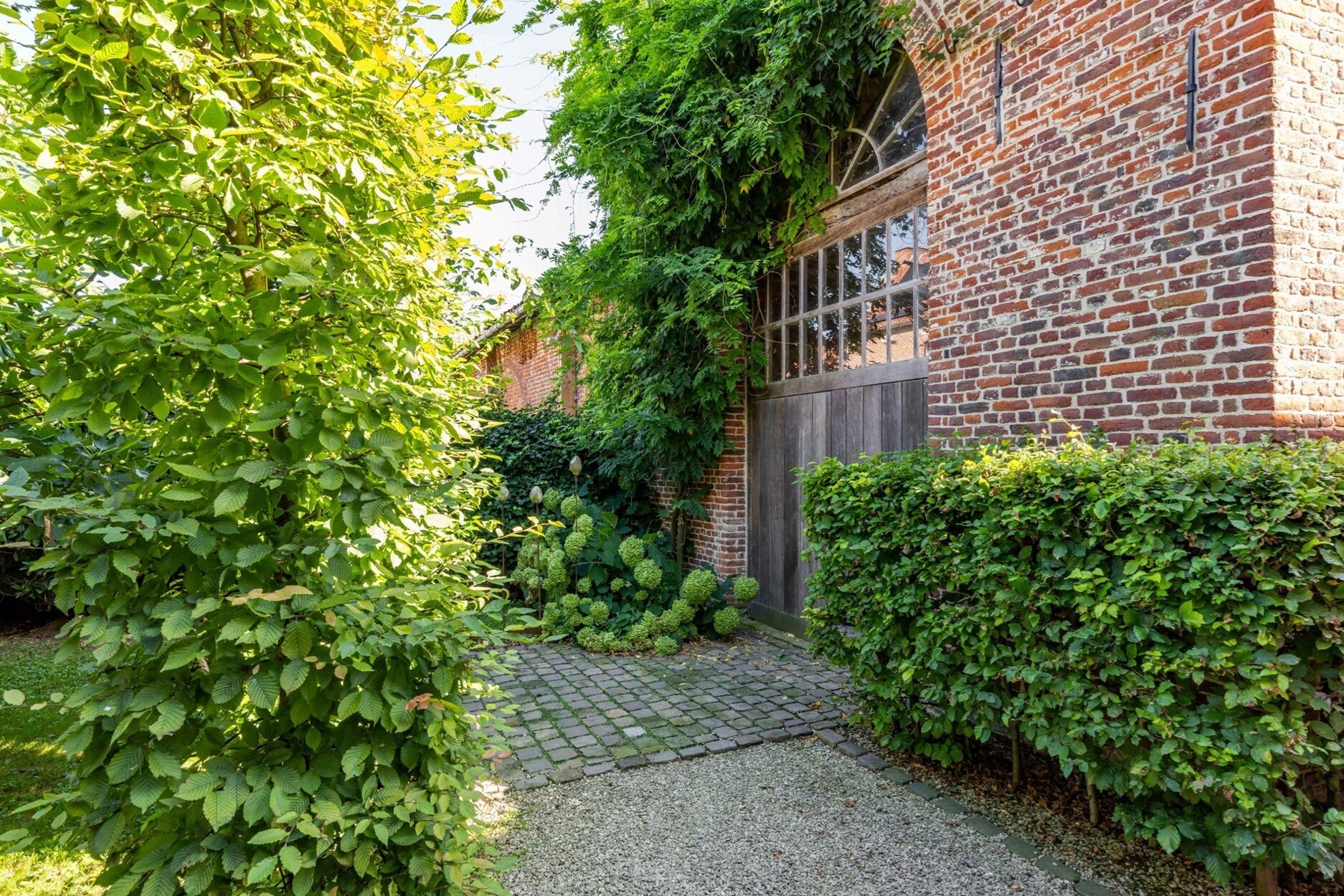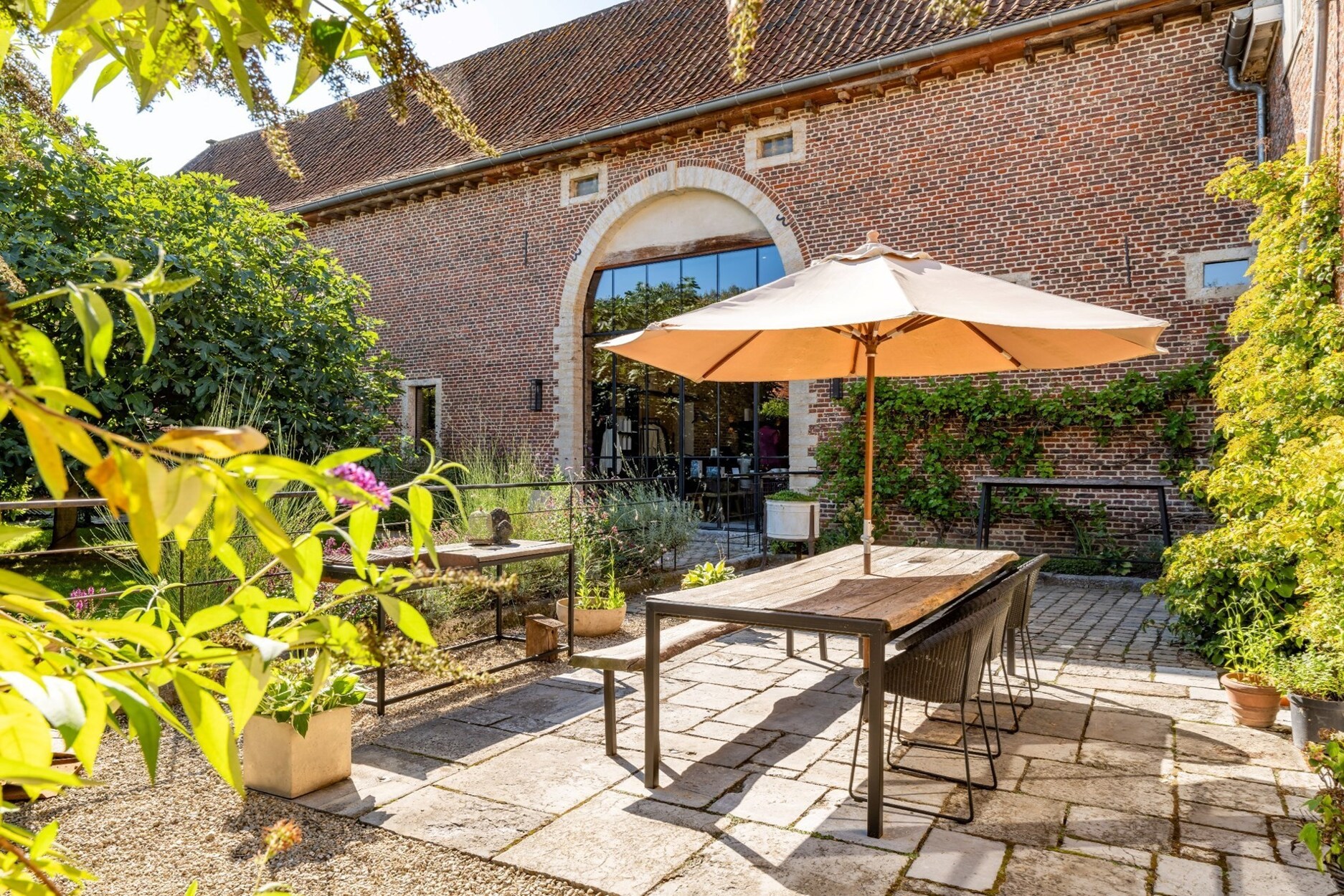 Een lange oprijlaan brengt ons naar de parking en ingangspoort van deze schitterende en multi-functionele gerenoveerde schuur. Naast de schuur is er een doorgang naar de binnentuin. Deze is de verbinding tussen de Tiendeschuur en de "naastgelegen" nog te renoveren woning van 240m2. Naast de Tiendeschuur is er nog een te renoveren deel van 84m2 dat zoals het te renoveren pand perfect dienst kan doen als gastenverblijf. Dit is een pand waar je onmiddellijk een coup de foudre krijgt. Ideaal voor de ondernemer op zoek naar een karakterpand met ontelbare mogelijkheden en de juiste uitstraling.