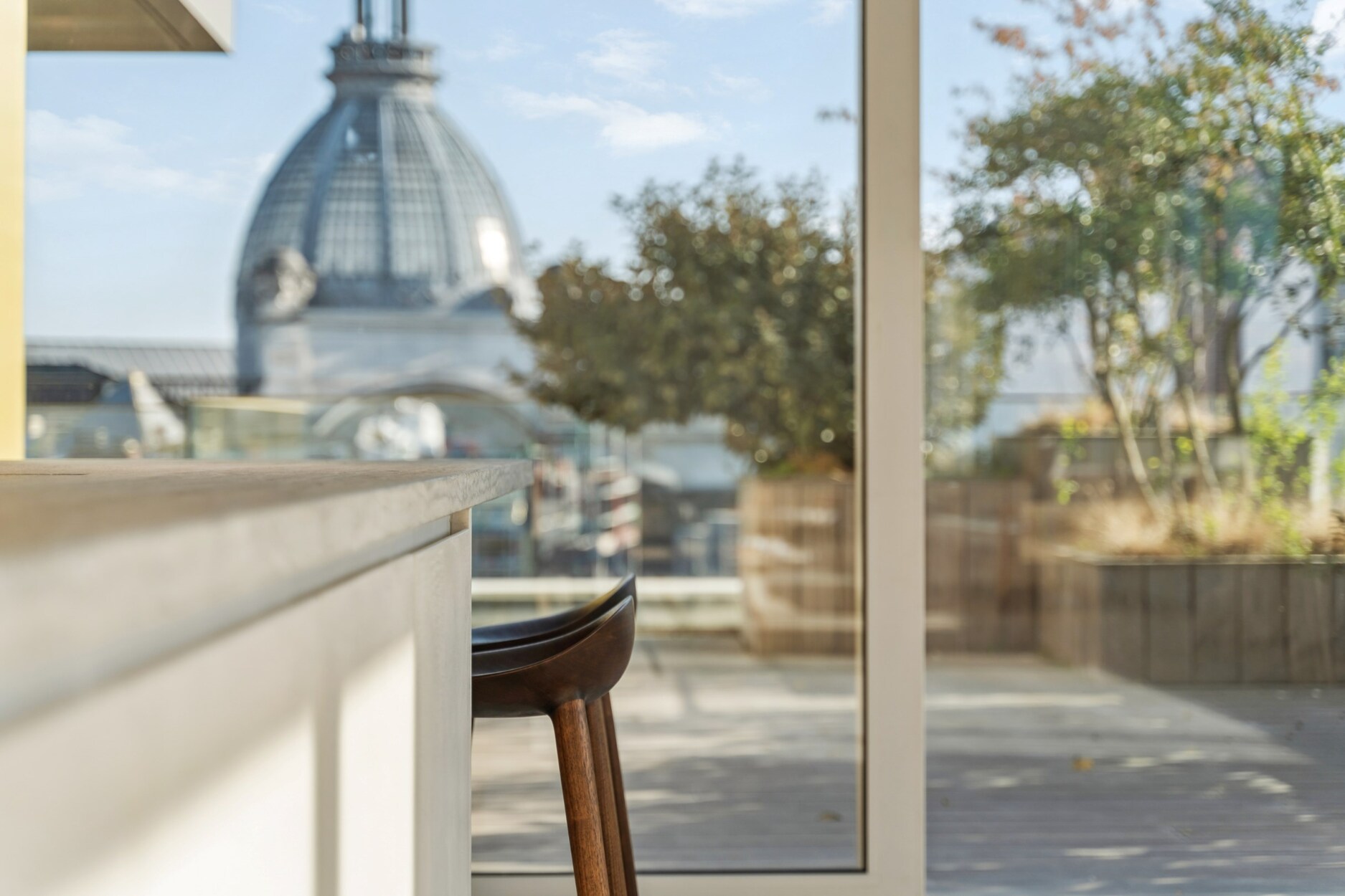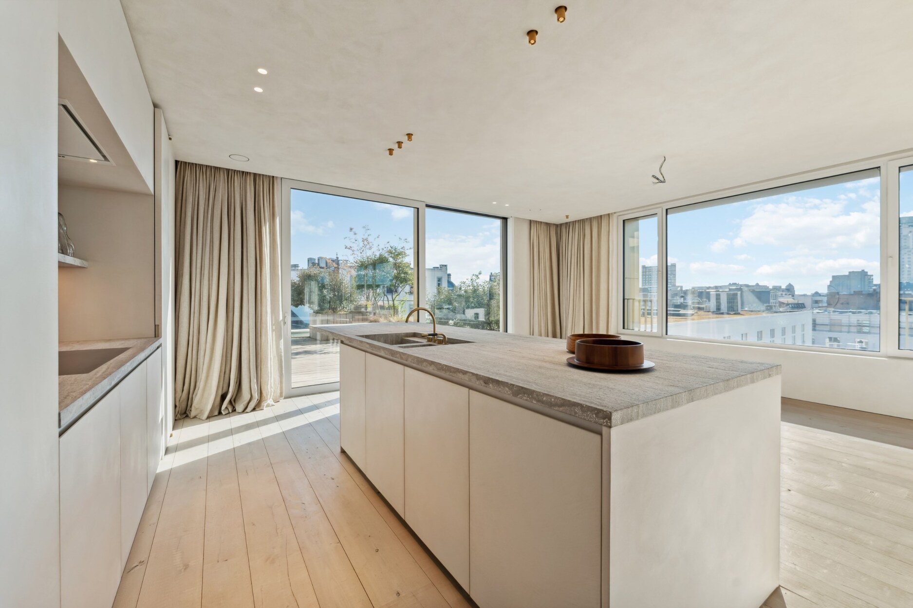 Dit exclusieve penthouse onder architectuur afgewerkt, met een bewoonbare oppervlakte van ca. 242m², biedt een ongeëvenaarde woonervaring in het bruisende hart van Antwerpen. Gelegen op de hoogste verdieping van de residentie Cour d'Honneur, in het monumentale pand van de voormalige school de Dams, biedt dit penthouse een combinatie van luxe en comfort. Met een prachtig uitzicht op de iconische koepel van de Stadsfeestzaal, de Kathedraal en de Boerentoren, is dit penthouse voor wie op zoek is naar een oase van rust in de stad.