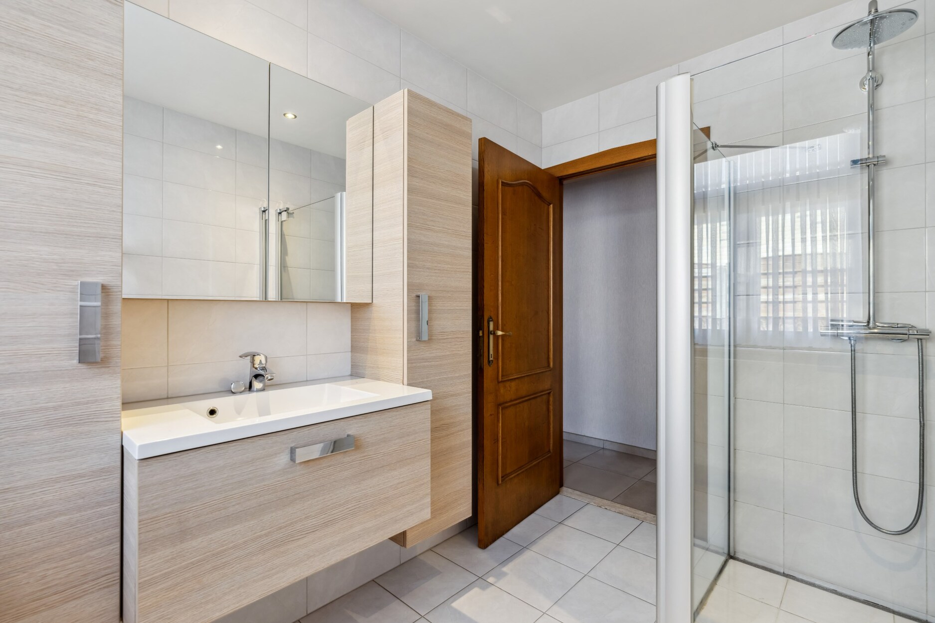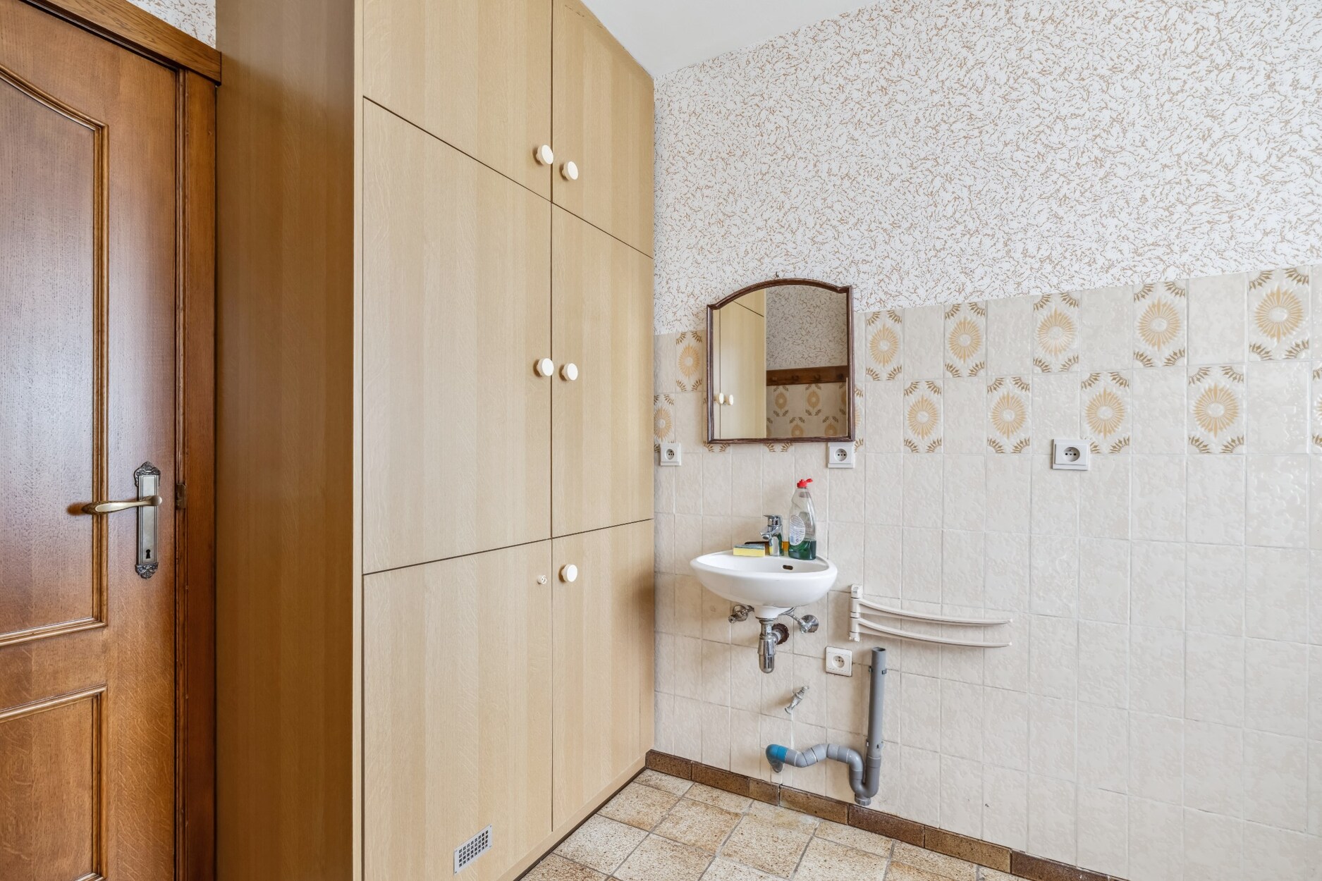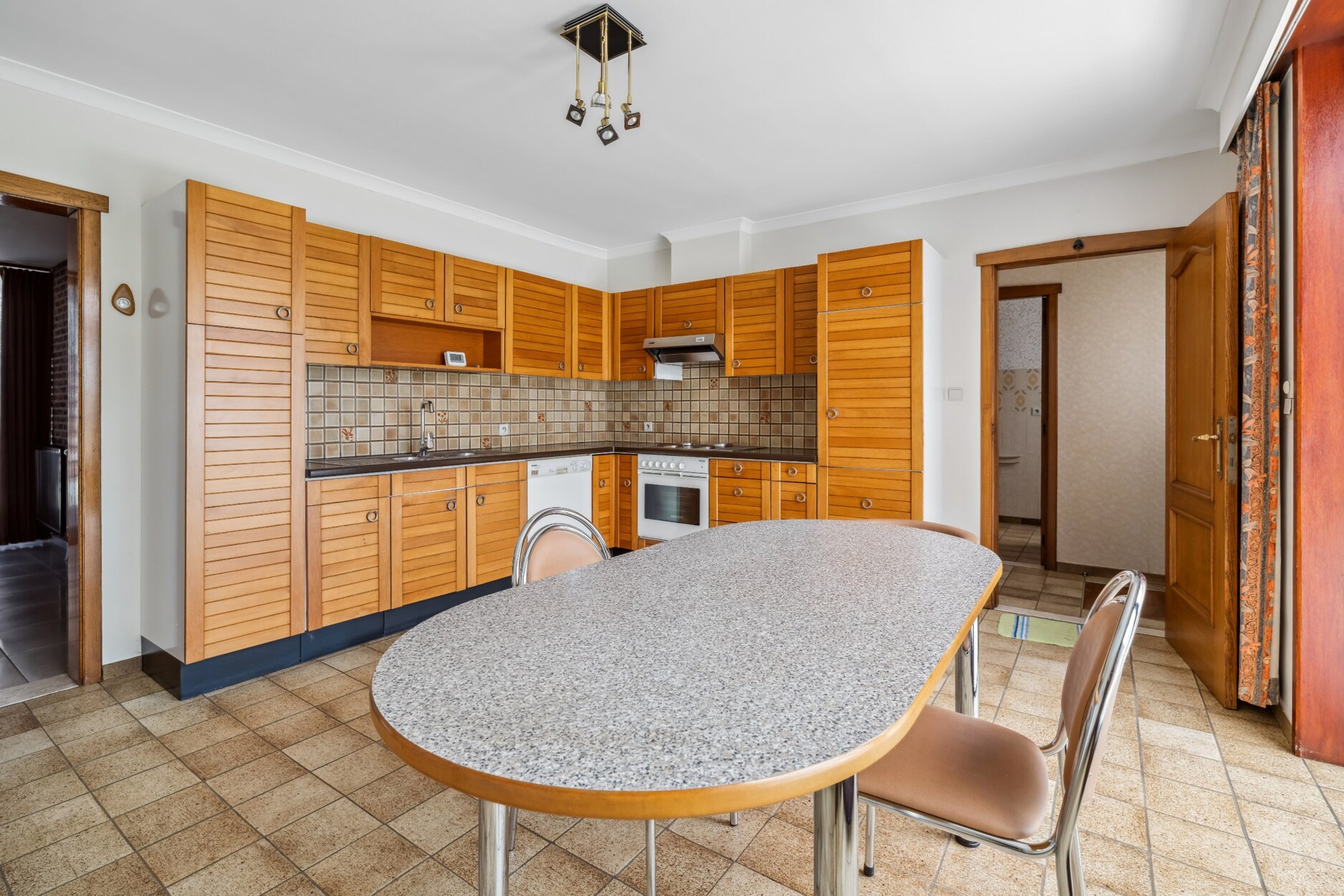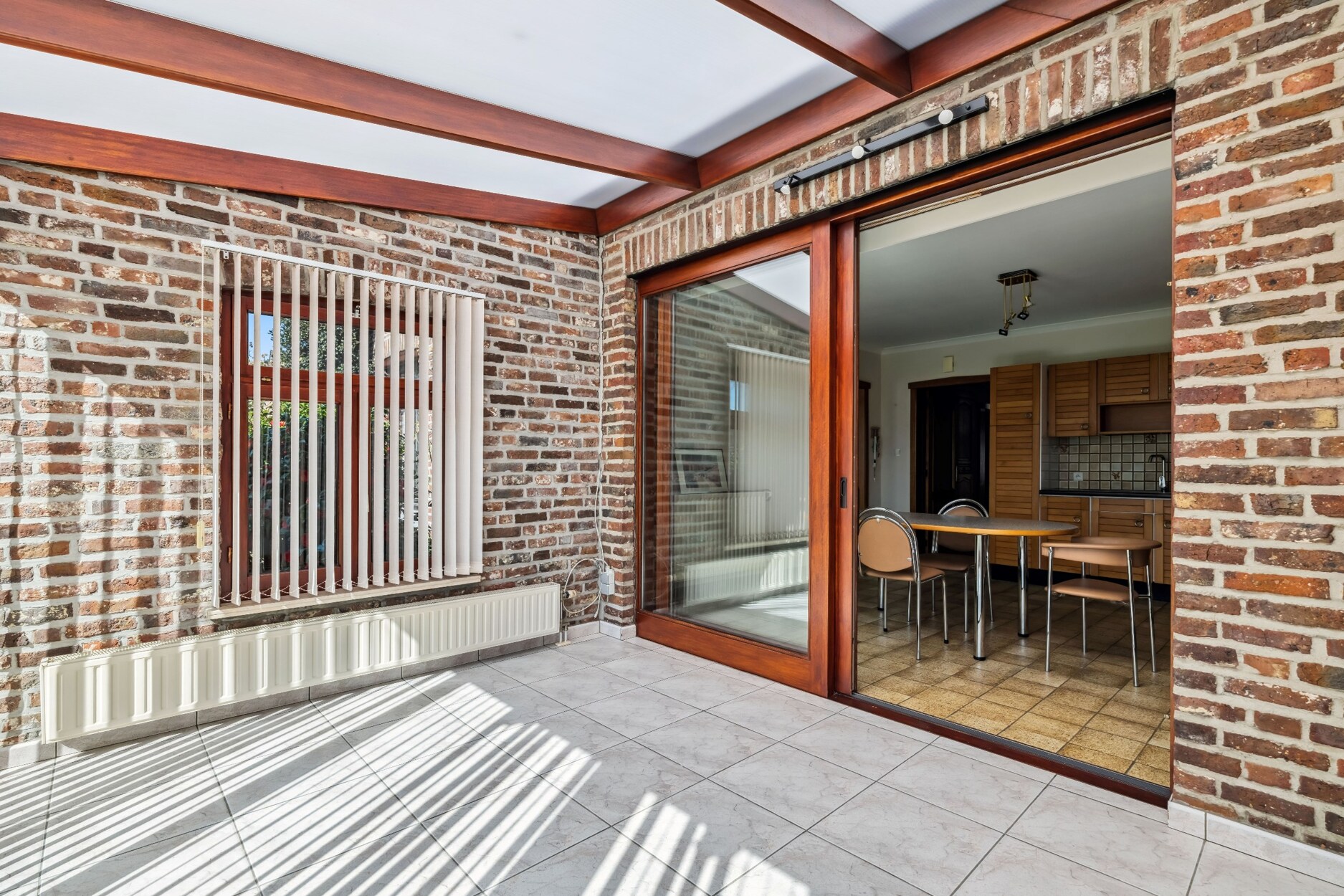 De inkomhal geeft toegang tot enerzijds de keuken, nachthal en de woonkamer. De ruime woonkamer met gezellige openhaard is voorzien van zonnescreens. De keuken is voorzien van alle toestellen en geeft uit op de lichtrijke veranda. Zowel de living als de keuken zijn uitgerust meteen tegelvloer. De keuken heeft veel opbergruimte en de ruimte om indien gewenst te werken met een multifunctioneel eiland. Vervolgens is er op het gelijkvloers een gastentoilet, een badkamer uitgerust met een douche en een wastafel, wasplaats met aansluiting voor het wasmachine en droogkast. Tenslotte zijn er drie gelijkvloerse slaapkamers.