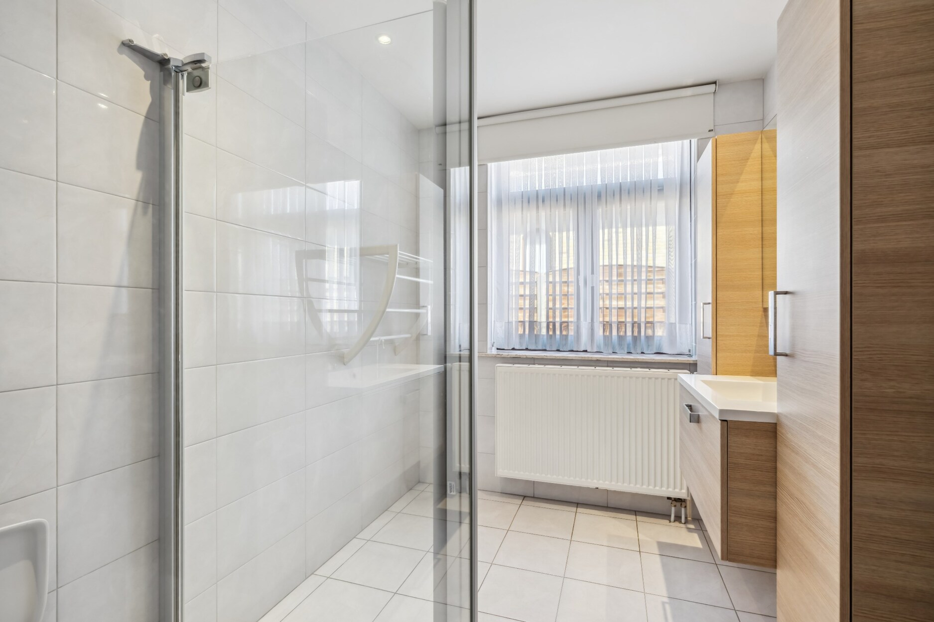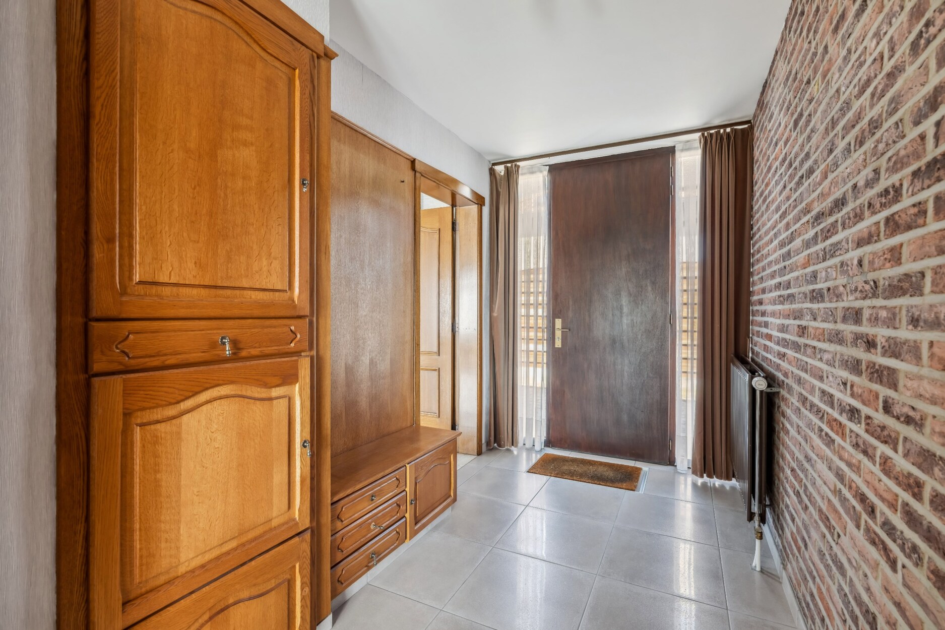 De voortuin is mooi aangelegd en er is voldoende plaats voor de wagens voorzien.