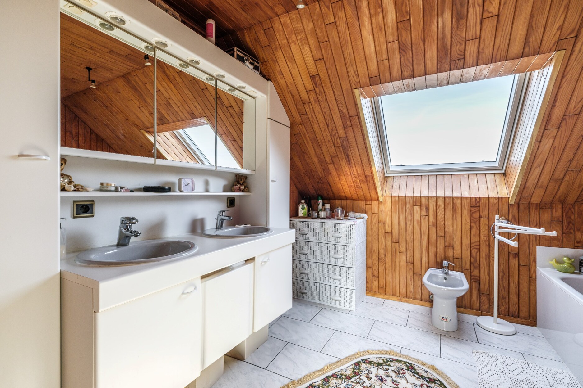Op de begane grond vindt u een inkomhal, wc, woonkamer, keuken, berging, dubbele garage, terras en tuin. De eerste verdieping omvat drie slaapkamers, nachthal en een badkamer.