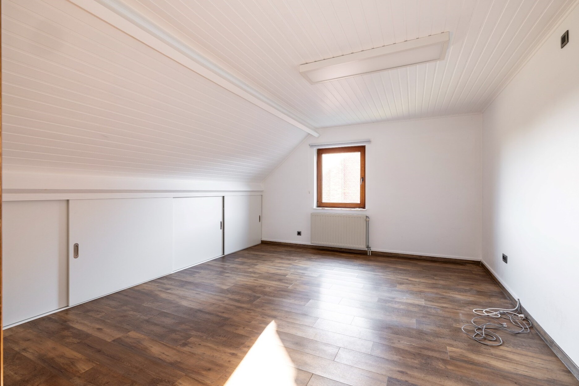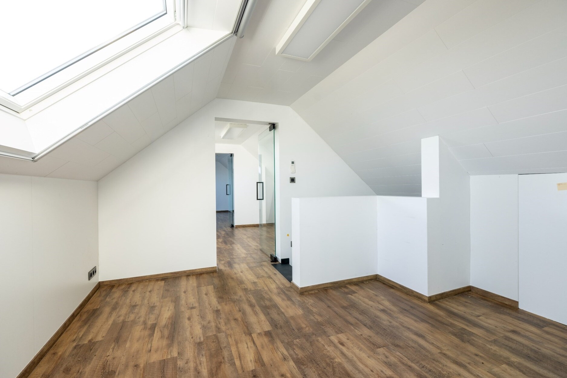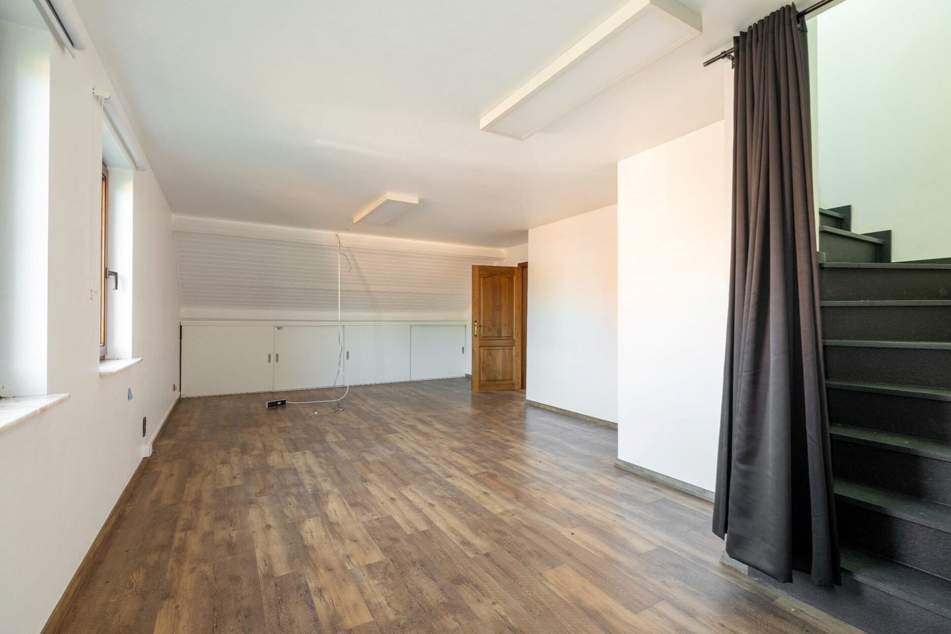 Boven de garage ligt een ruime zolder die u volledig naar eigen behoefte kan inrichten: extra opslag, archiefruimte of atelier. Op de eerste en tweede verdieping bevinden zich meerdere ruime kamers, waarvan één met eigen kitchenette – ideaal als studio, rustruimte of bijkomende werkplek.