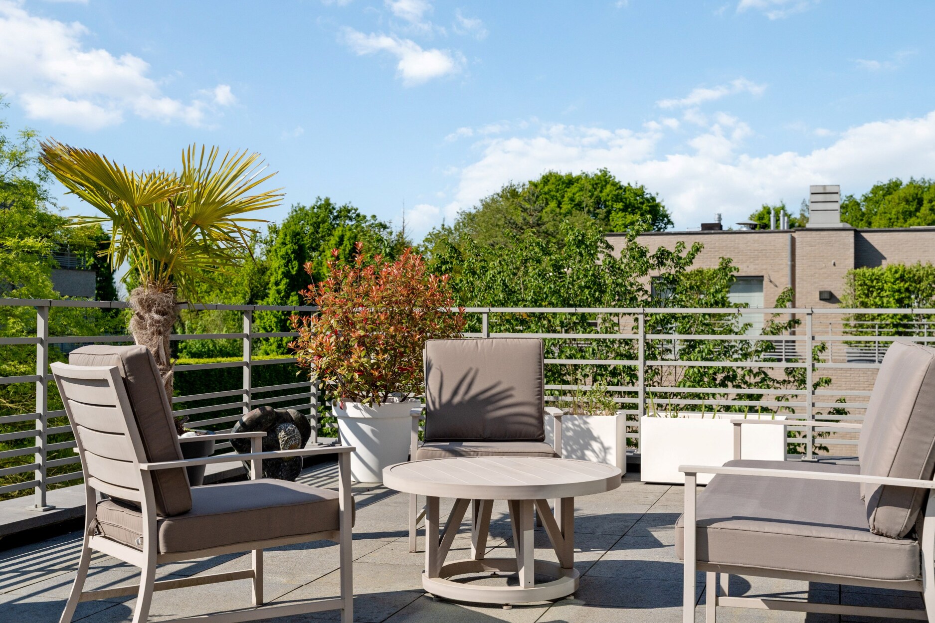 Het opmerkelijke buitenterras dat het hele appartement omringt, vormt het hoogtepunt van dit penthouse. Ideaal om op elk moment van de zon en het buitenleven te genieten en te ontspannen.