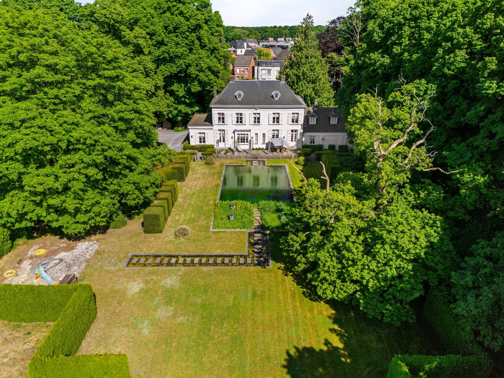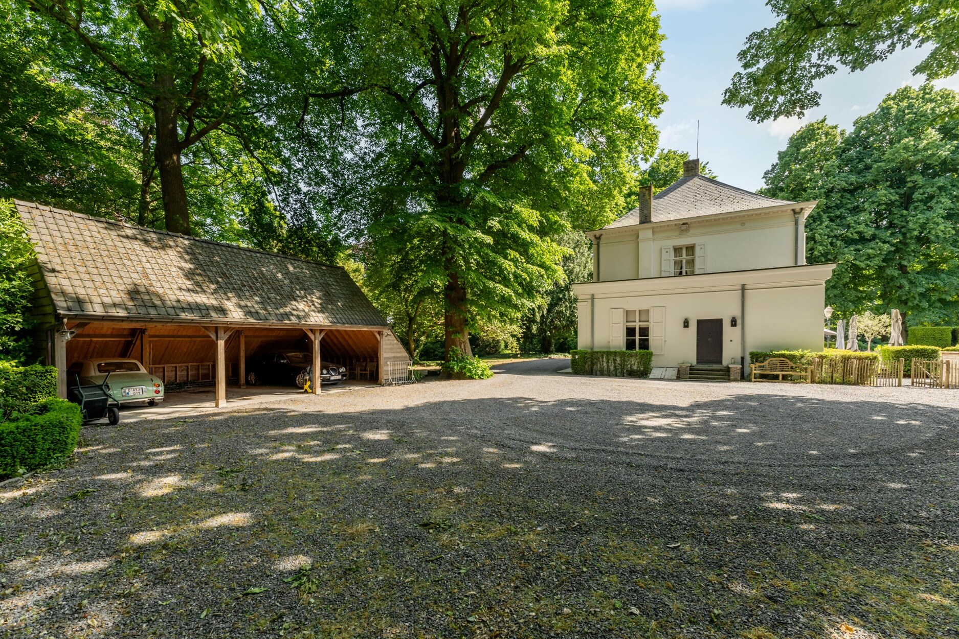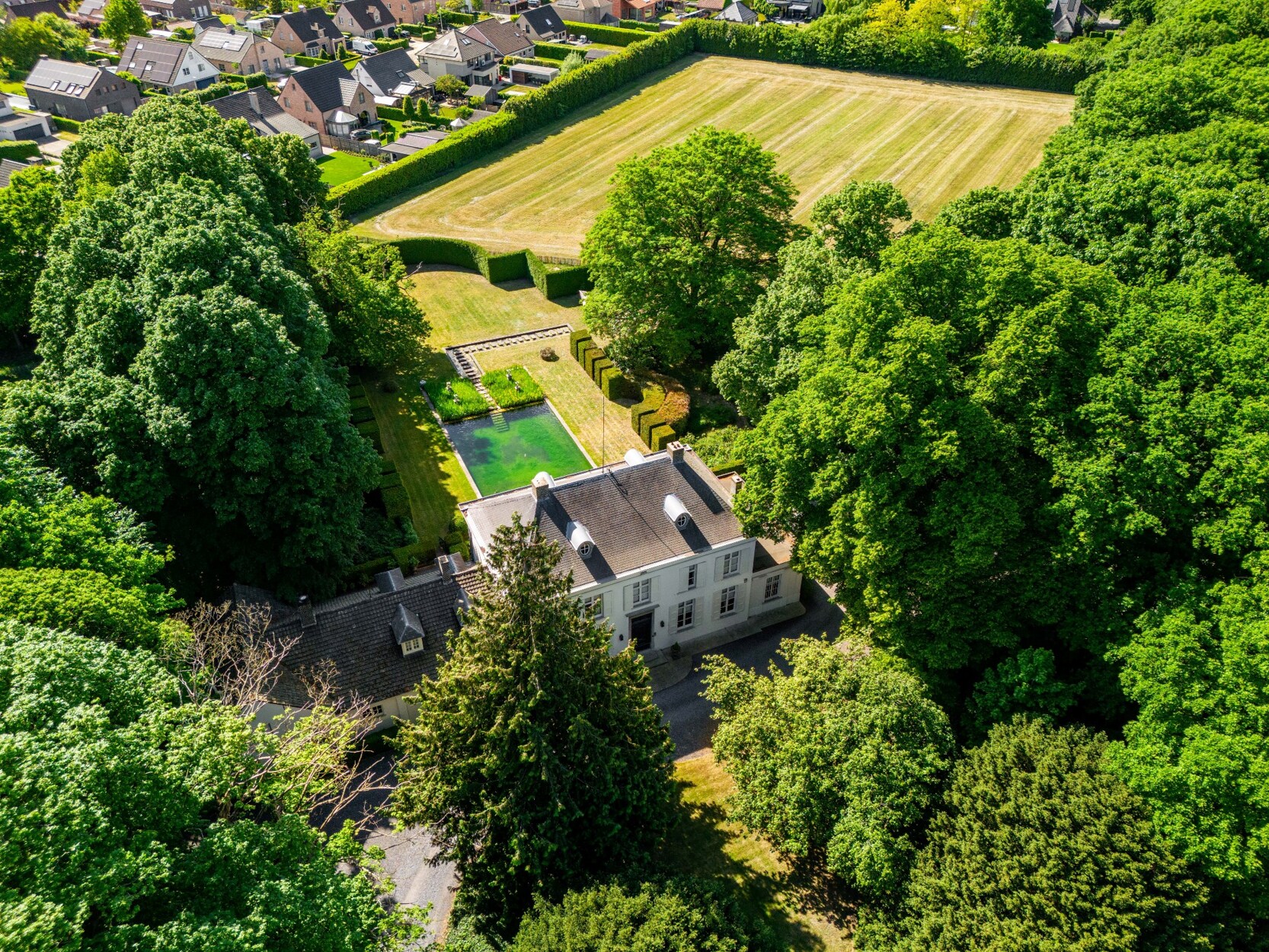 Deze 19de eeuwse herenwoning is bereikbaar via een brede oprijlaan. De voortuin bestaat uit een natuurlijk bos waardoor de woning afgesloten ligt van de straatkant. Links en rechts van het pand zijn 2 carports voorzien waar ruim plaats is voor 6 wagens. De achterliggende tuin met prachtige zwemvijver is Frans geïnspireerd en bestaat uit grote grasvelden, strakke hagen en rechte paadjes.