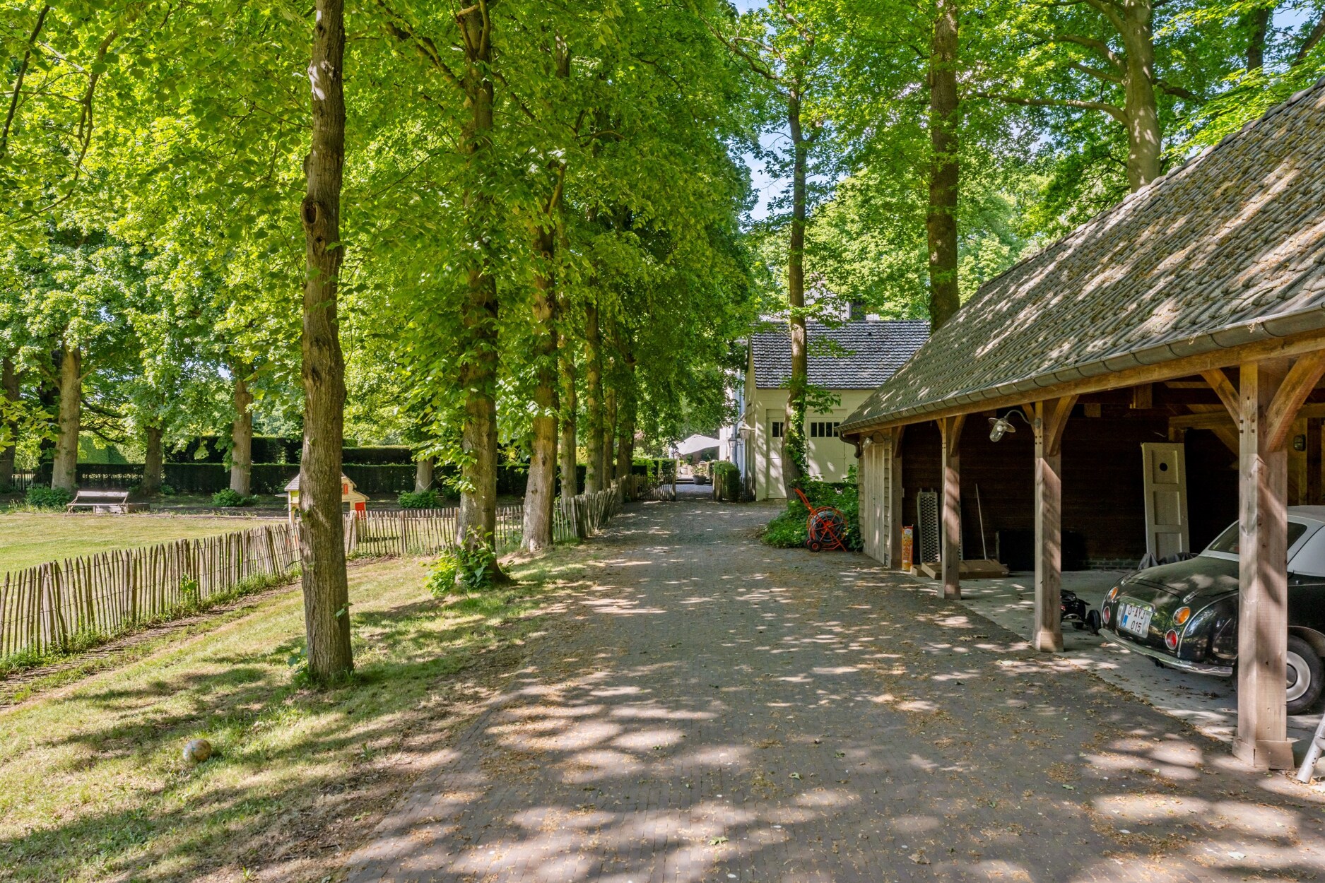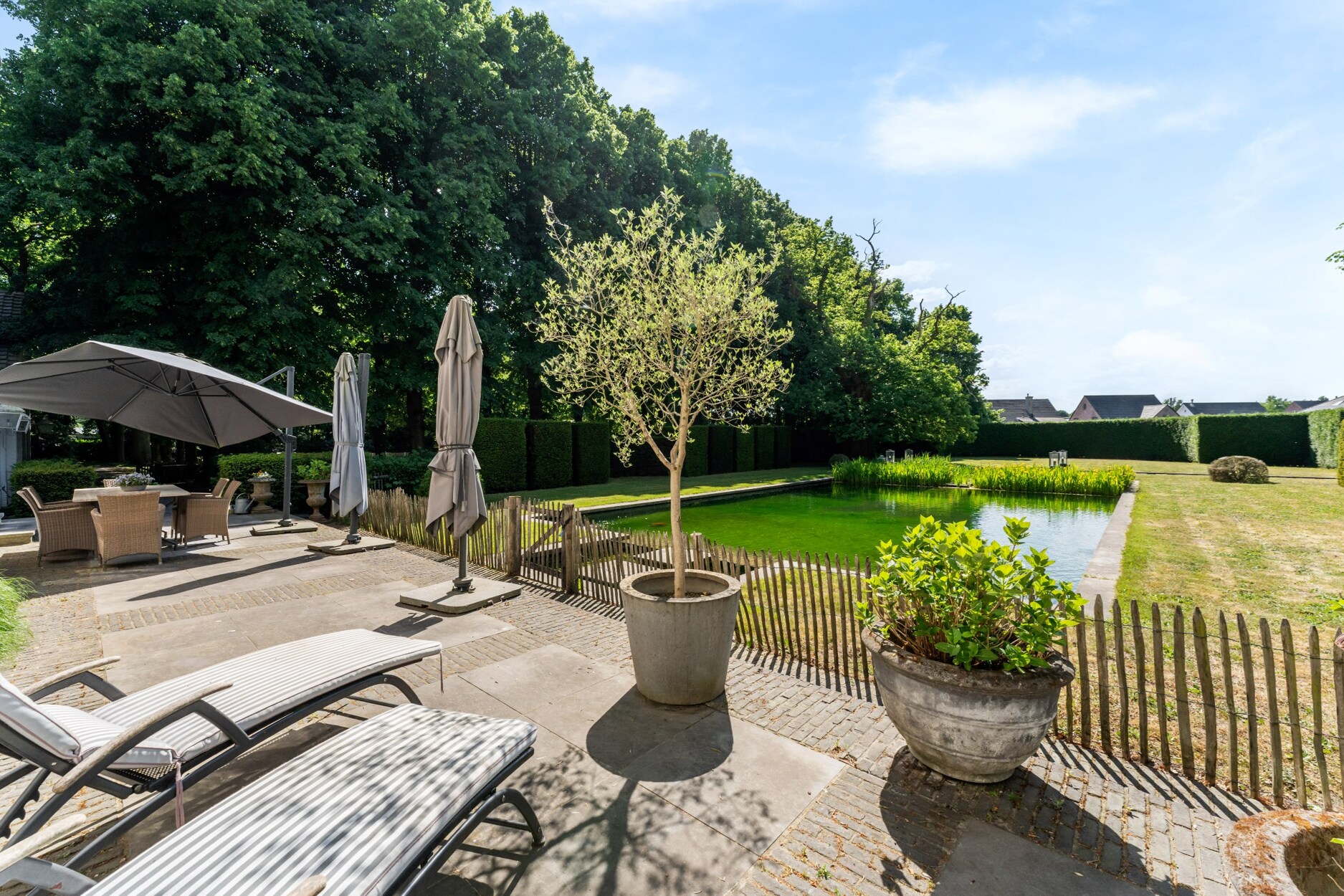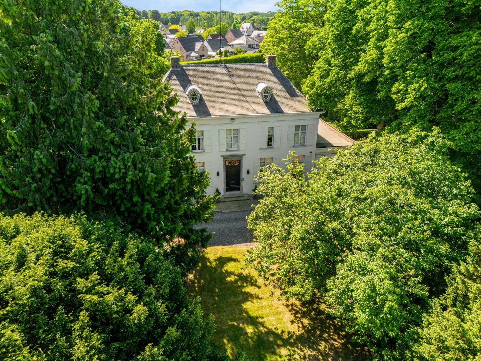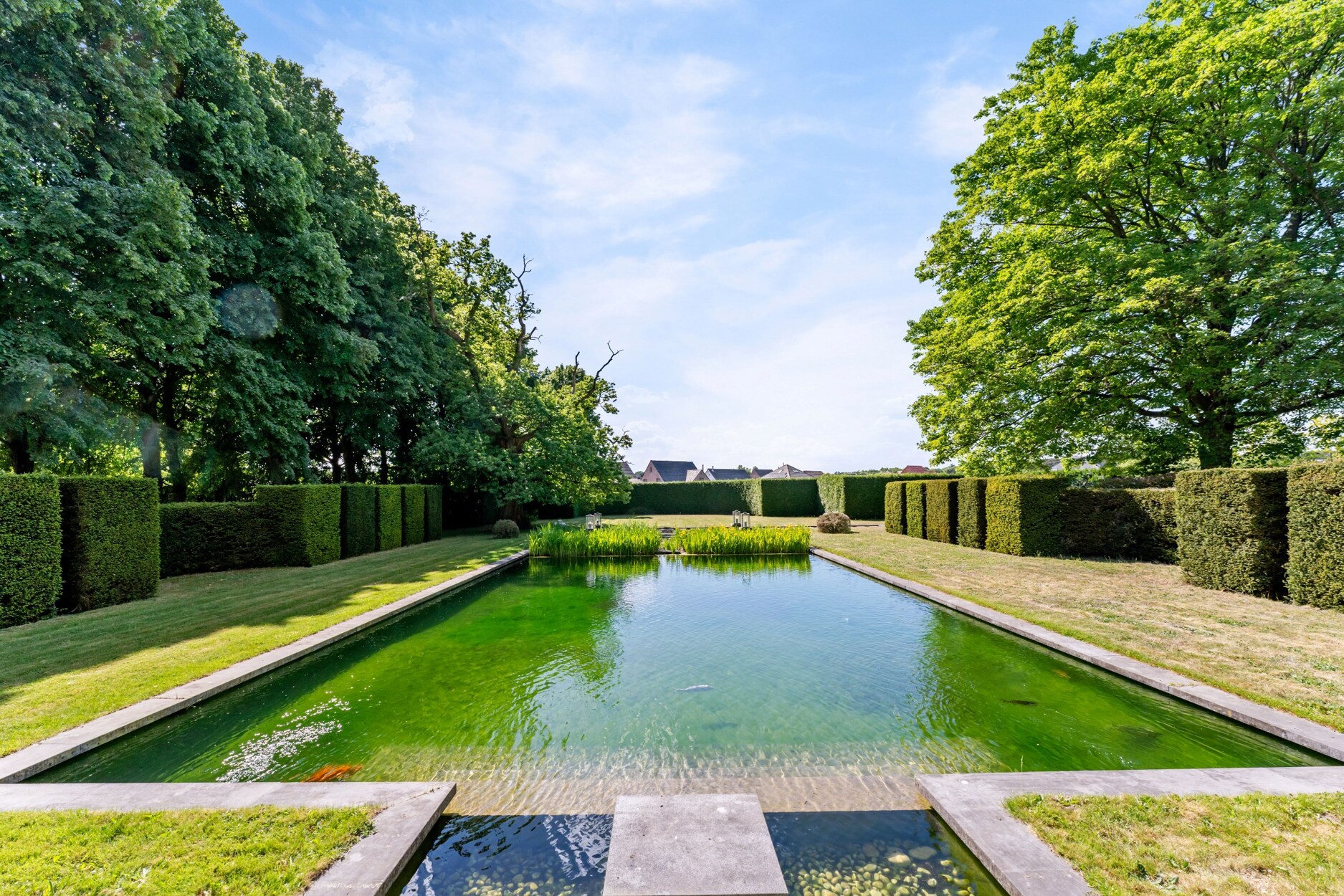 Deze 19de eeuwse herenwoning is bereikbaar via een brede oprijlaan. De voortuin bestaat uit een natuurlijk bos waardoor de woning afgesloten ligt van de straatkant. Links en rechts van het pand zijn 2 carports voorzien waar ruim plaats is voor 6 wagens. De achterliggende tuin met prachtige zwemvijver is Frans geïnspireerd en bestaat uit grote grasvelden, strakke hagen en rechte paadjes.