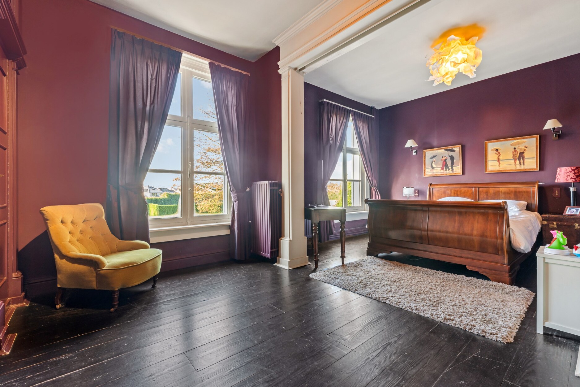 Via de ruime overloop krijgen we toegang tot de 5 ruime slaapkamers. De master suite bestaat uit een ruime slaapkamer met aansluitend de badkamer. Deze werd voorzien van een ligbad en dubbele lavabo met een uniek uitzicht op de tuin. Verder treffen we hier nog een mooie dressing, een 2e badkamer en een apart toilet.
