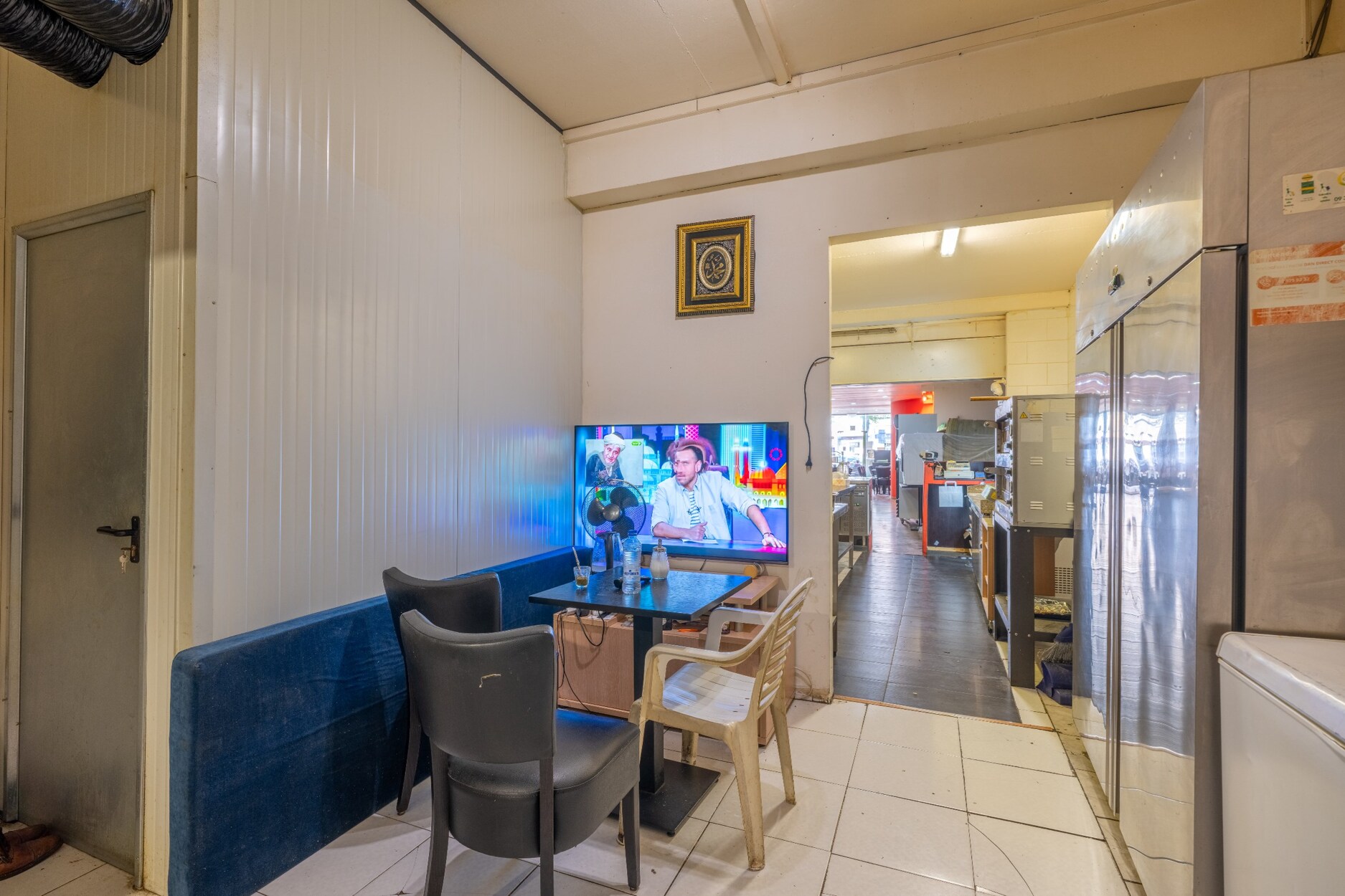 Verder is er een afzonderlijke privatieve ruimte voorzien van aparte bureau, privé keuken, voorraadberging en een aparte ruimte voor toestellen zoals extra koelkast, diepvries.