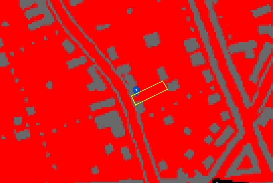 Deze bouwgrond is geschikt voor een bebouwde oppervlakte van ca 5,93m x ca 15,00m met een maximum kroonlijsthoogte van 6,5m en een hellend dak.